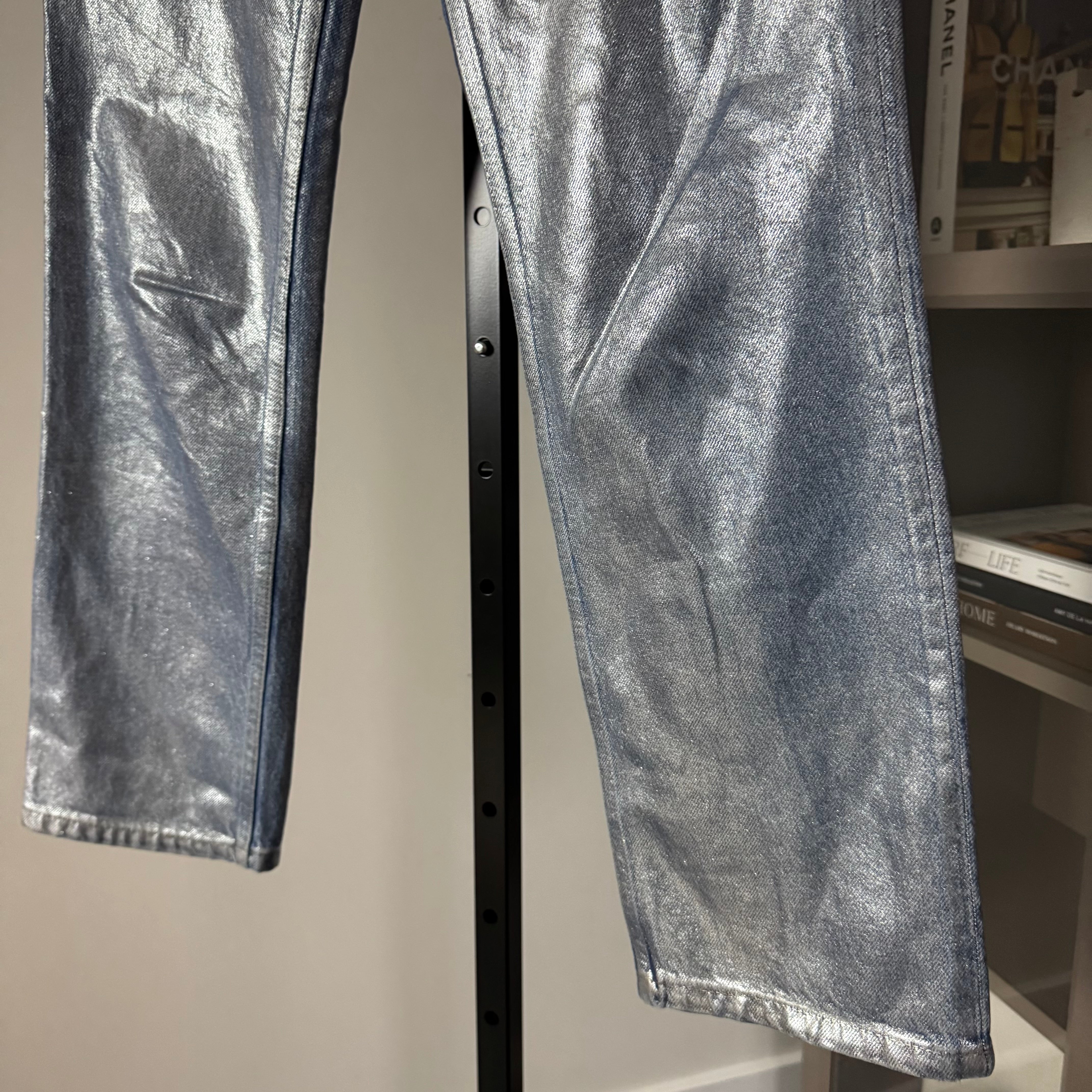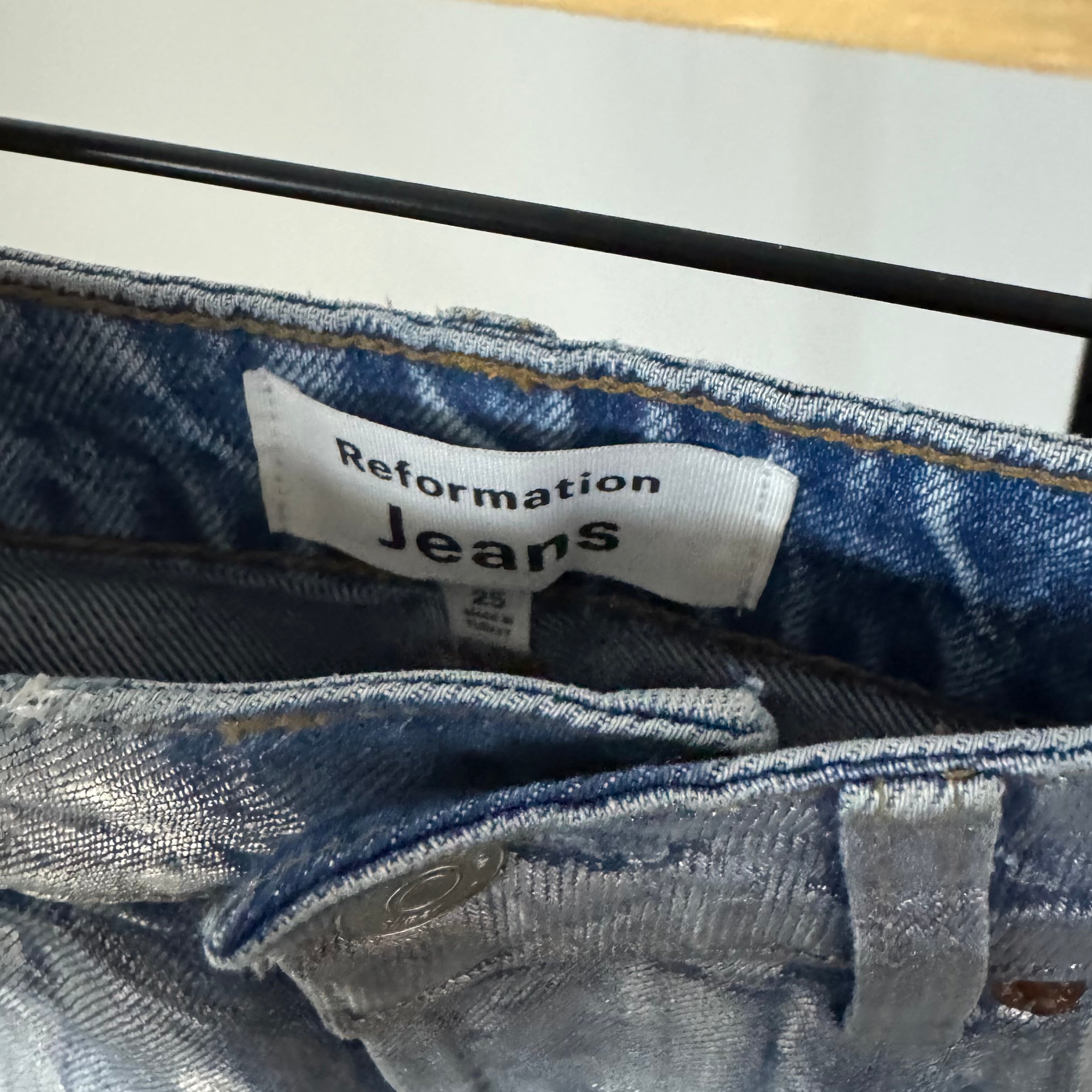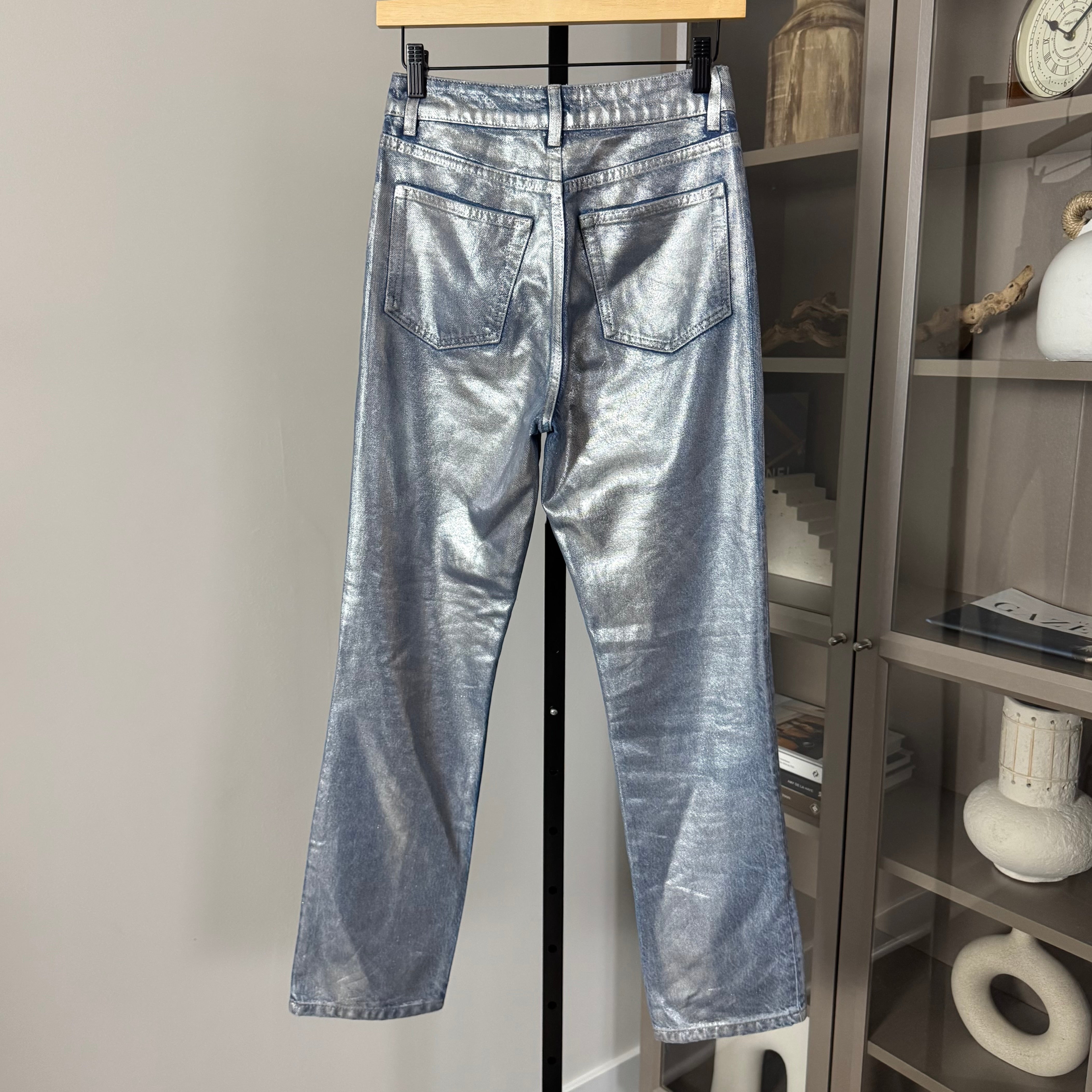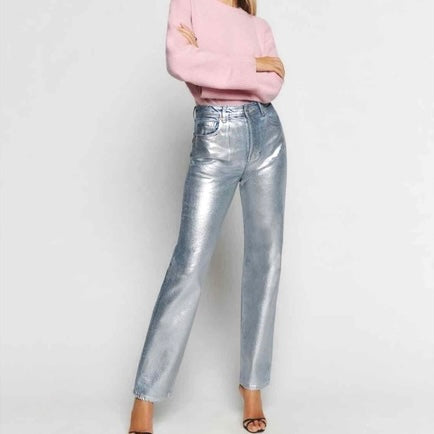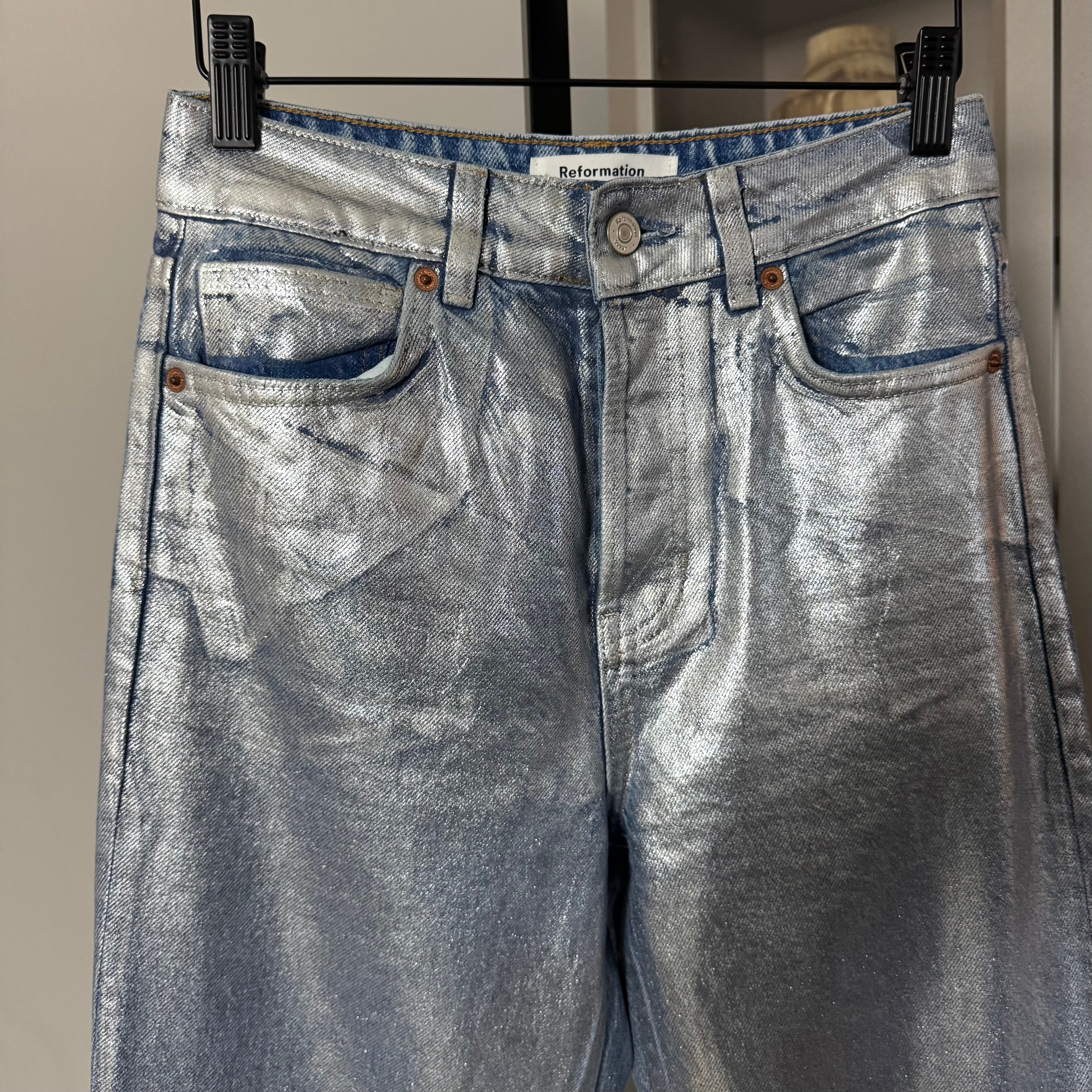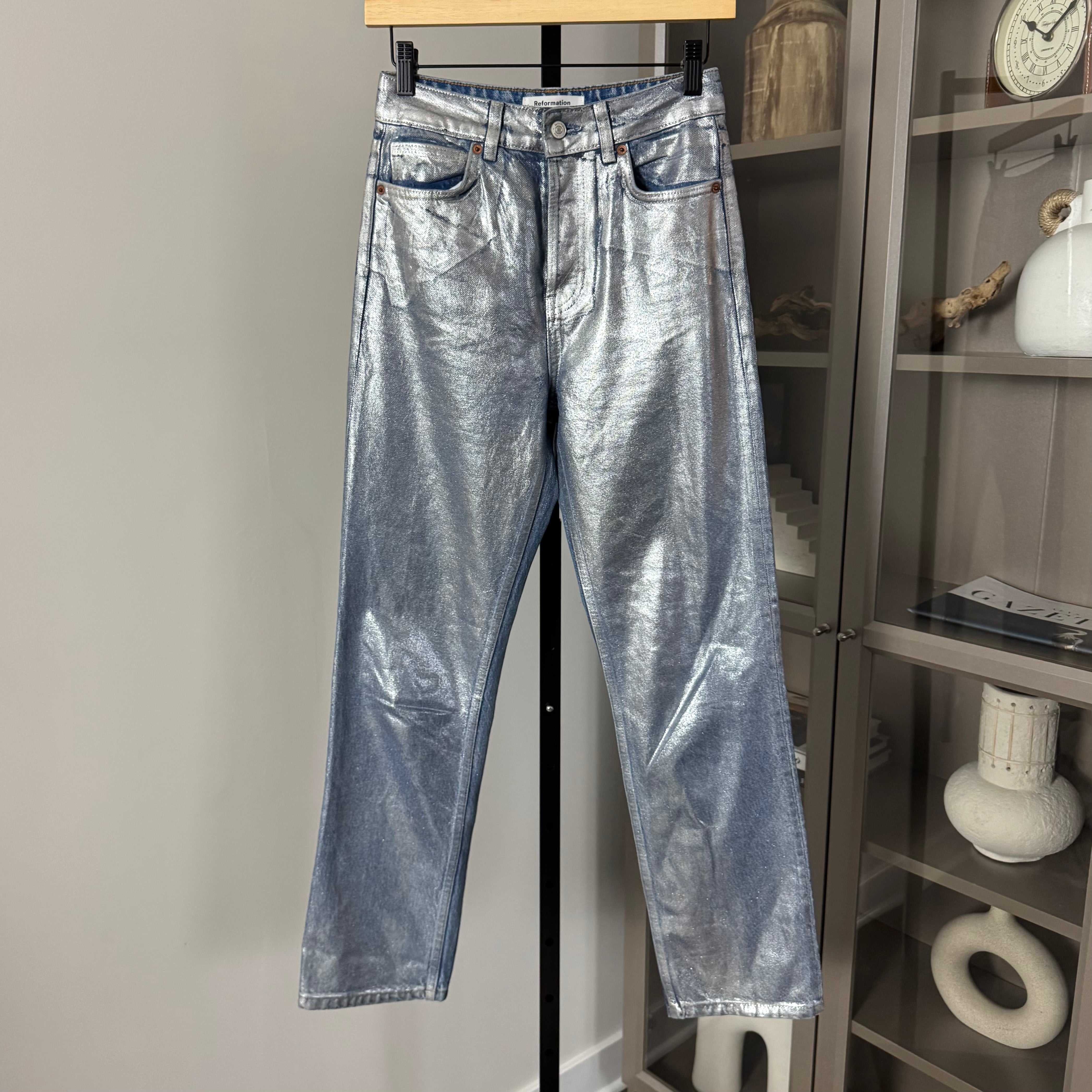 Reformation Cynthia Silver Metallic Wash Straight Leg Jeans