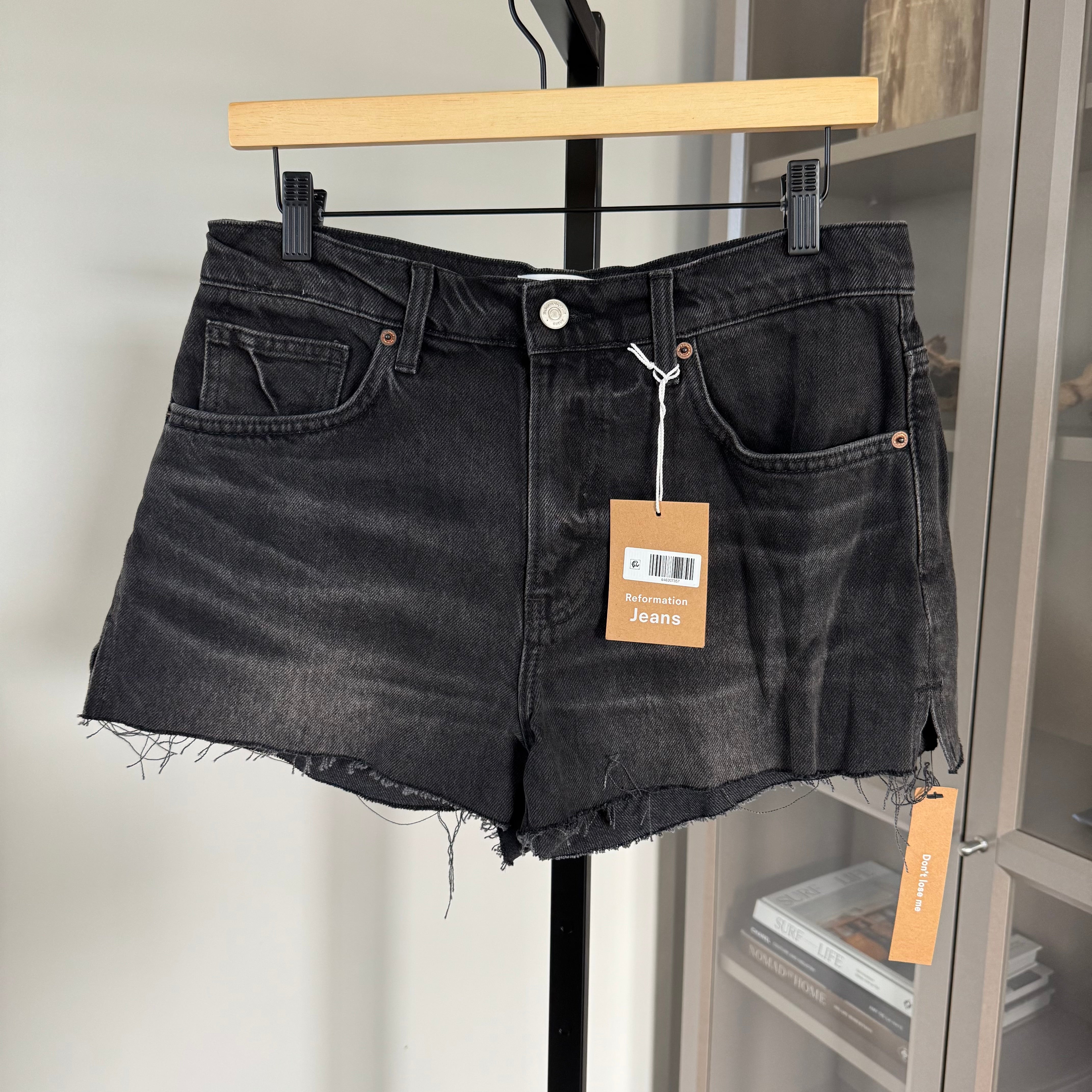 Reformation Dakota Mid-Rise Relaxed Cut-Off Nome Black Shorts