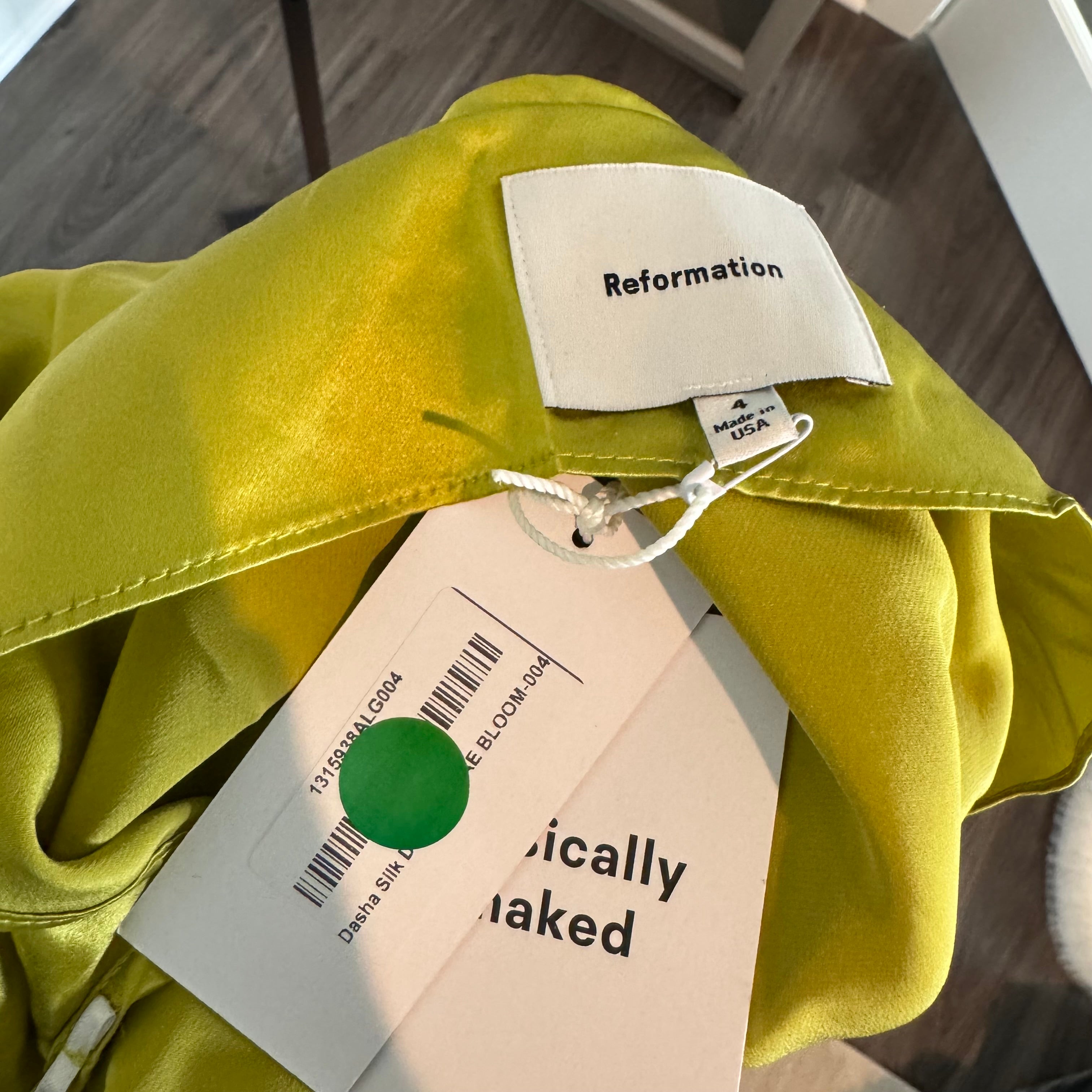 Reformation Dasha Silk Algae Bloom Asymmetrical Neckline Cut Out Midi Dress