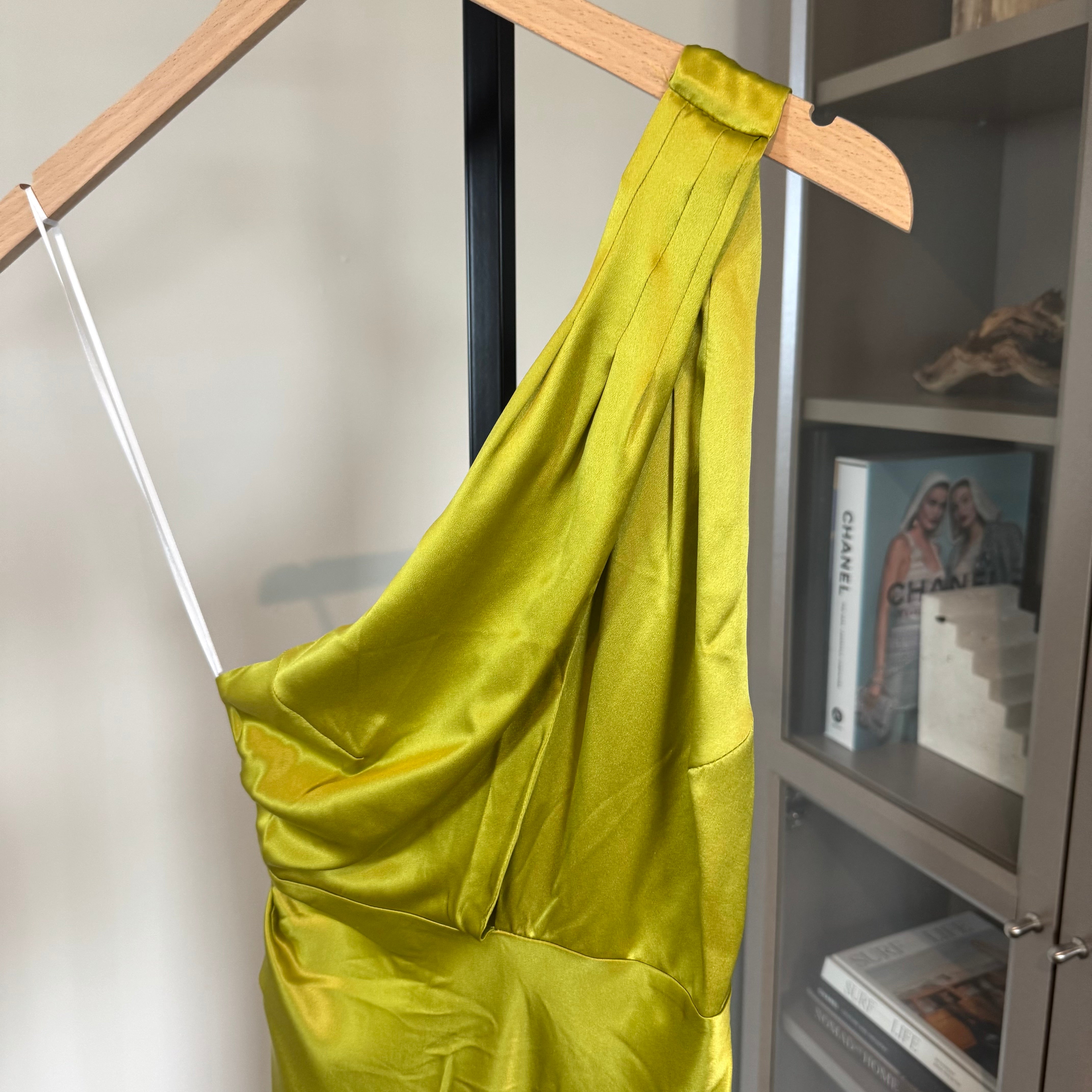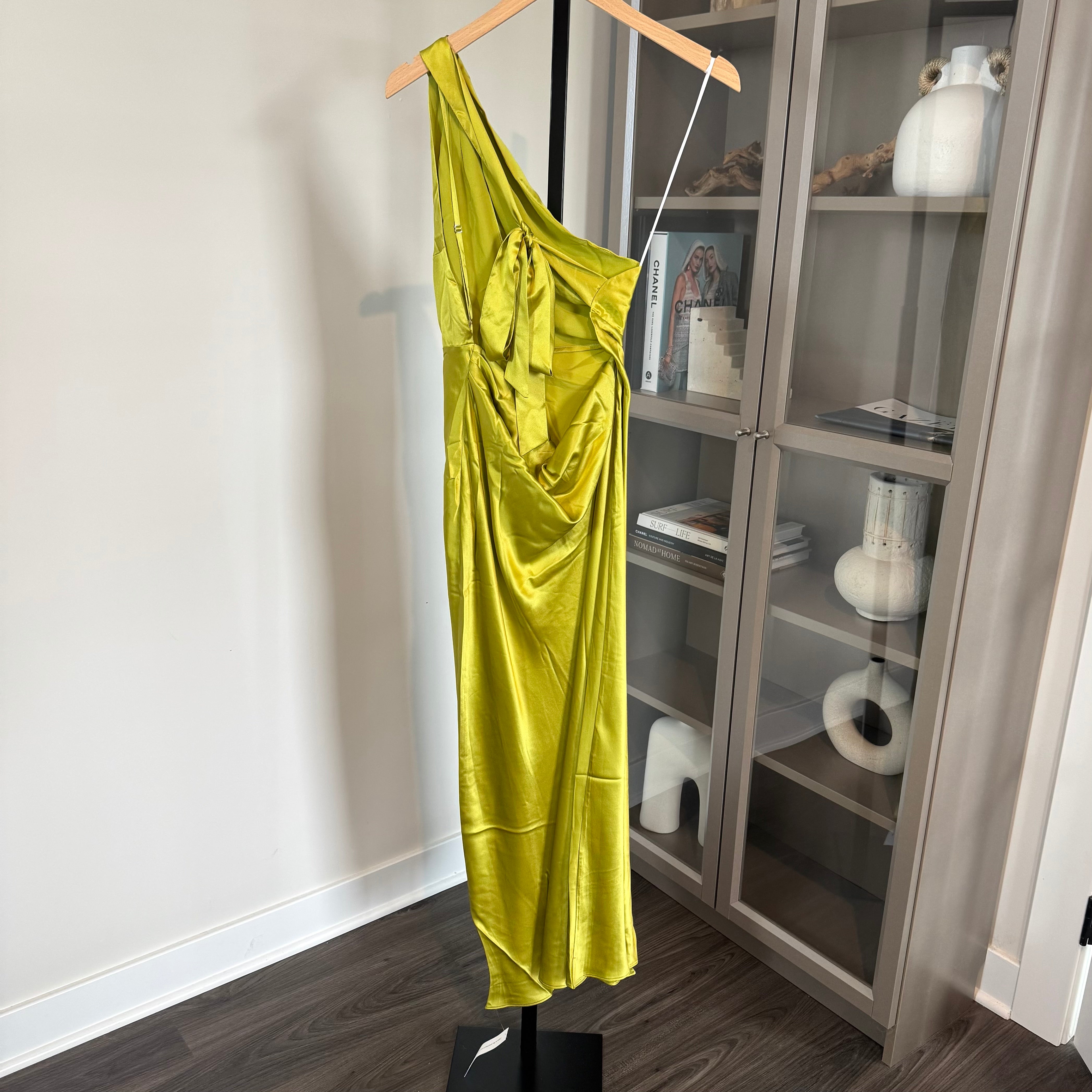 Reformation Dasha Silk Algae Bloom Asymmetrical Cut Out Neckline Midi Dress