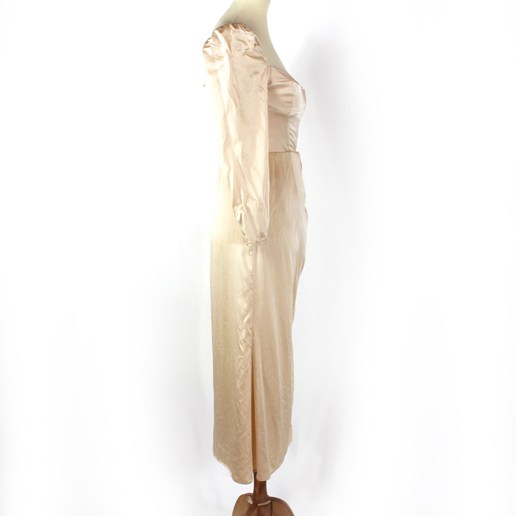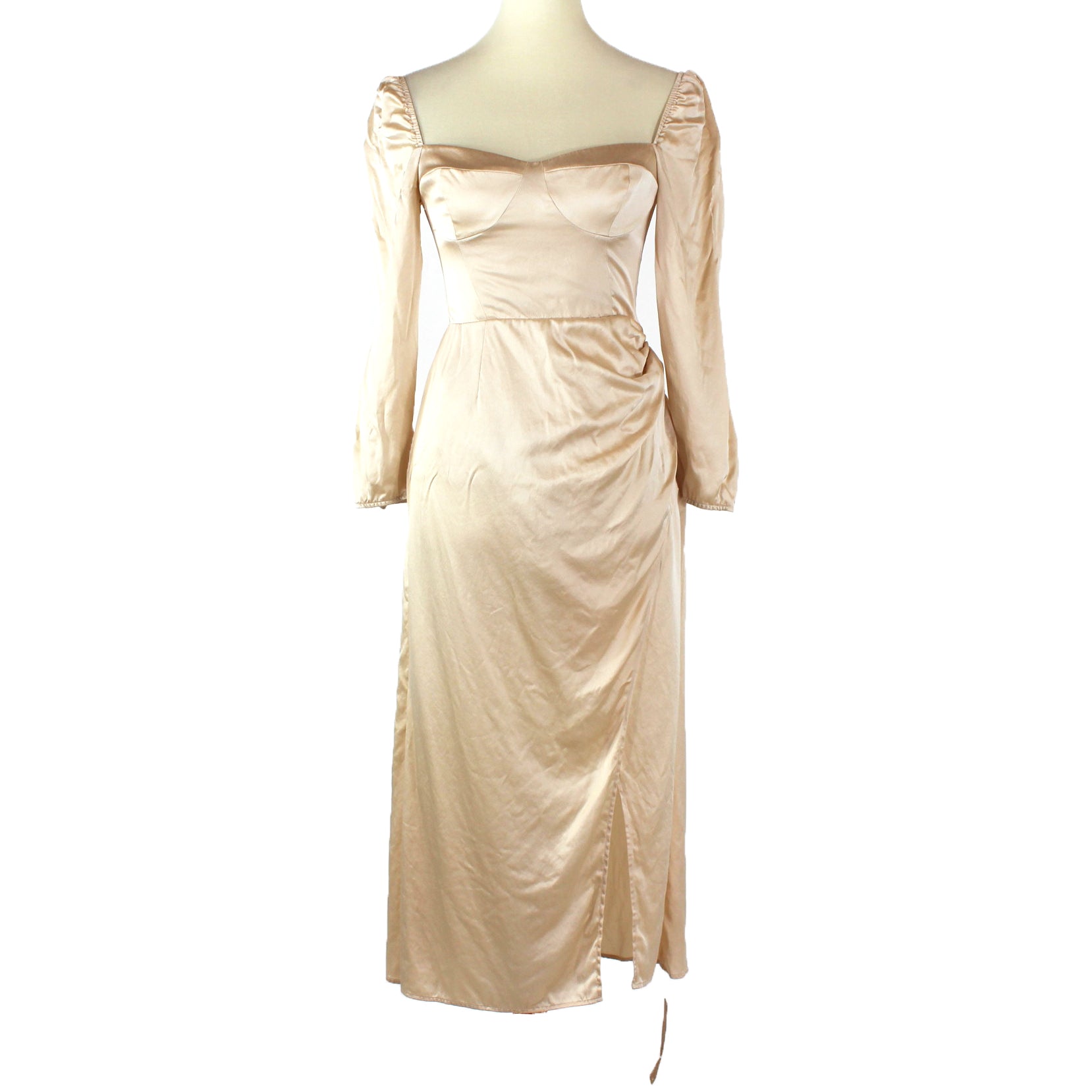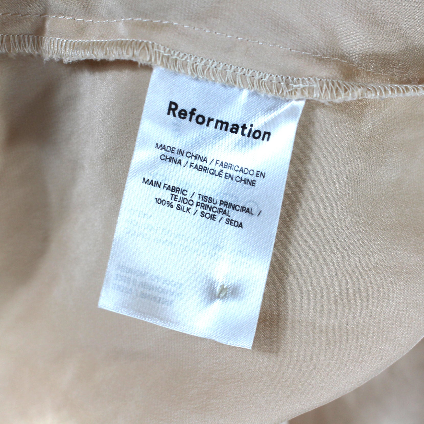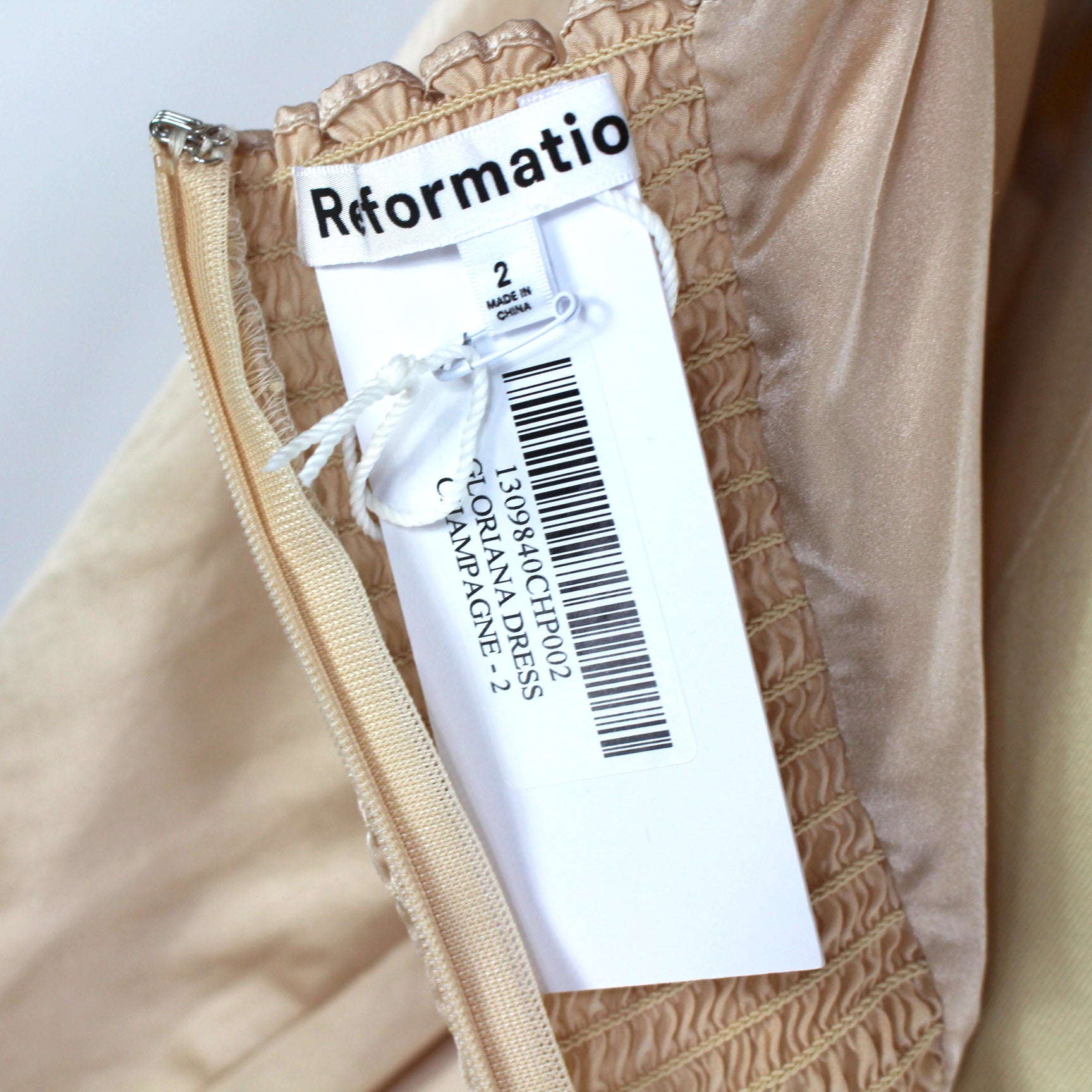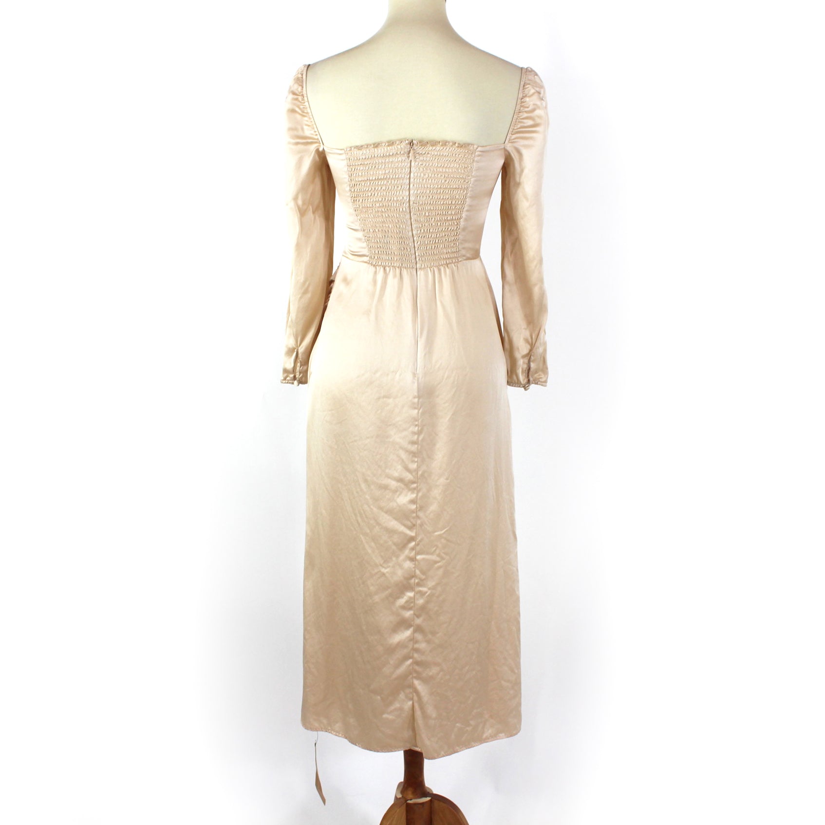 Reformation Gloriana Champagne Silk Smocked Back Midi Dress