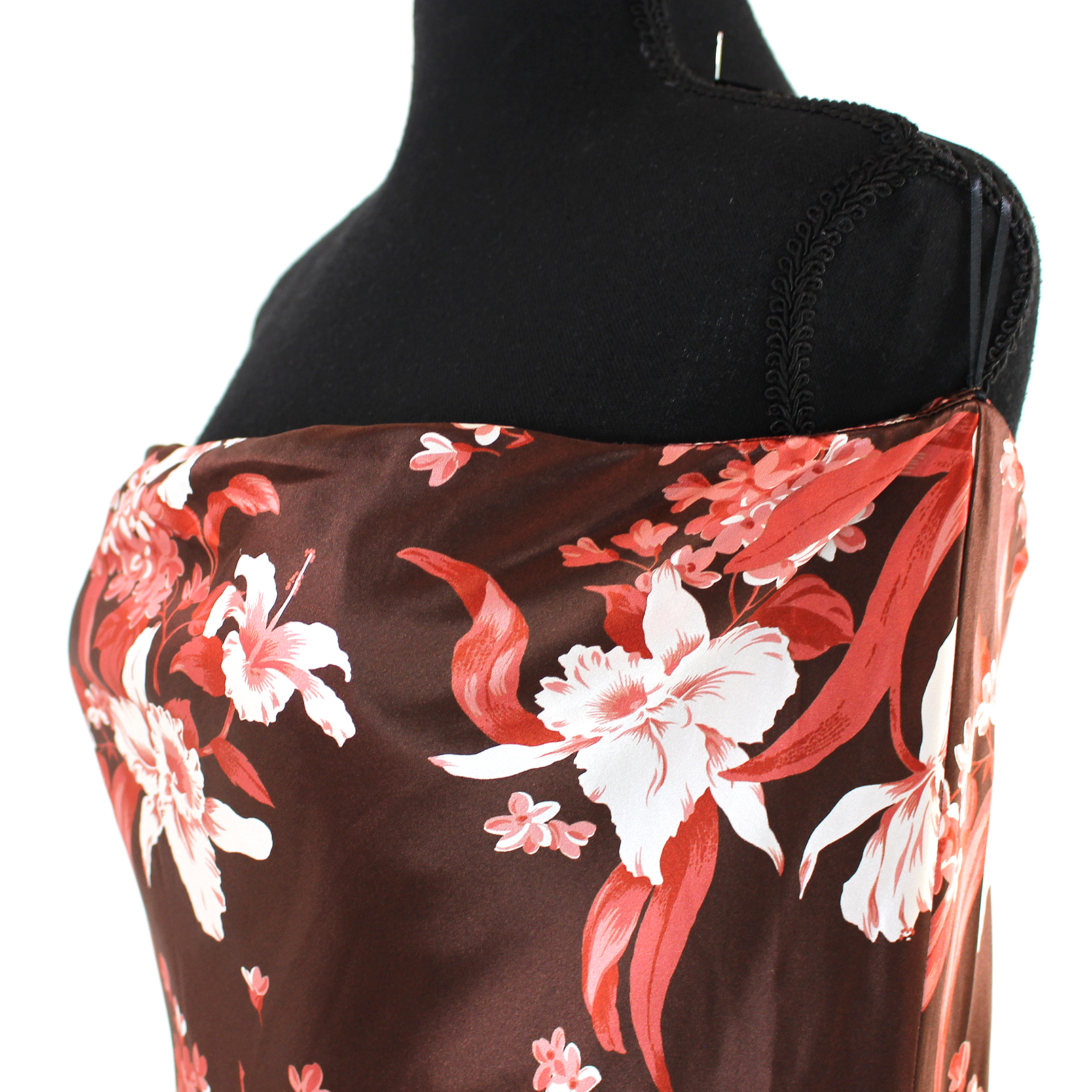 Reformation Joanne Silk Charmeuse Strapless Hilo Brown Floral Maxi Dress