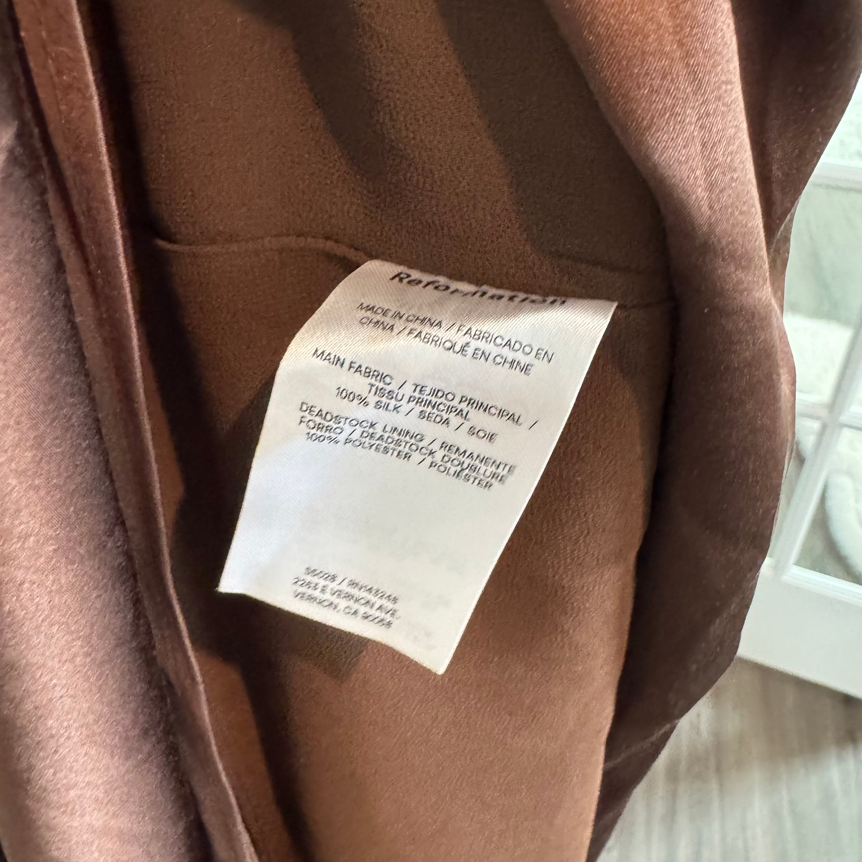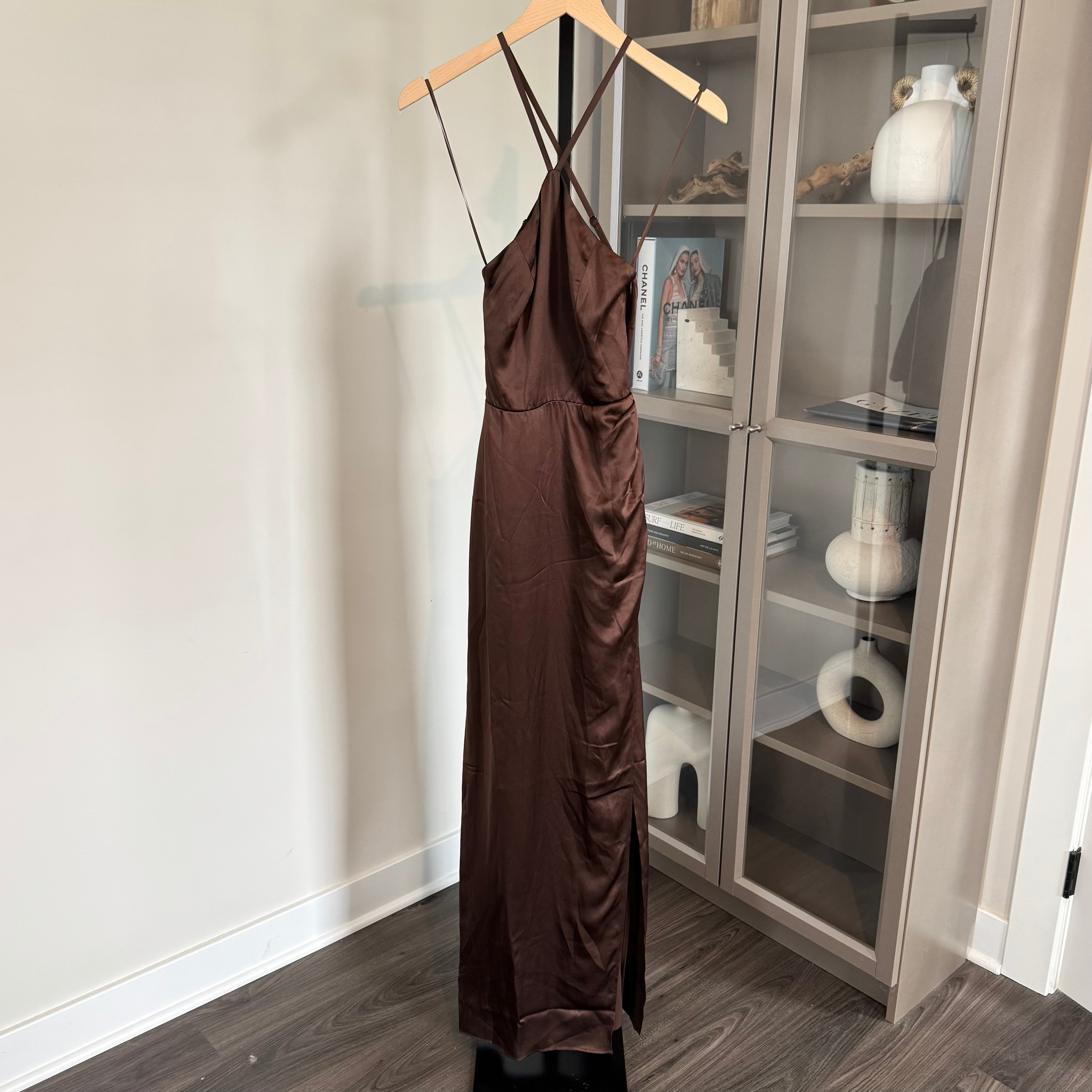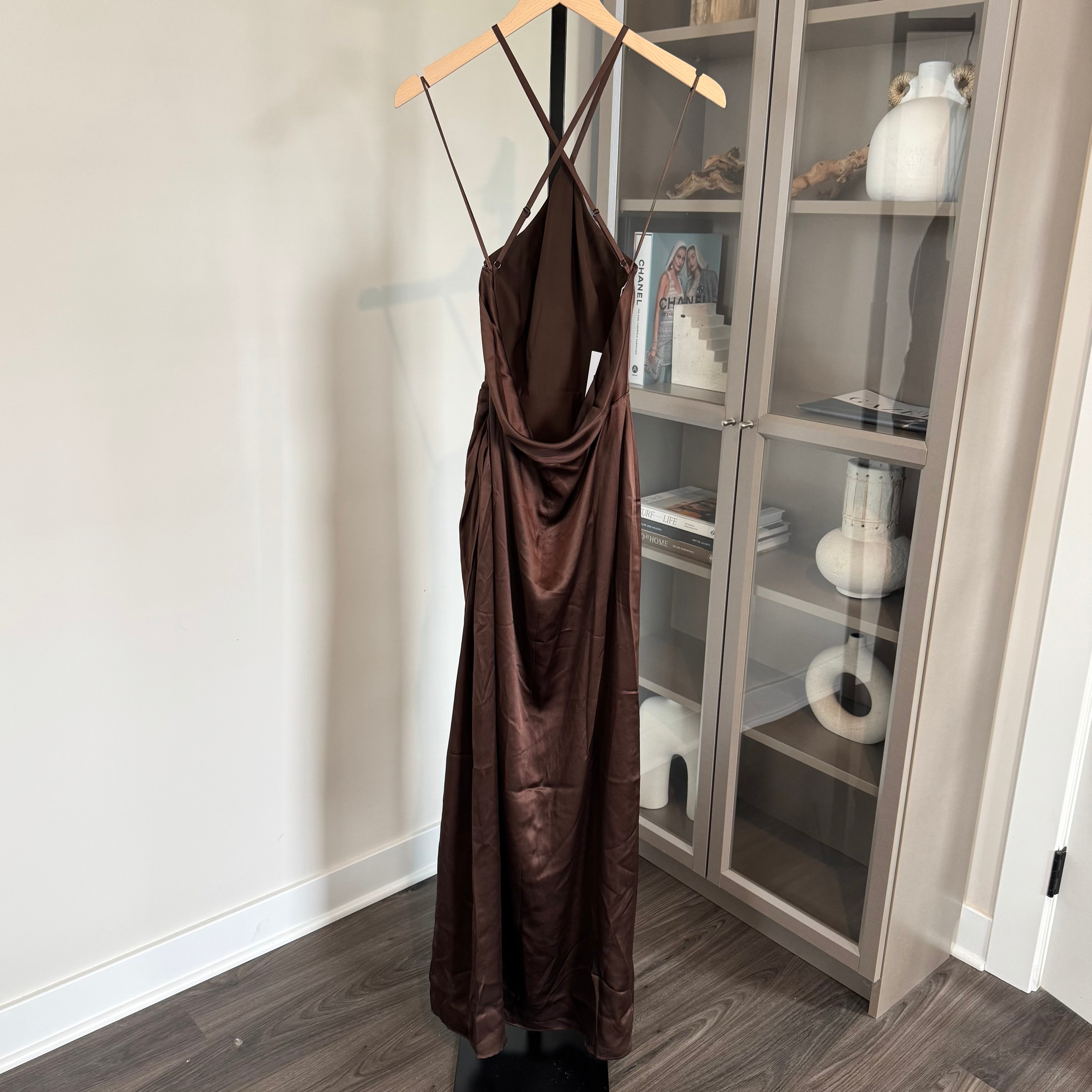Reformation Myla Silk Cafe Brown Halter Neckline Maxi Dress