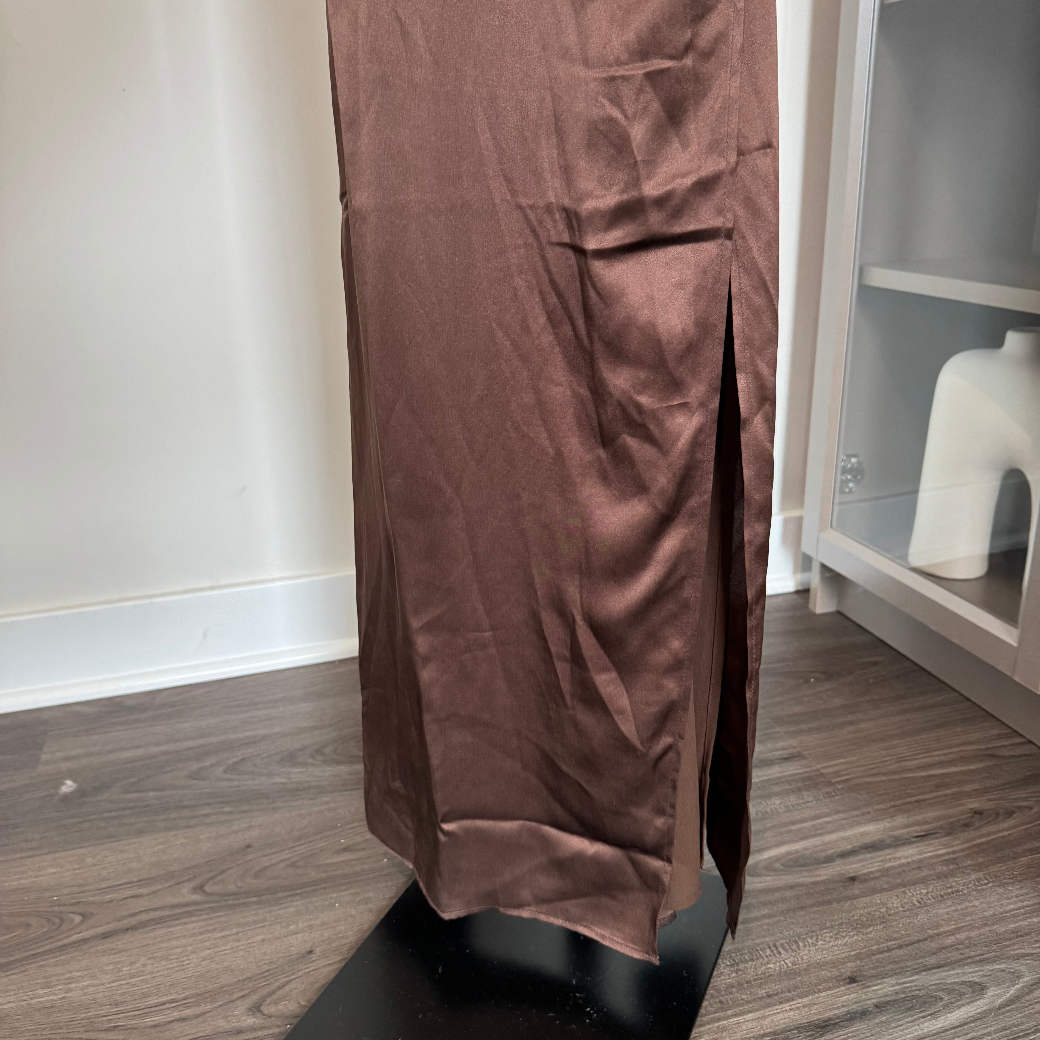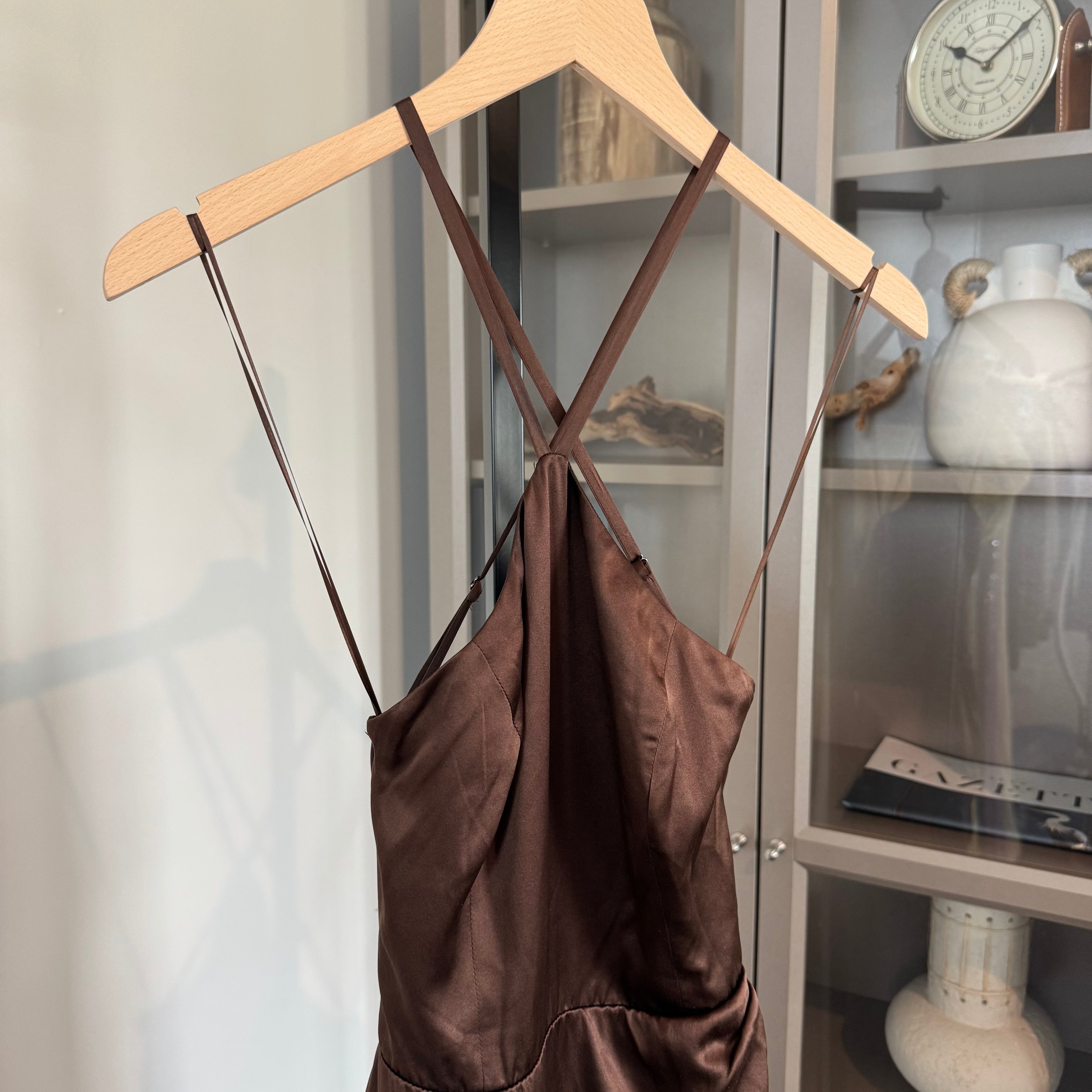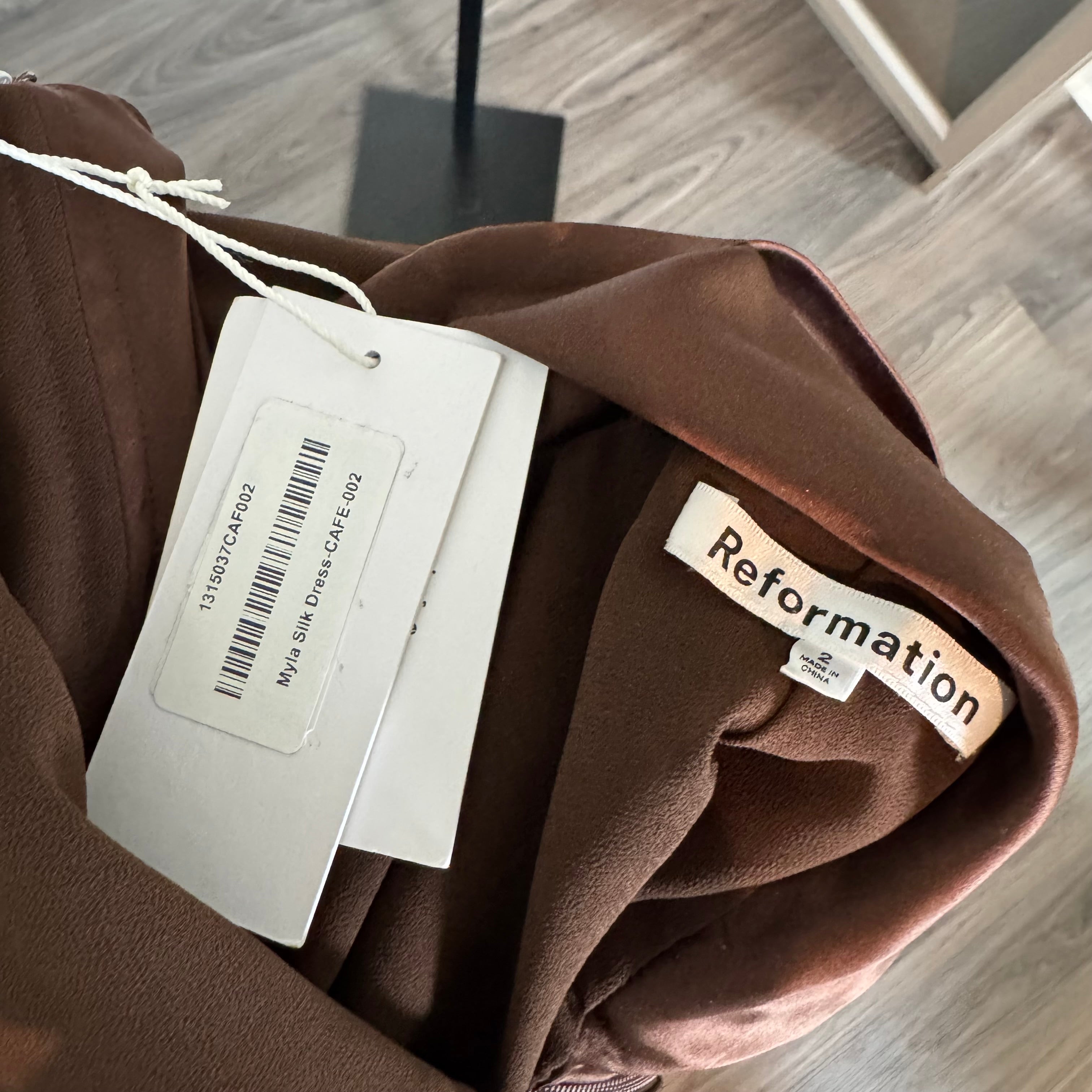 Reformation Myla Silk Cafe Brown Halter Neckline Maxi Dress