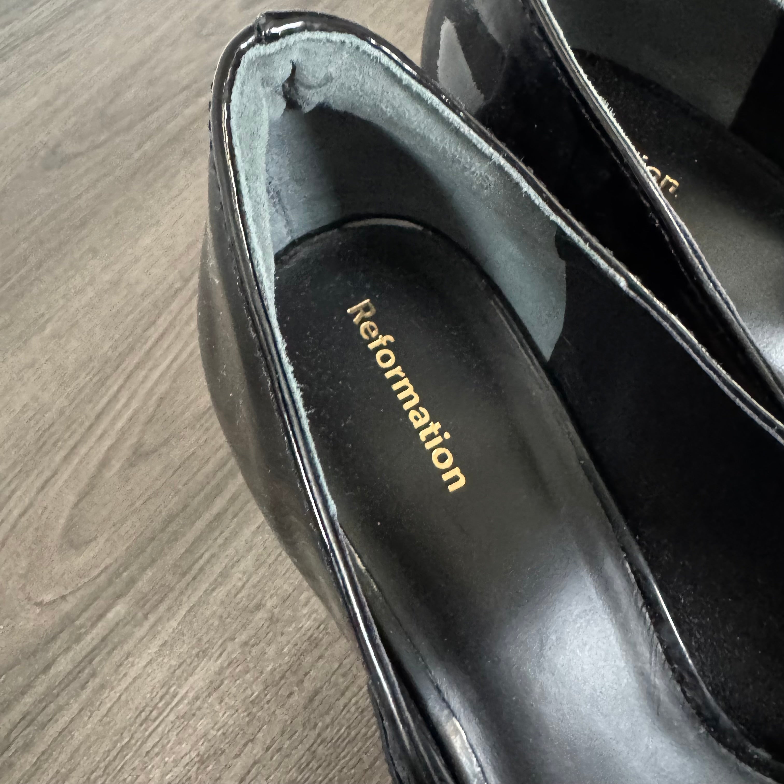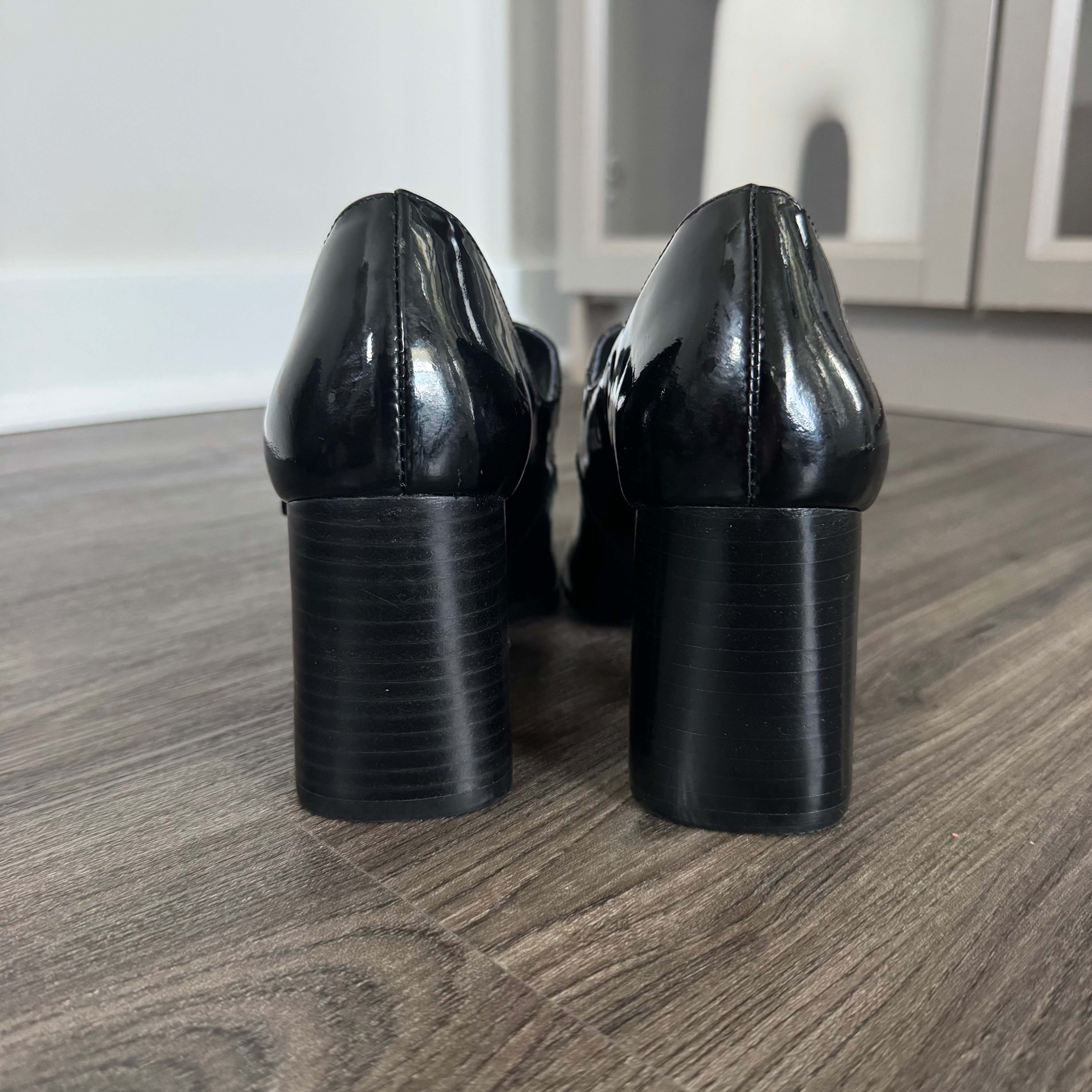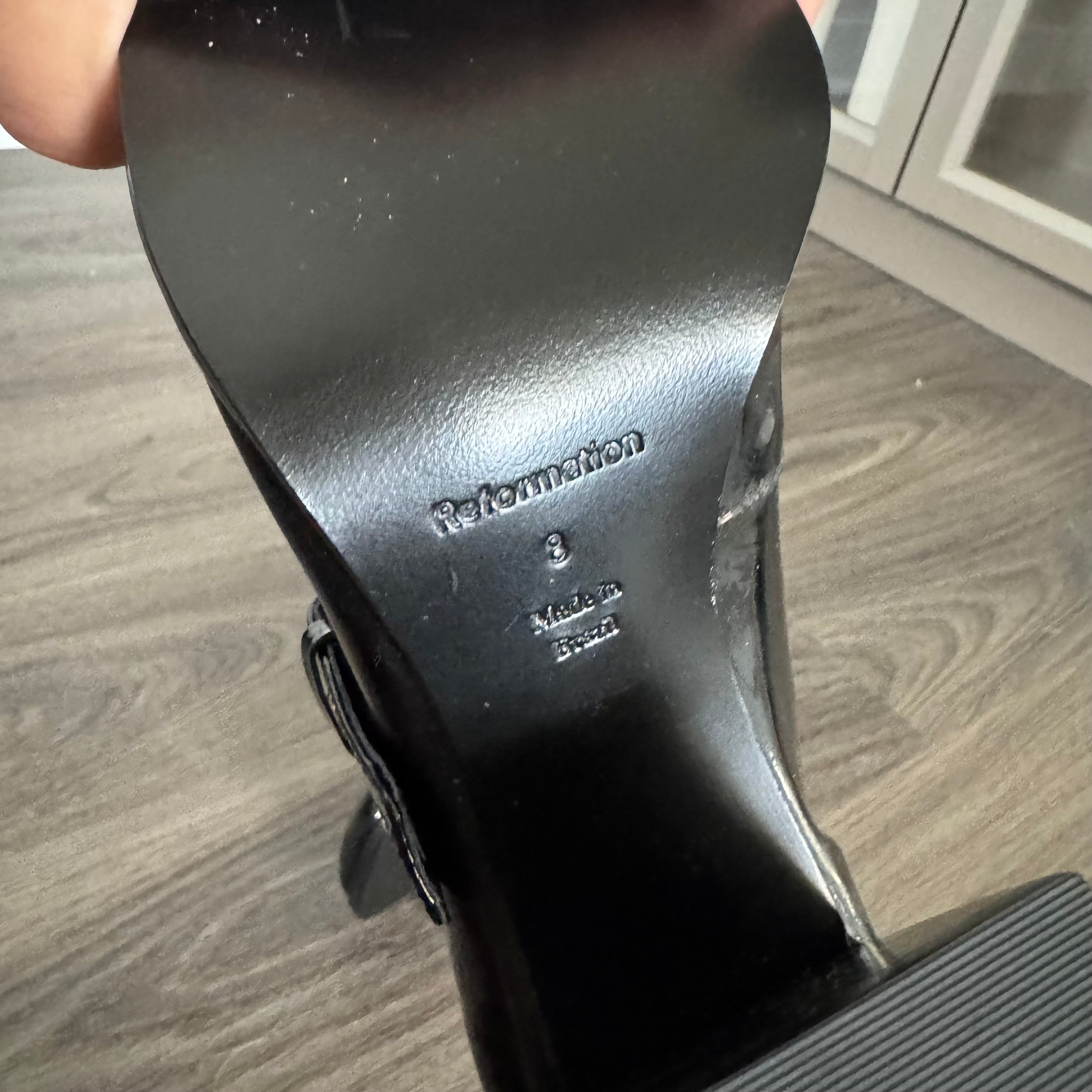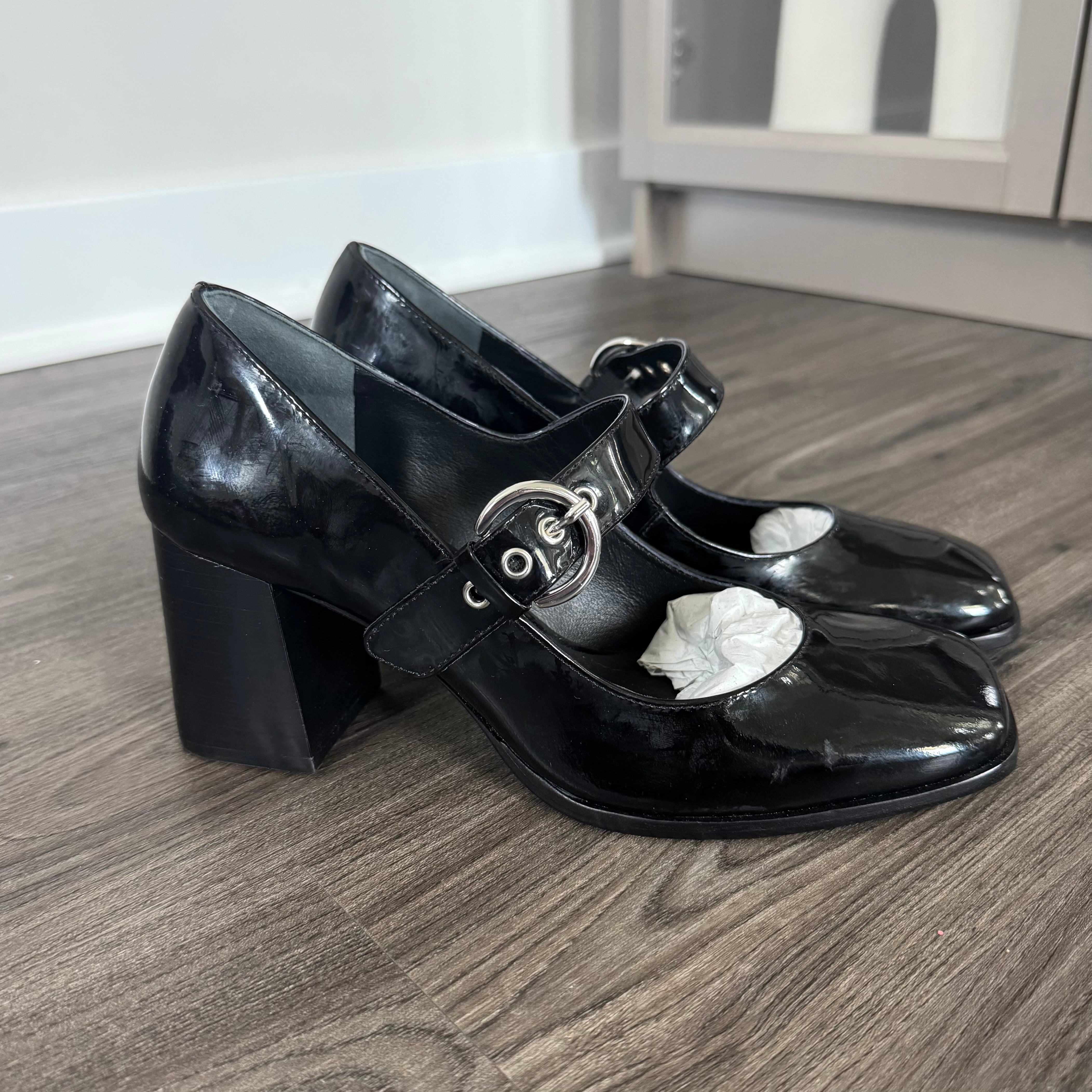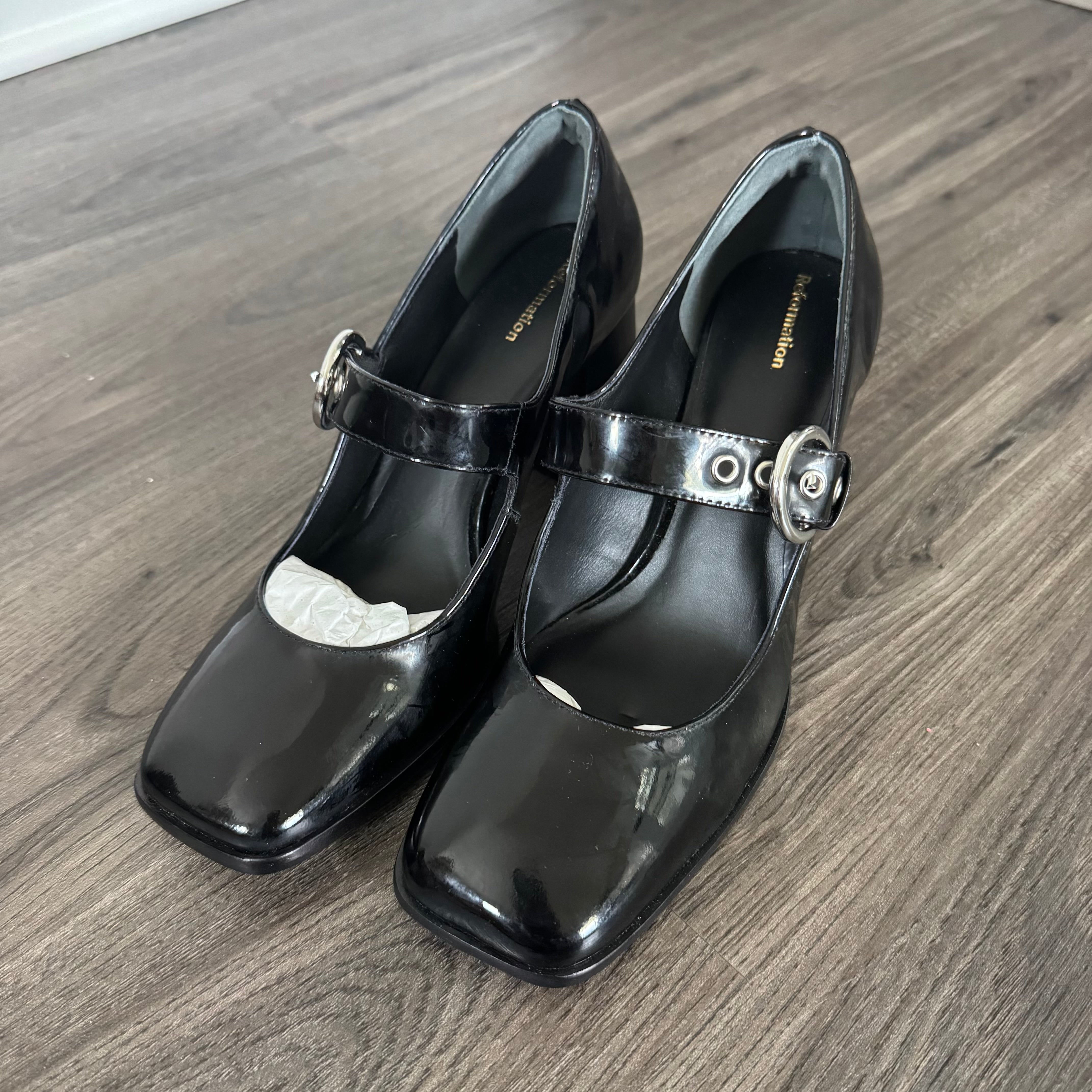 Reformation Naima Mary Jane Black Patent Leather Stacked Heels