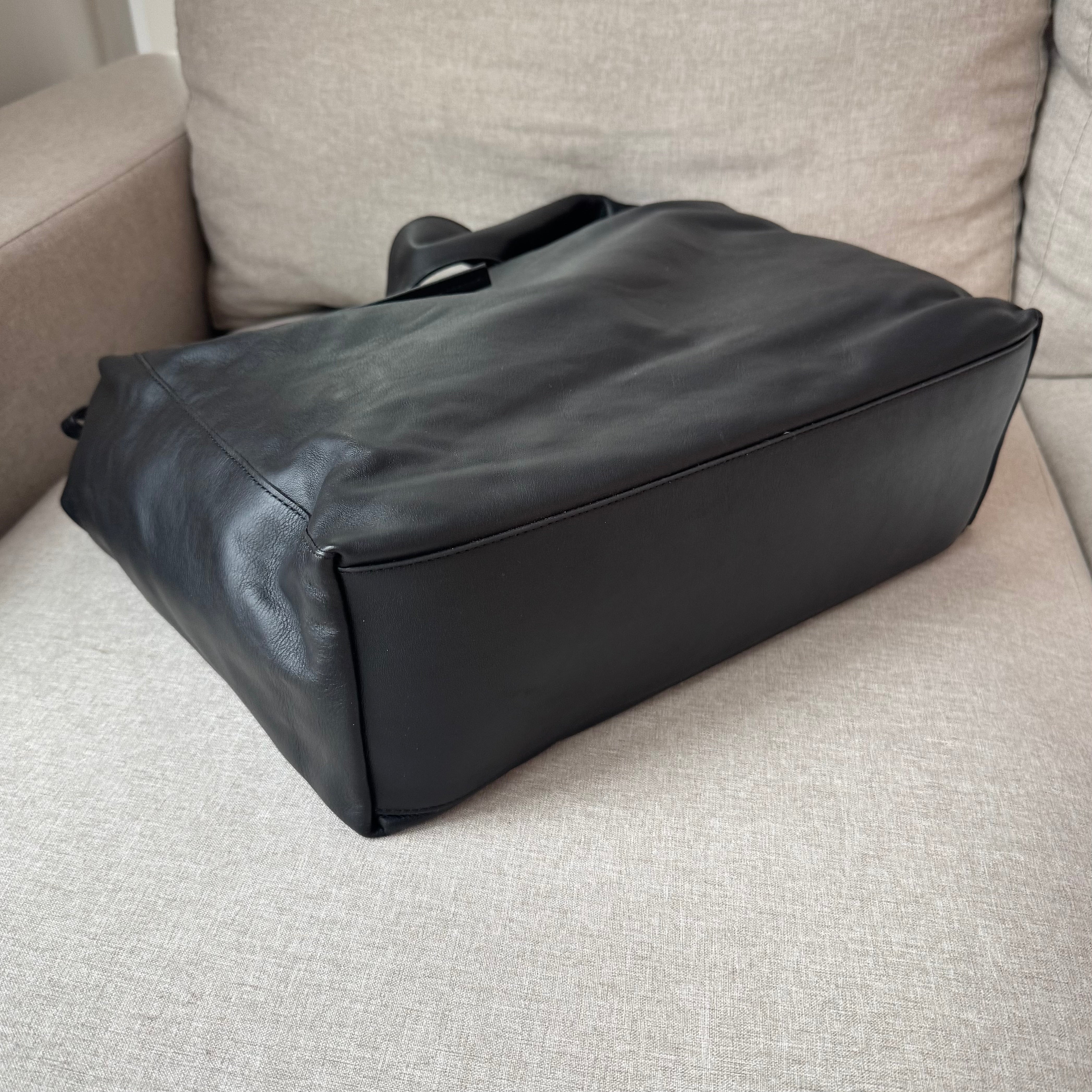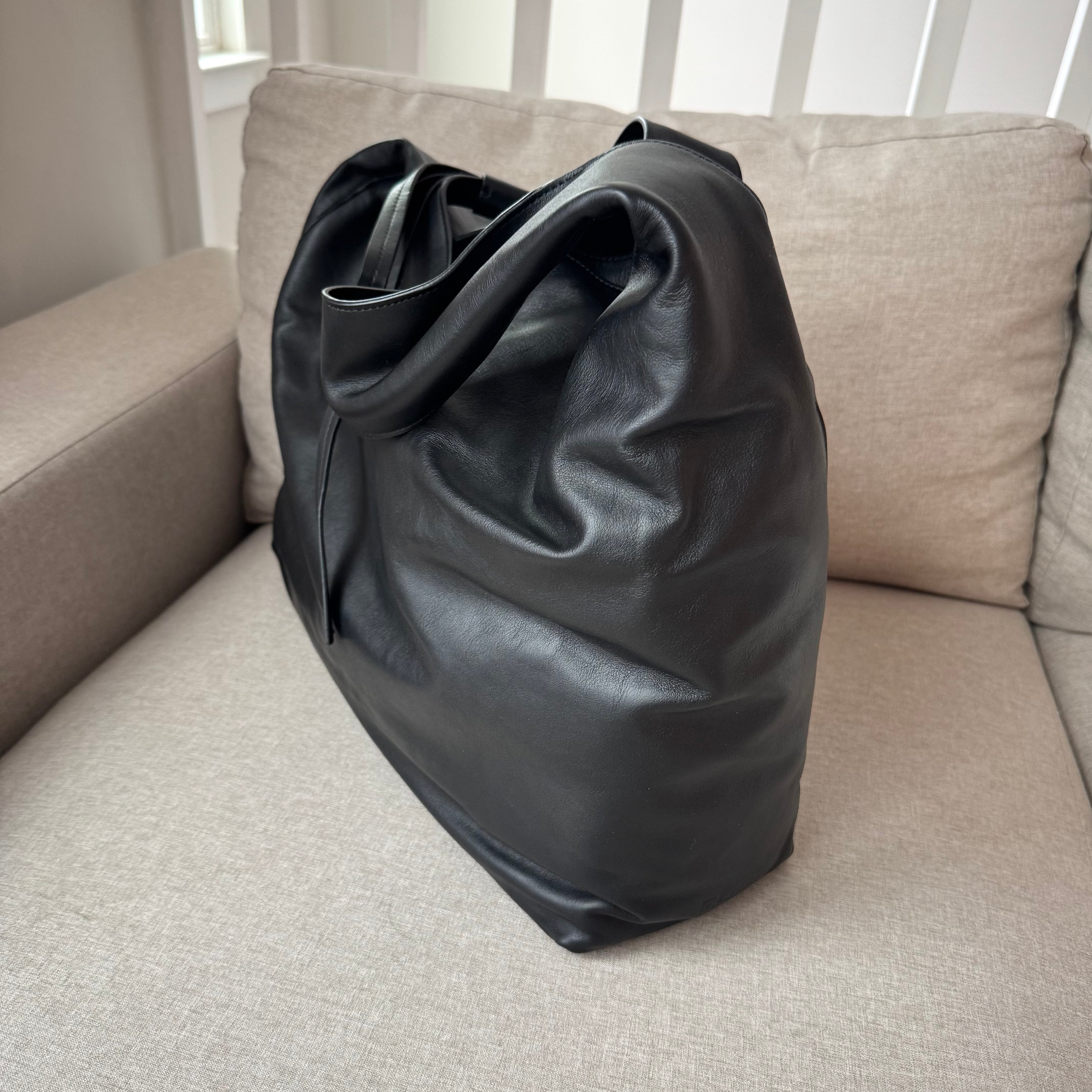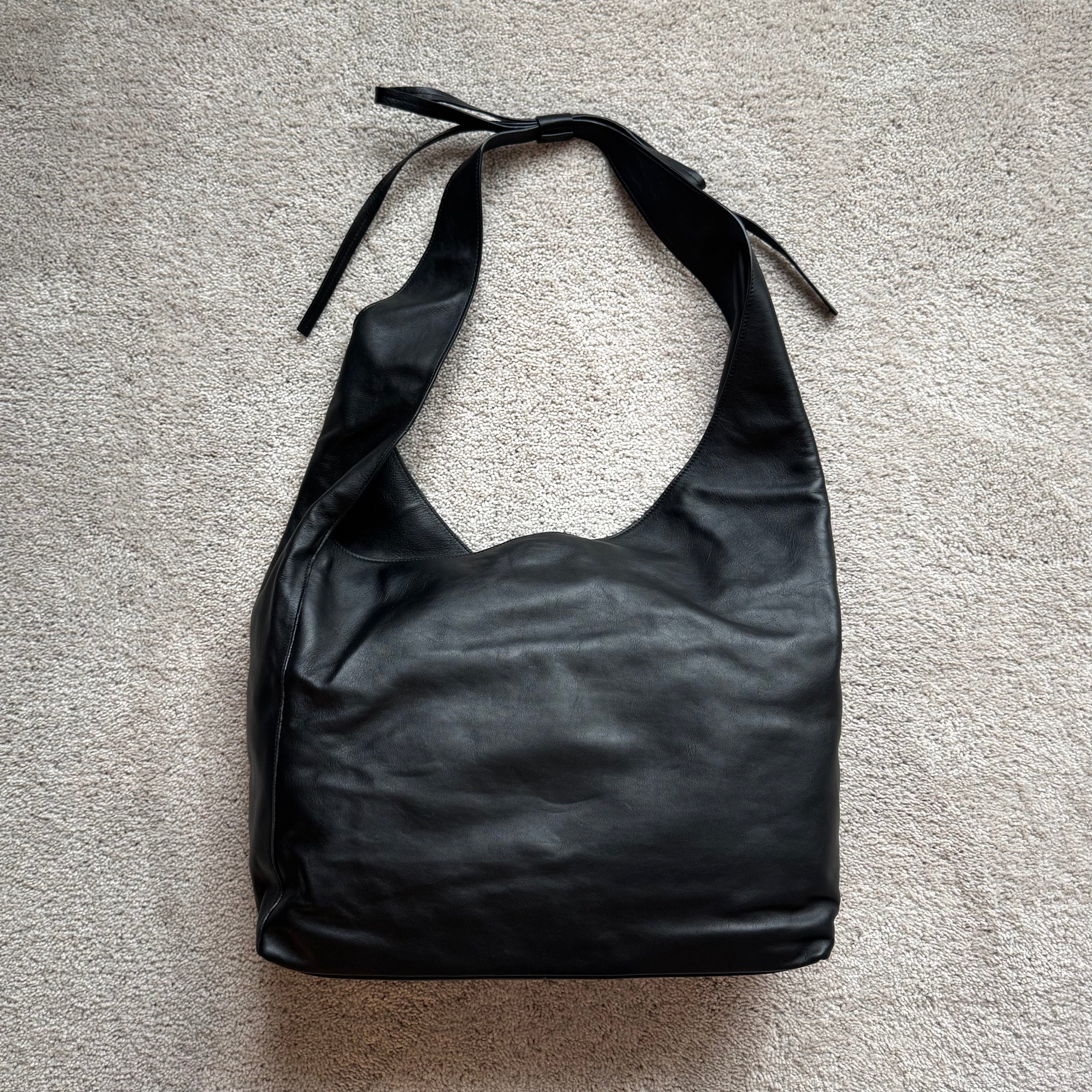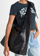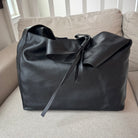 Reformation Oversized Vittoria Slouchy Black Leather Bow Detail Tote Bag