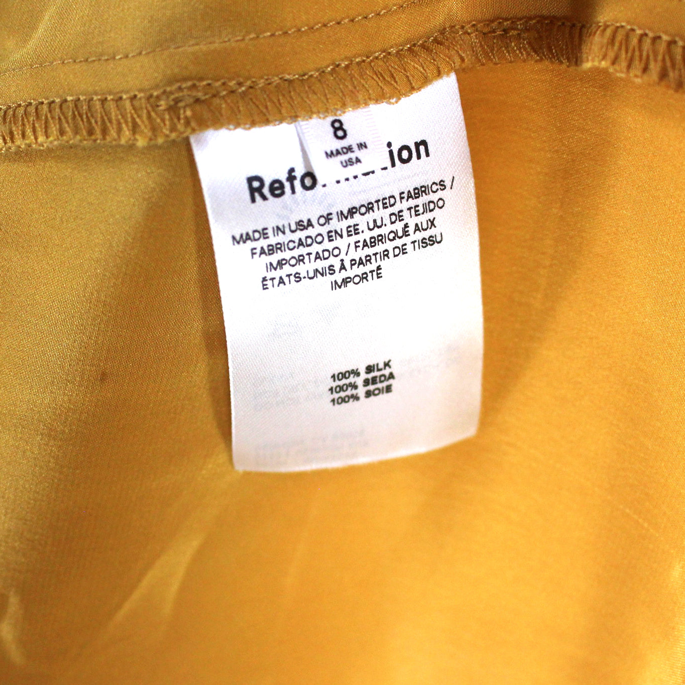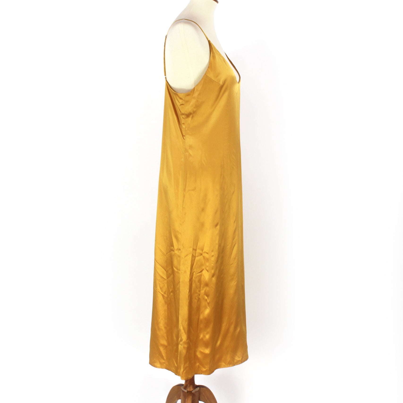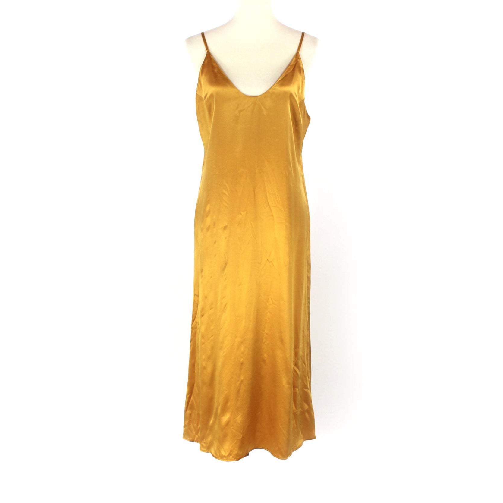 Reformation Sofia Gold Silk Sleeveless Satin Slip Midi Dress