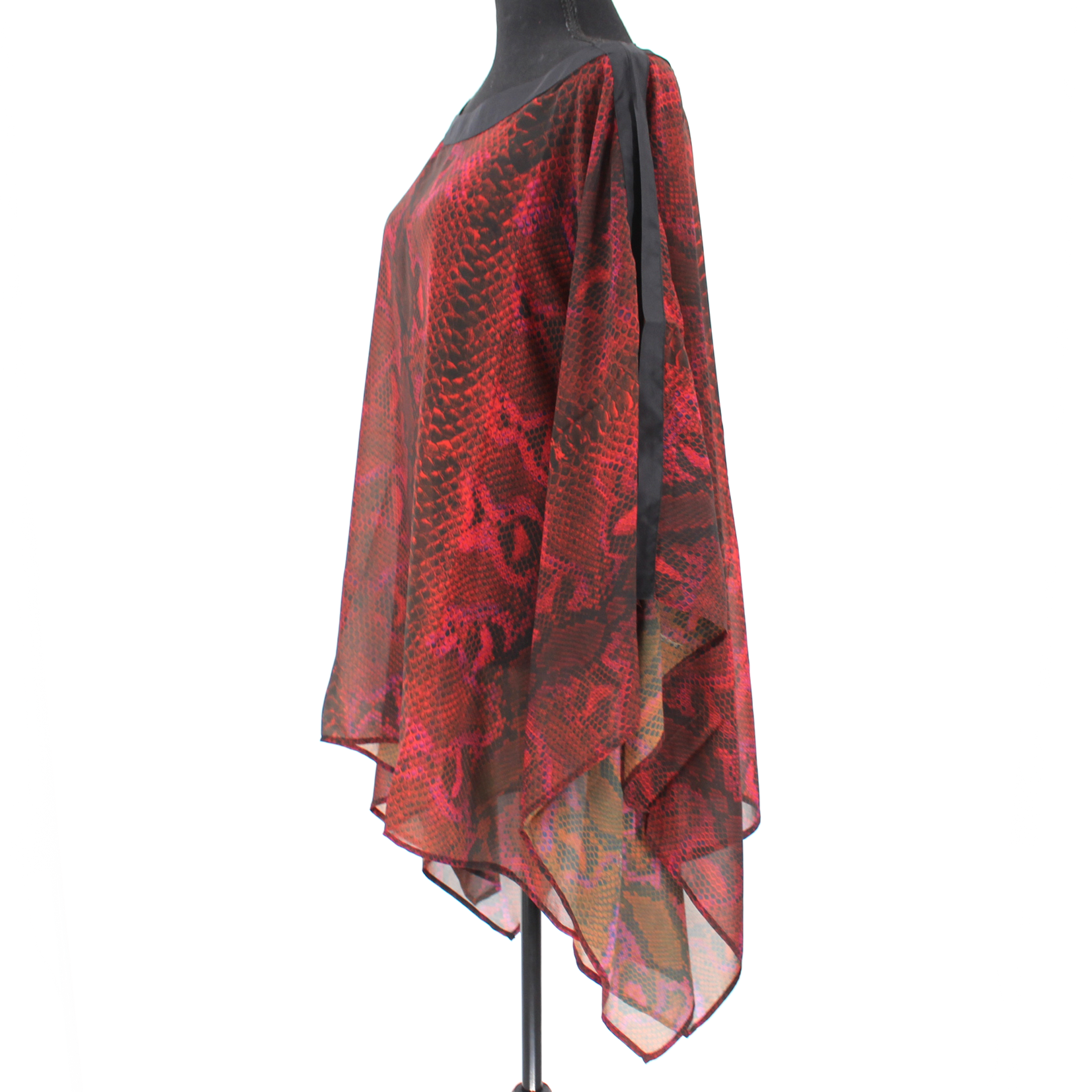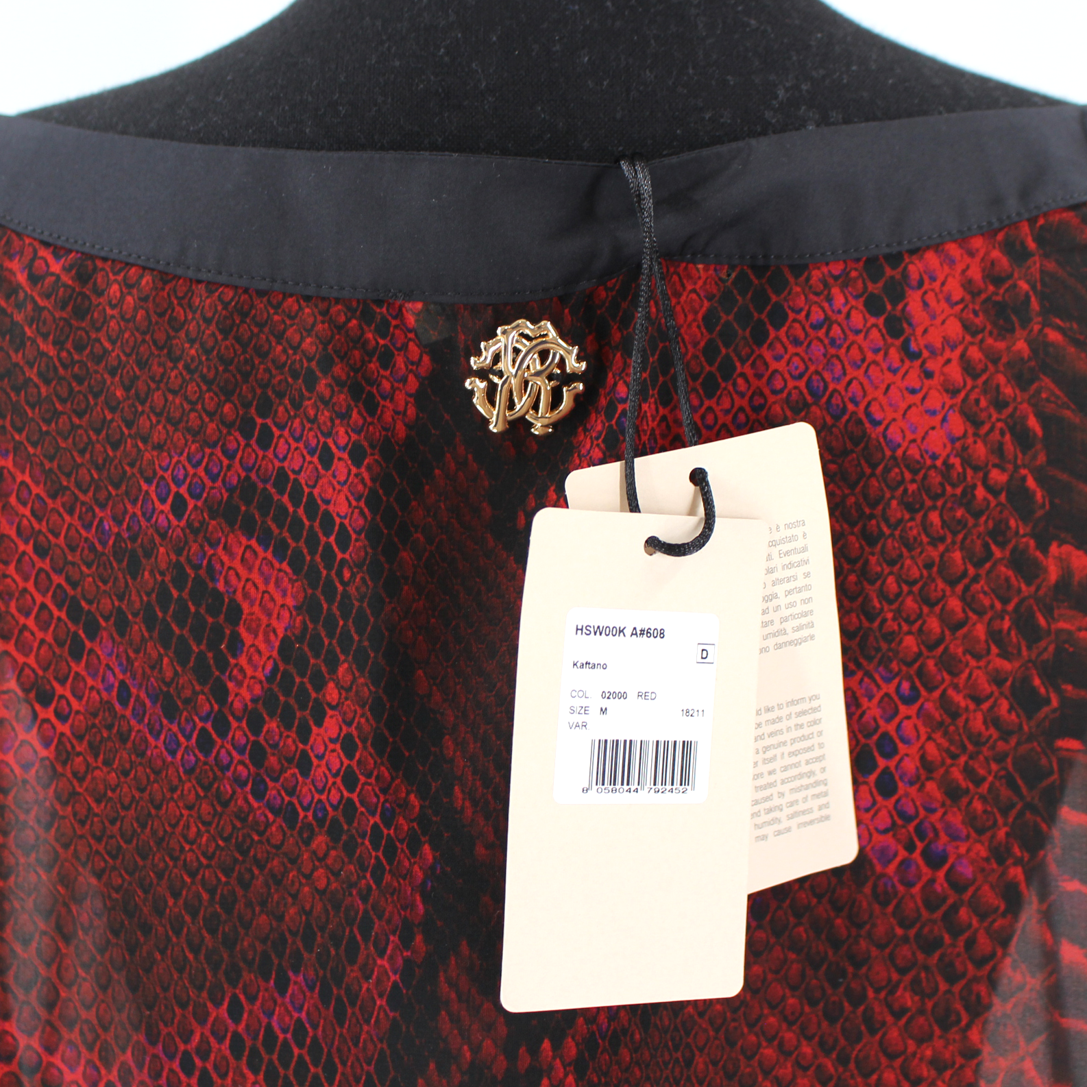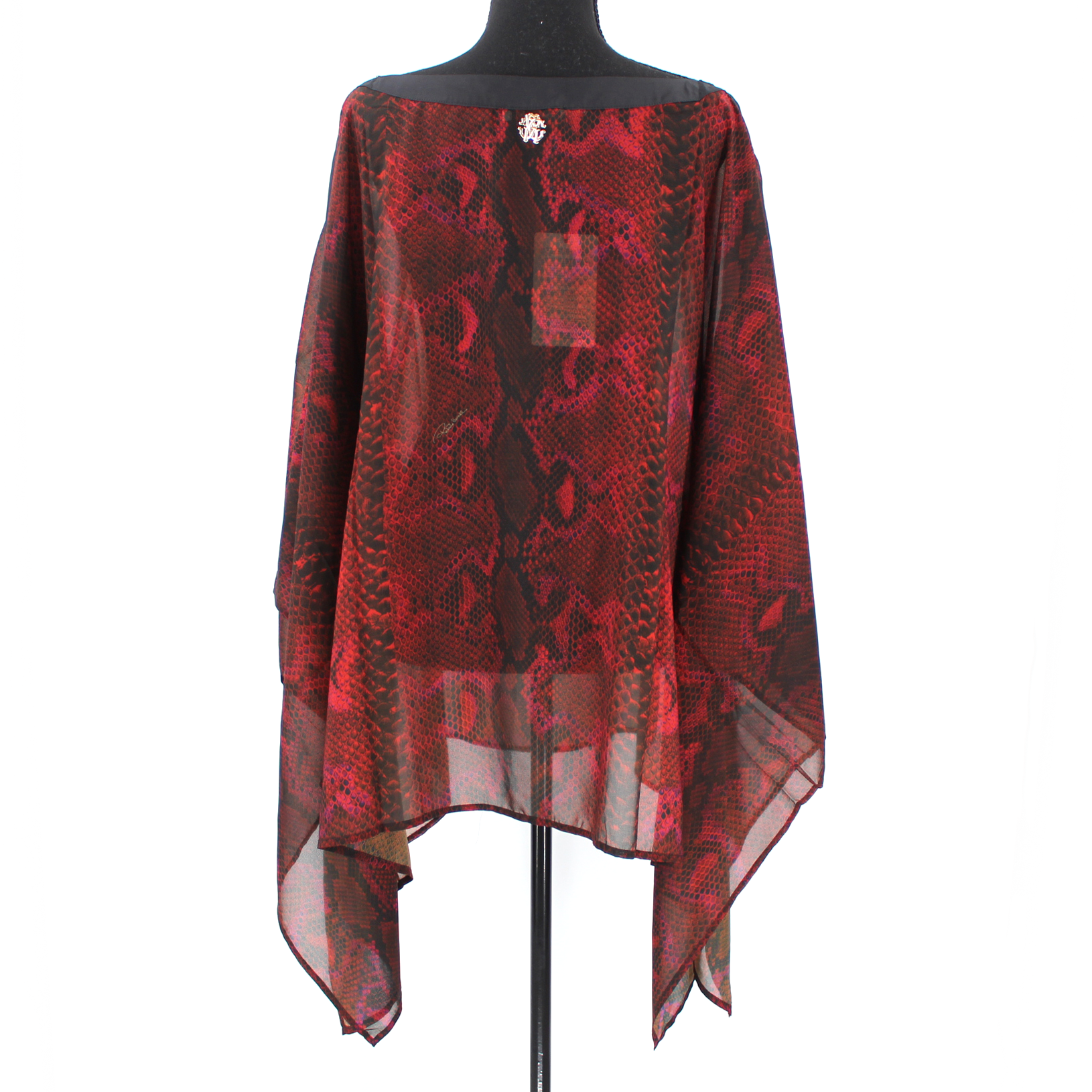 Roberto Cavalli Beachwear Kaftano Red Snake Print Draping Cover Up Top.