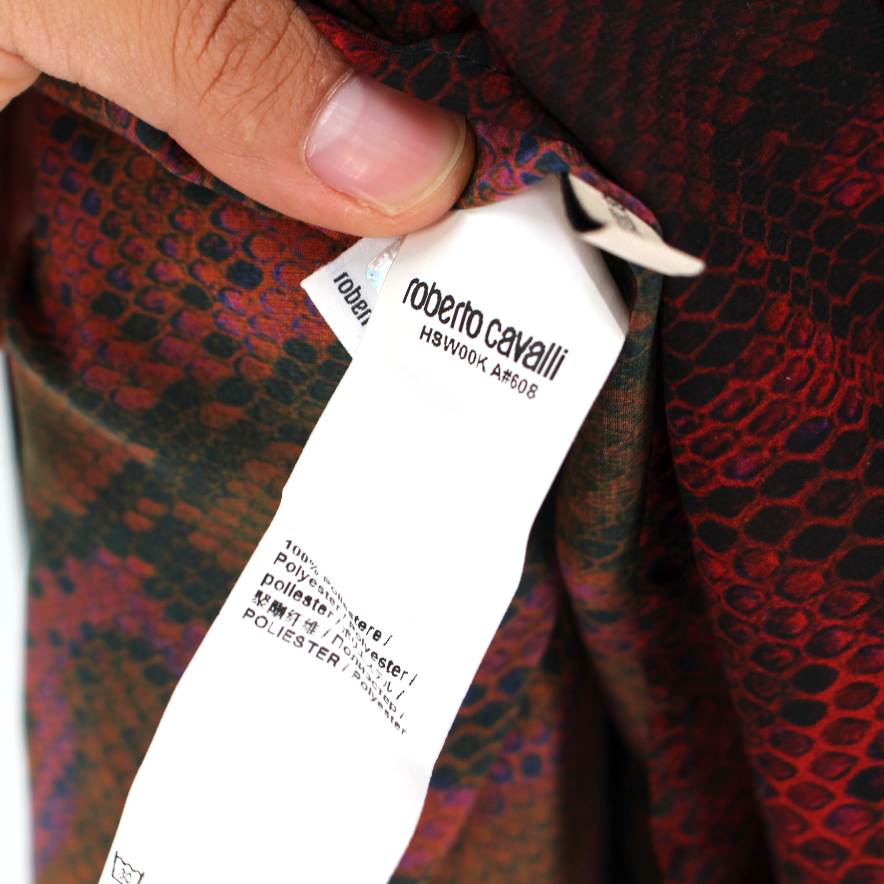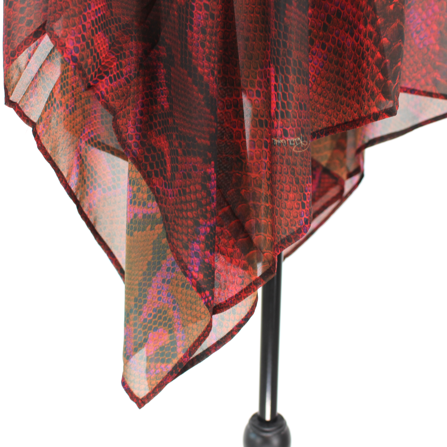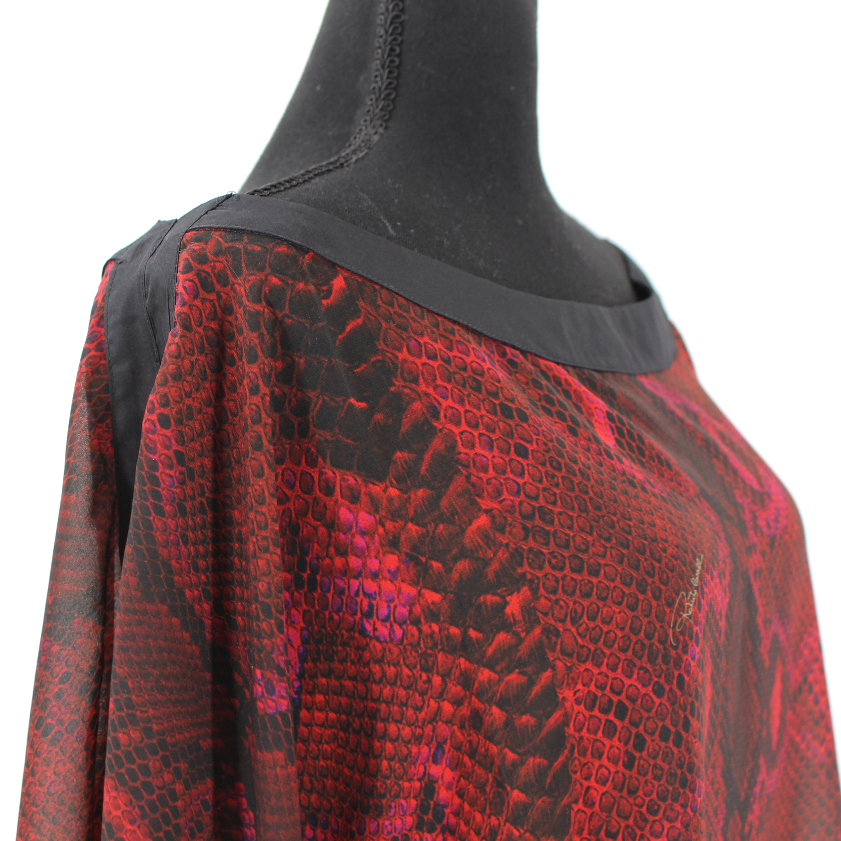 Roberto Cavalli Beachwear Kaftano Red Snake Print Draping Cover Up Top.