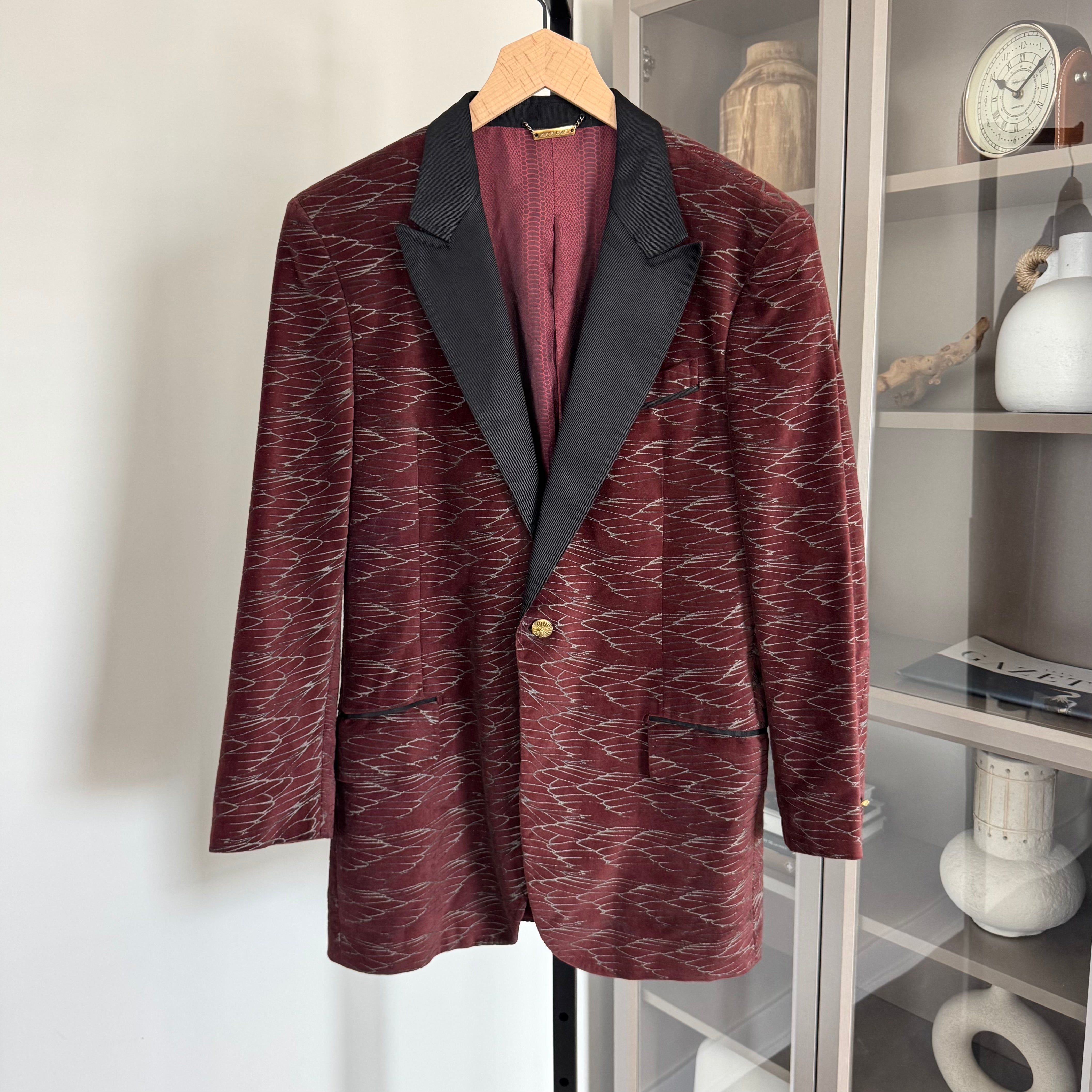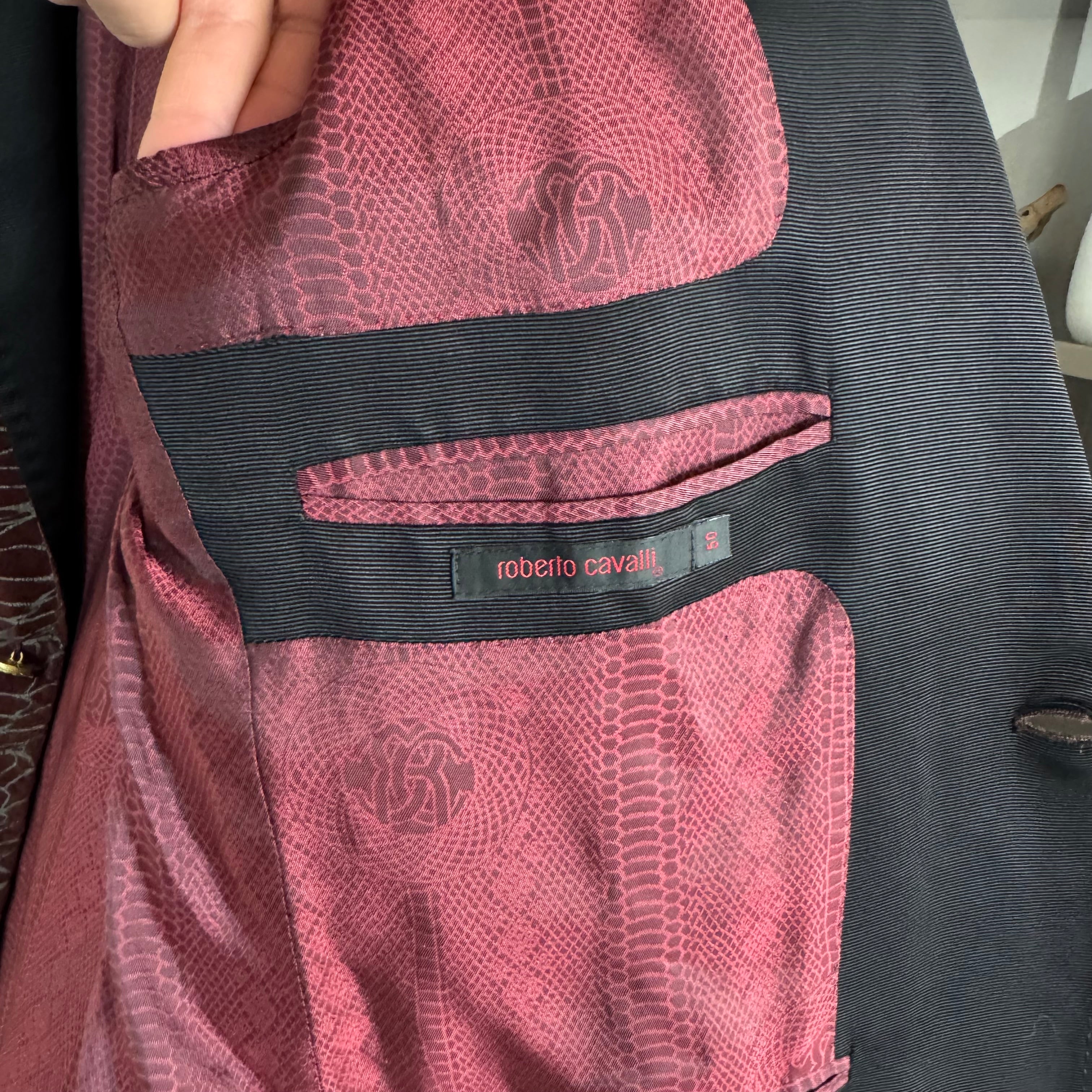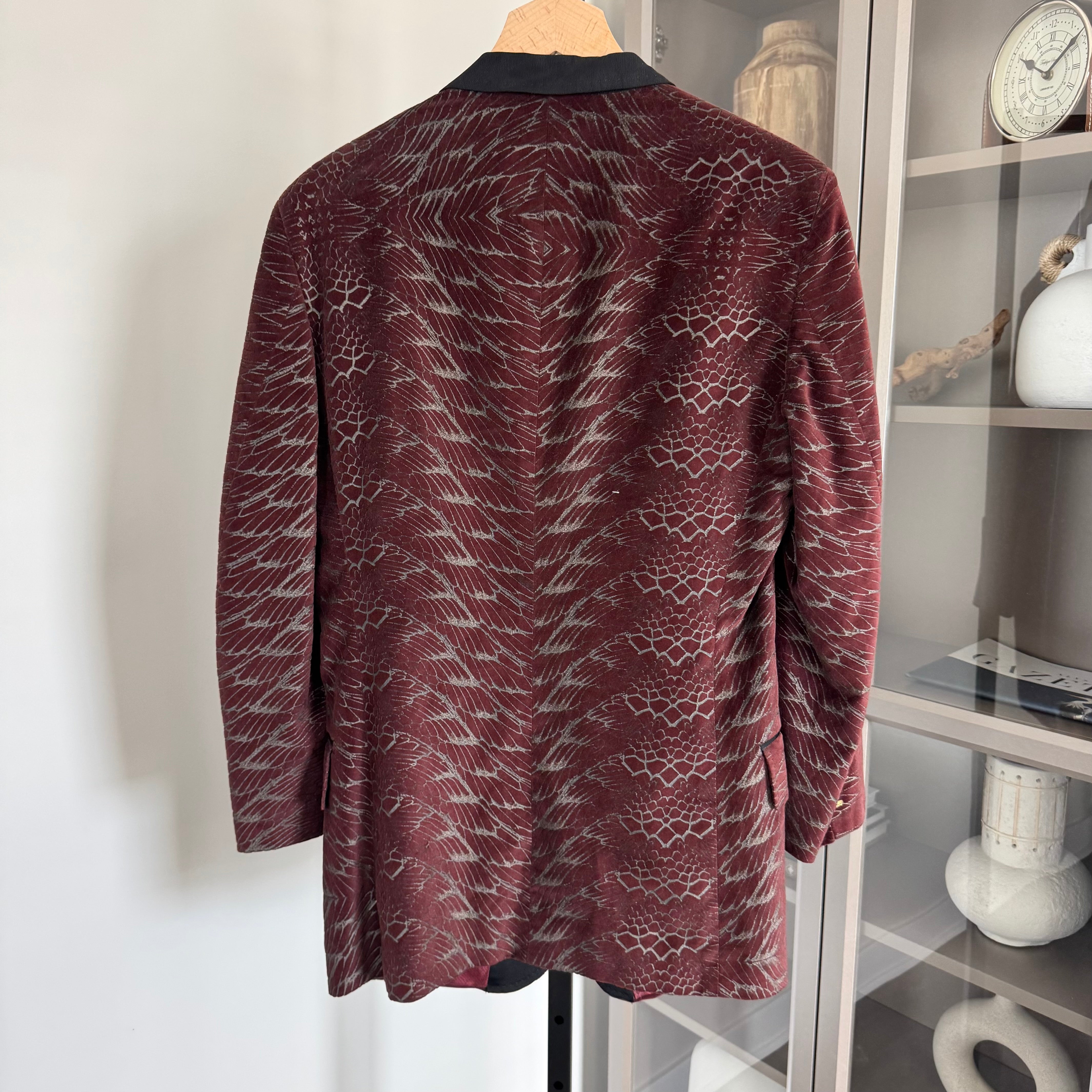 Roberto Cavalli Black Lapel Burgundy Grey Metallic Patterned Blazer Jacket