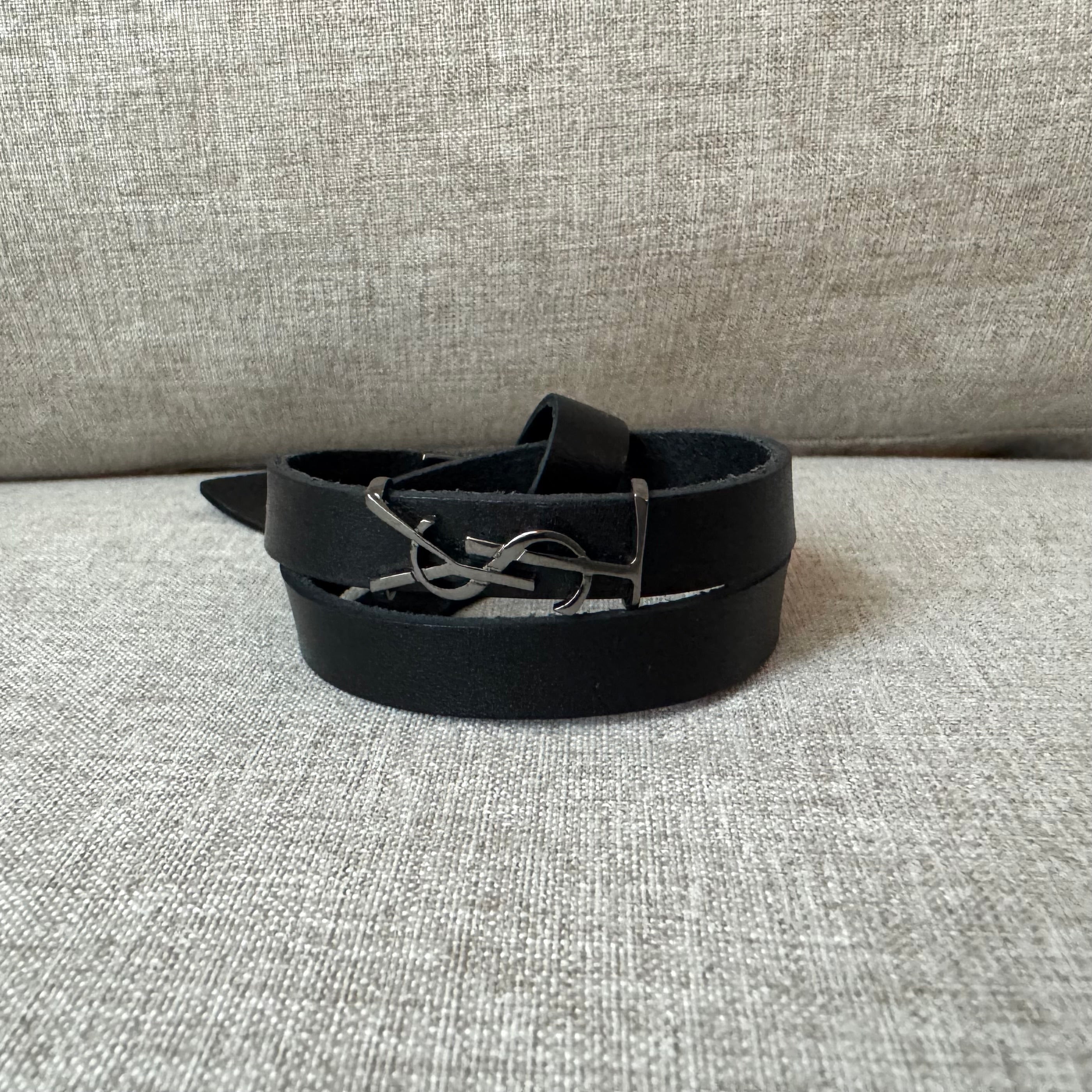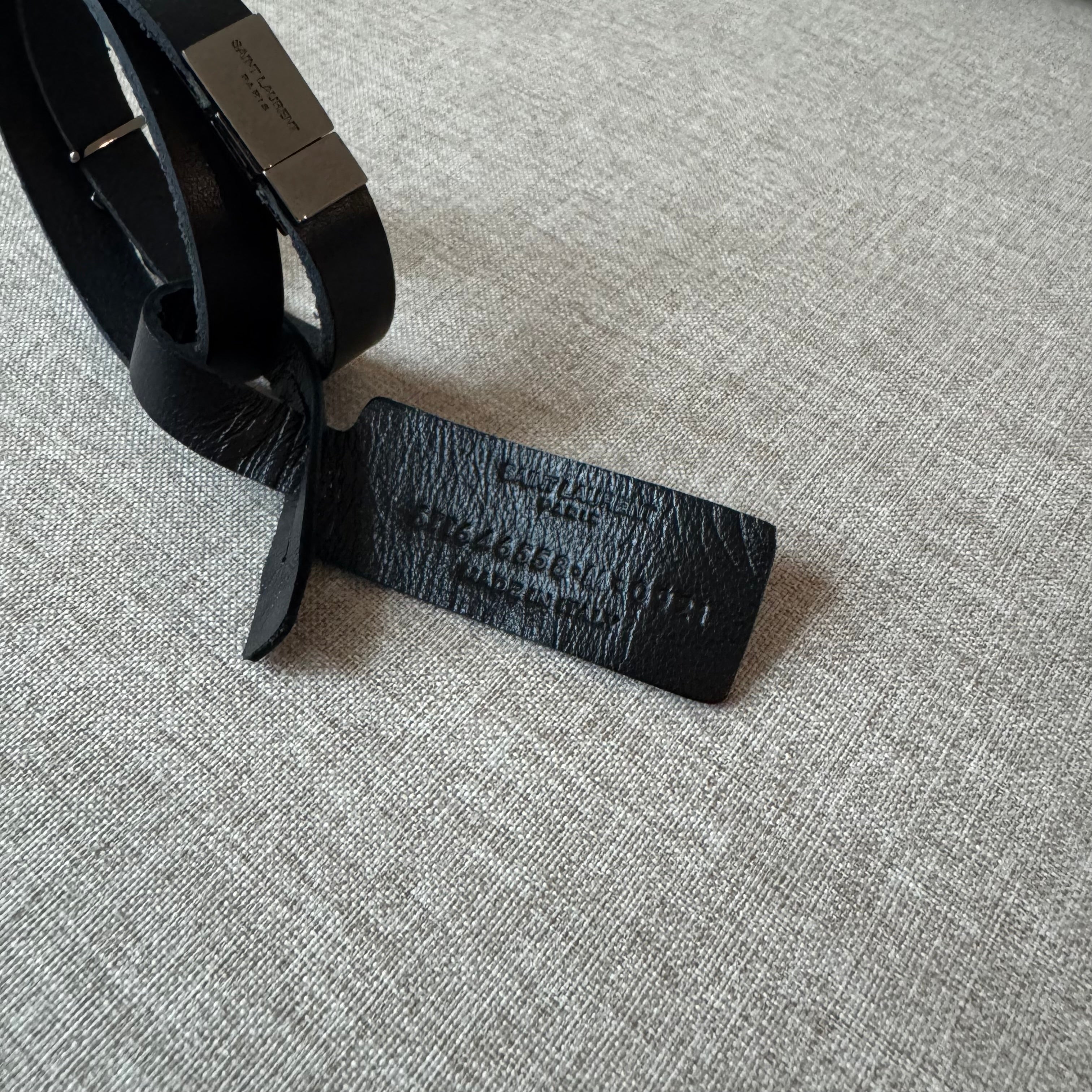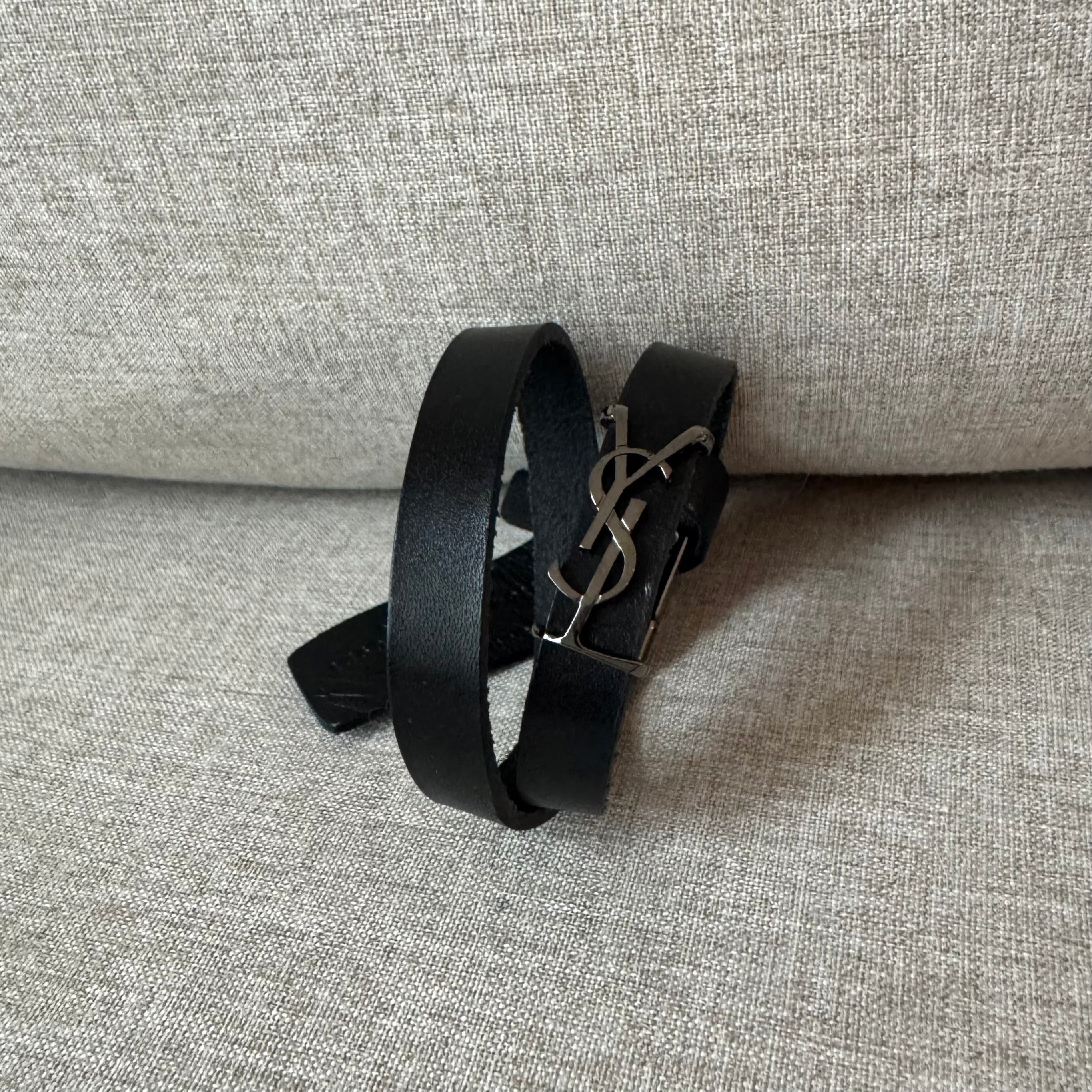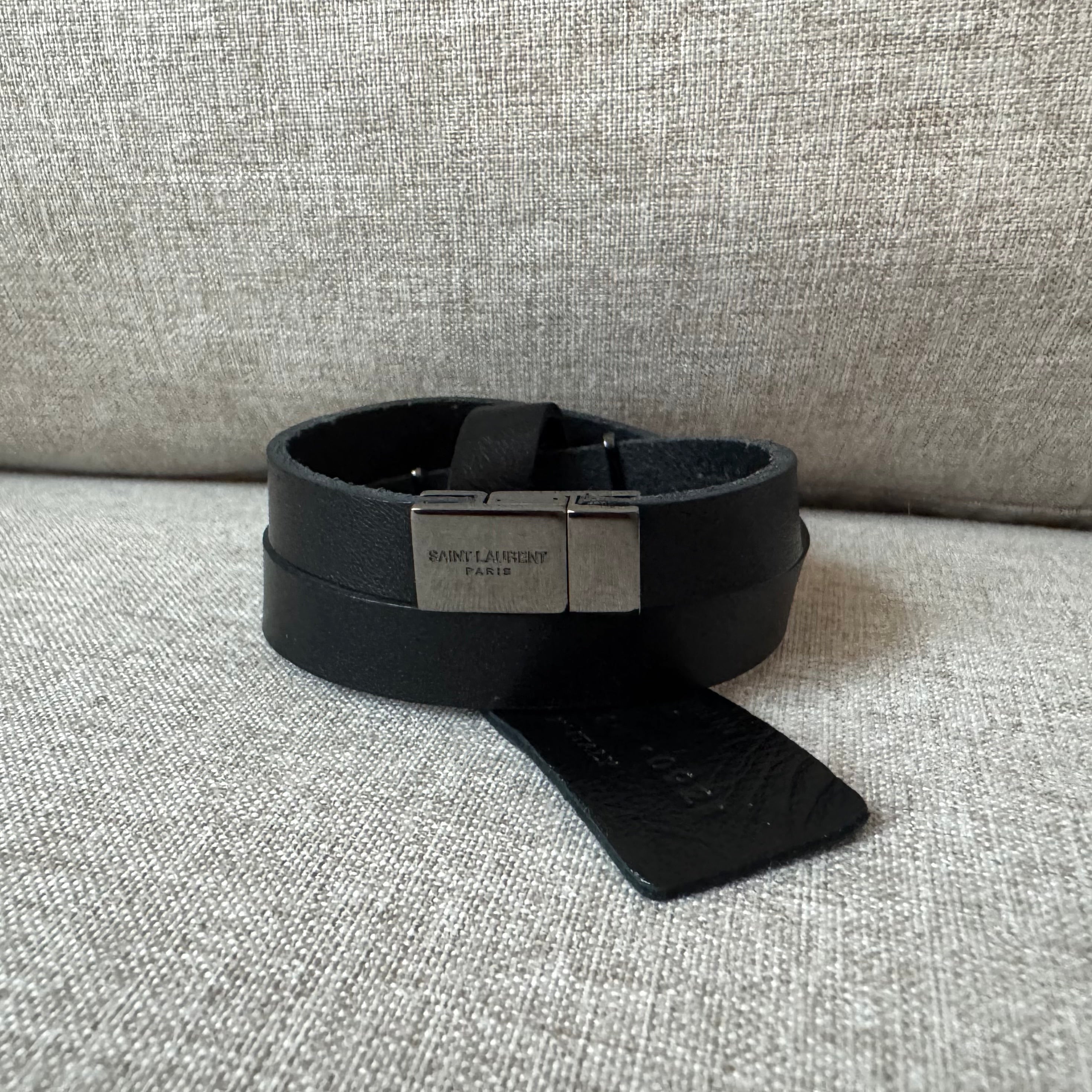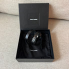 Saint Laurent Opyum Black Leather Silver Tone YSL Wrist Bracelet
