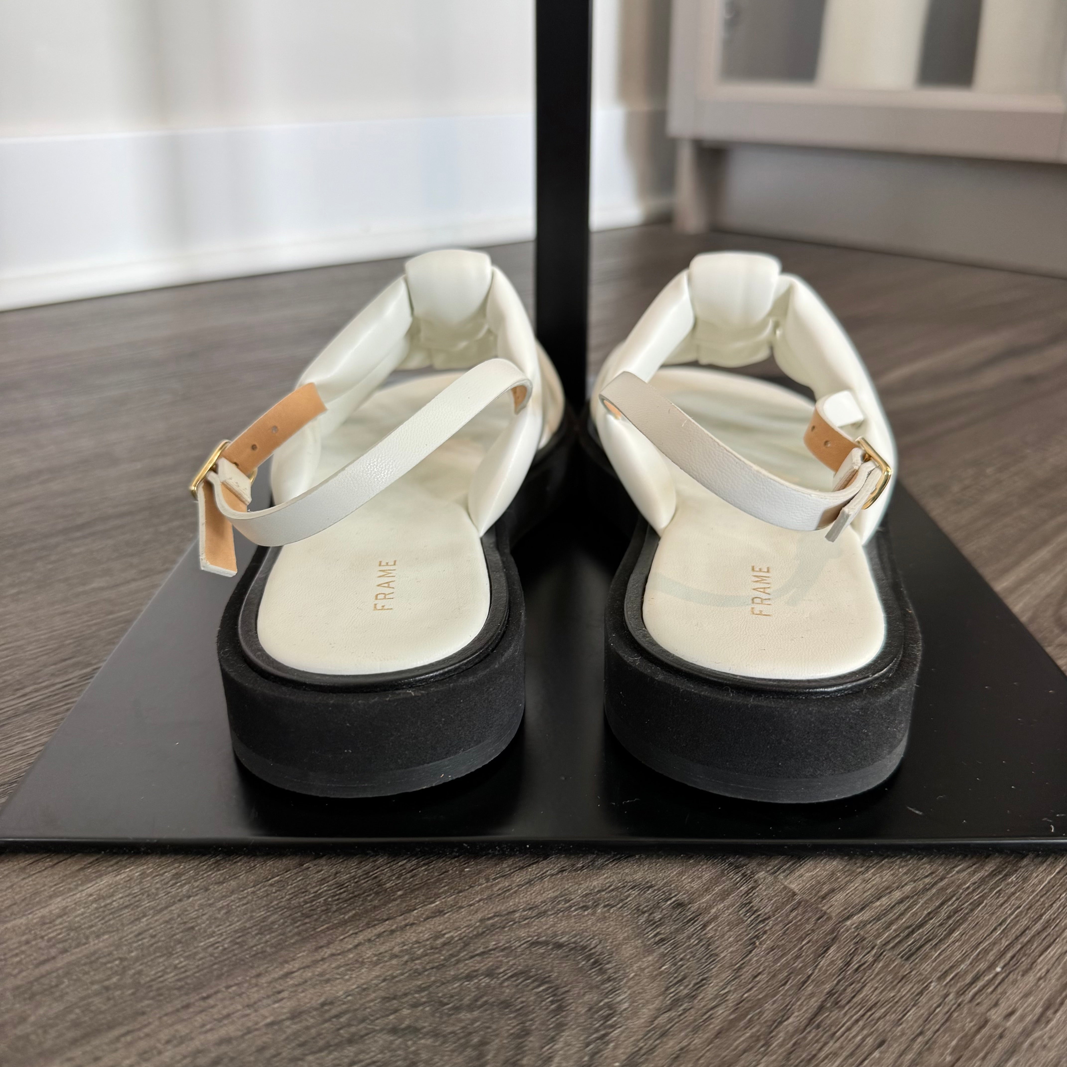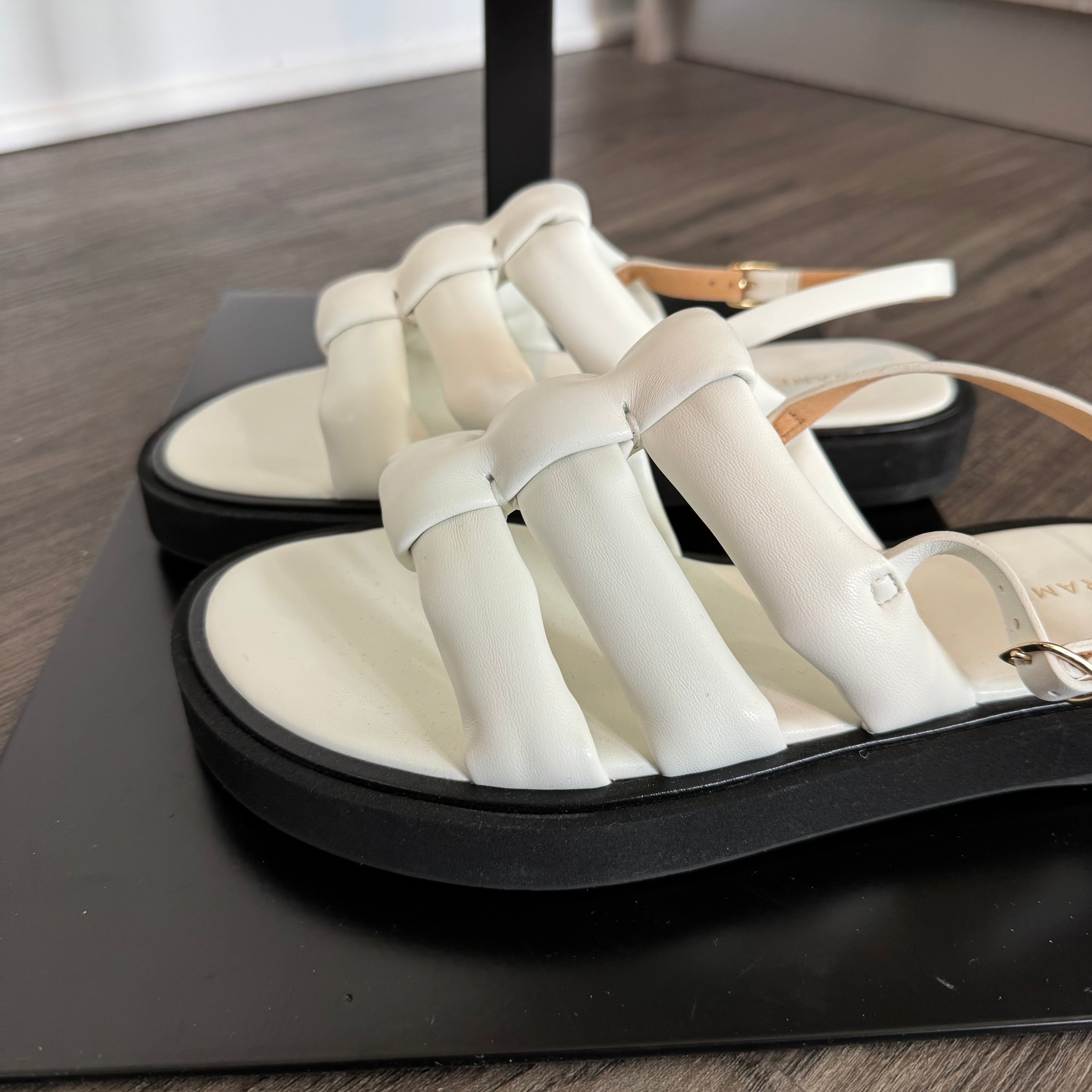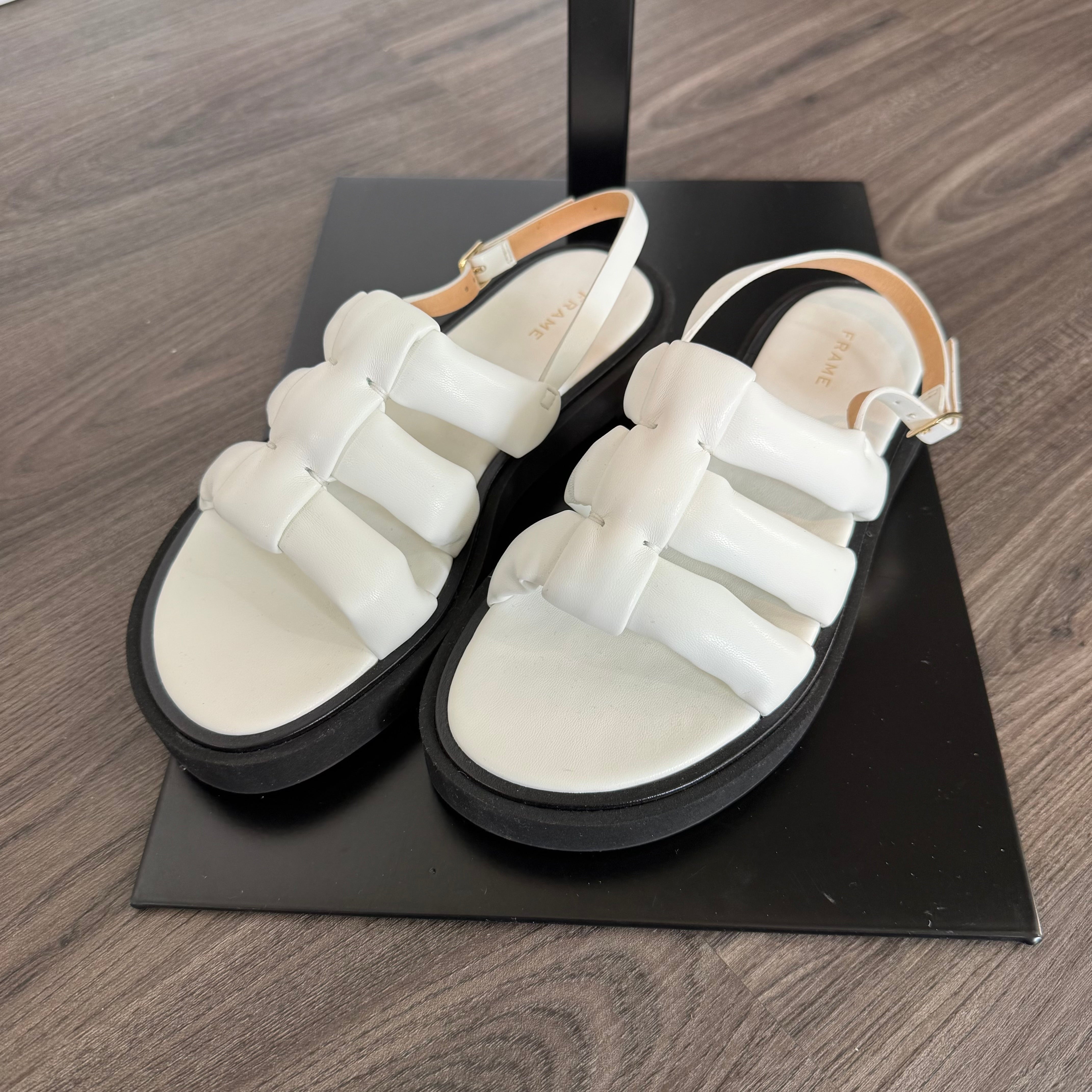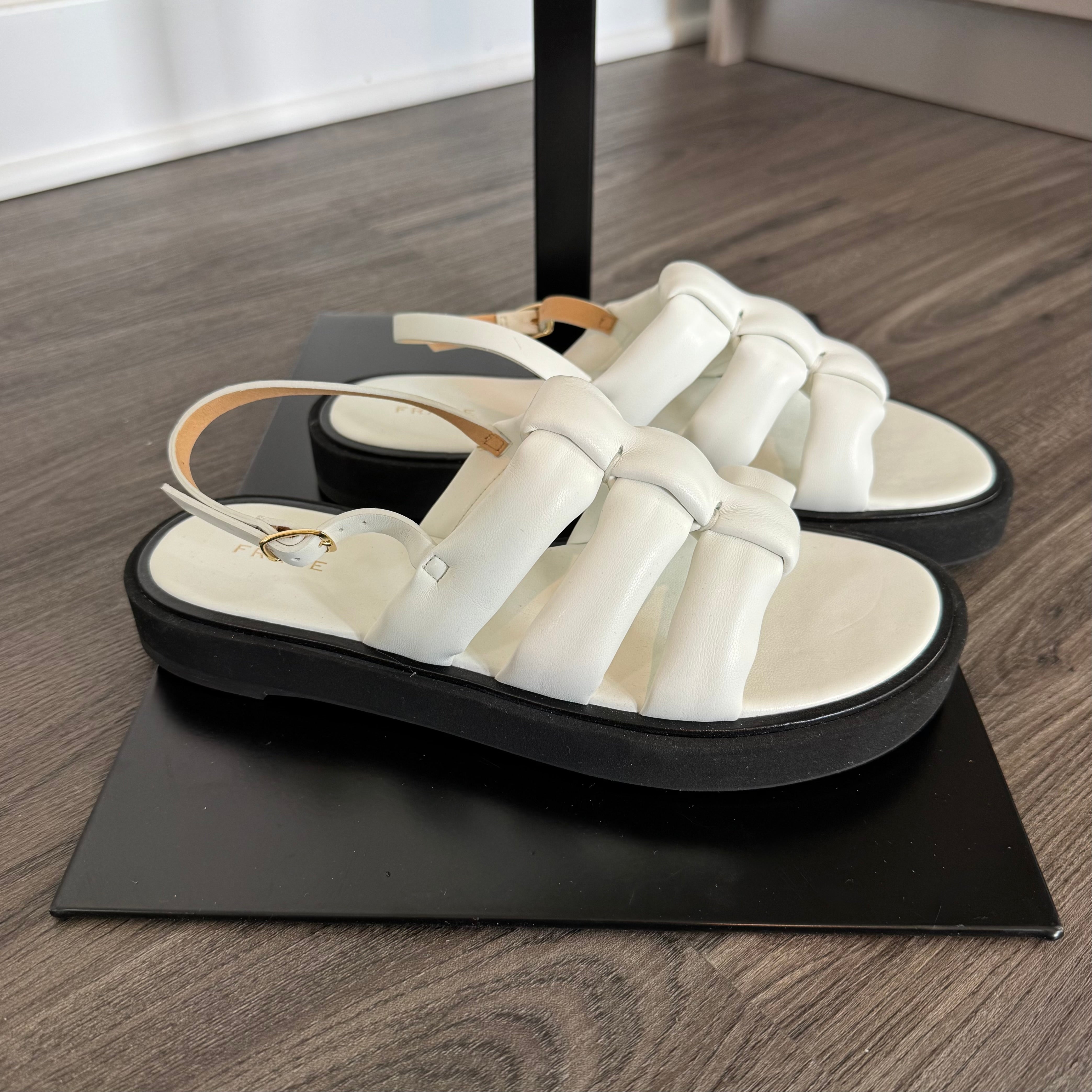 Frame Le Weston White Padded Faux Leather Caged Platform Sandals