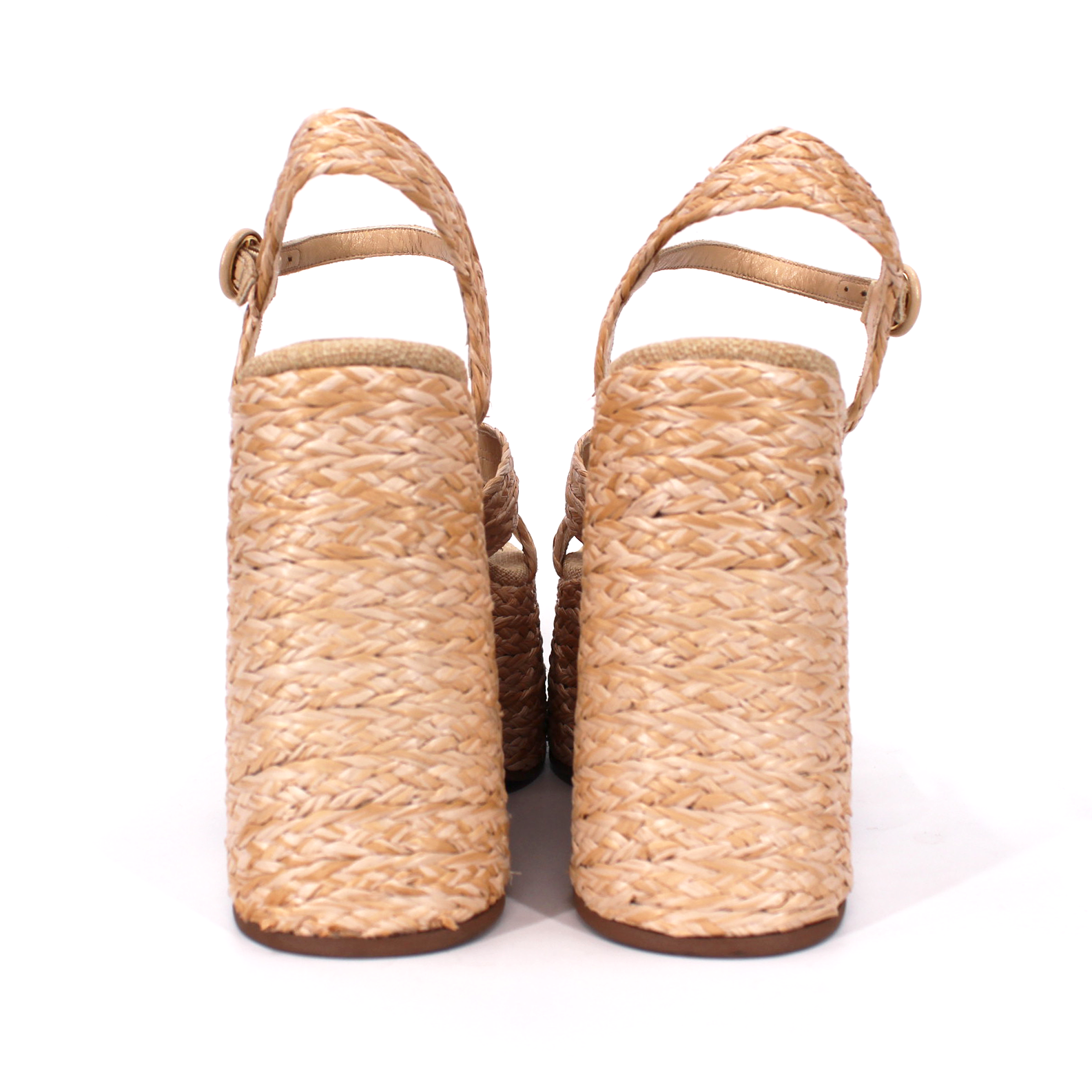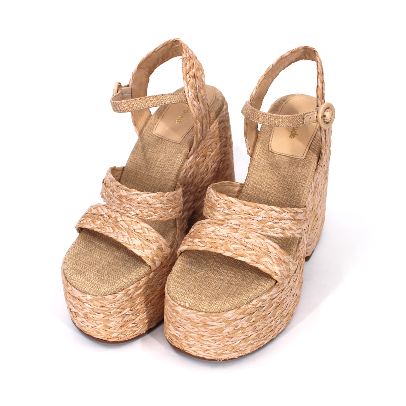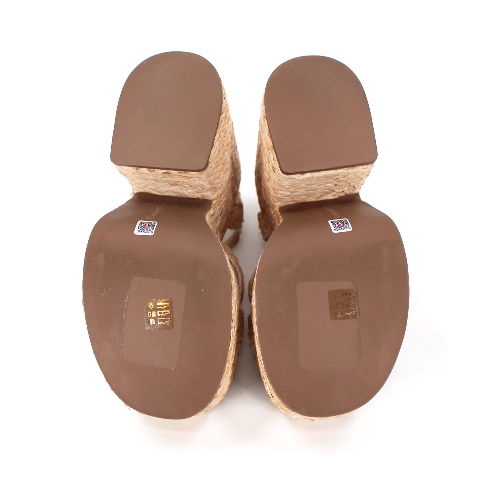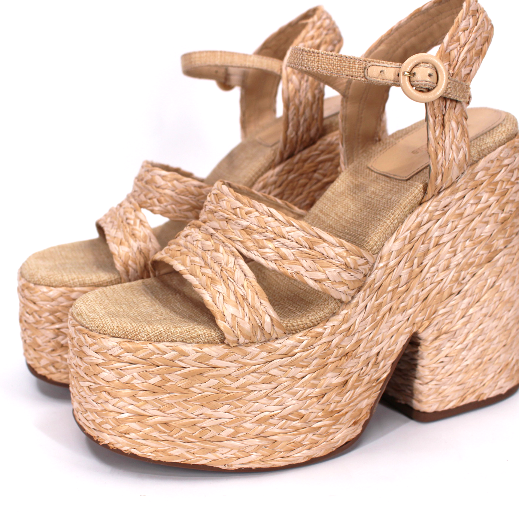 Larroude Carmen Platform Natural Raffia Block Heel Open Toe Sandals