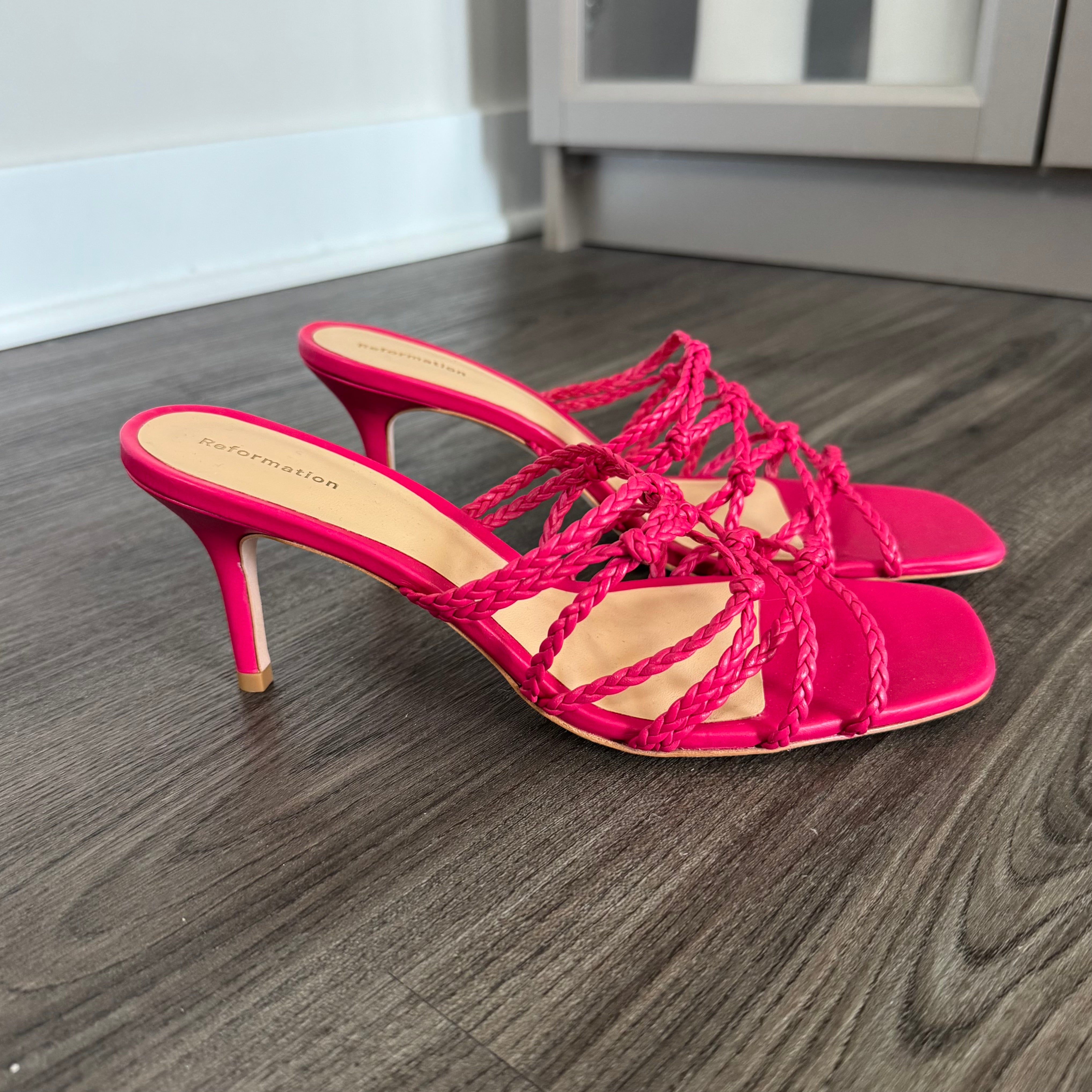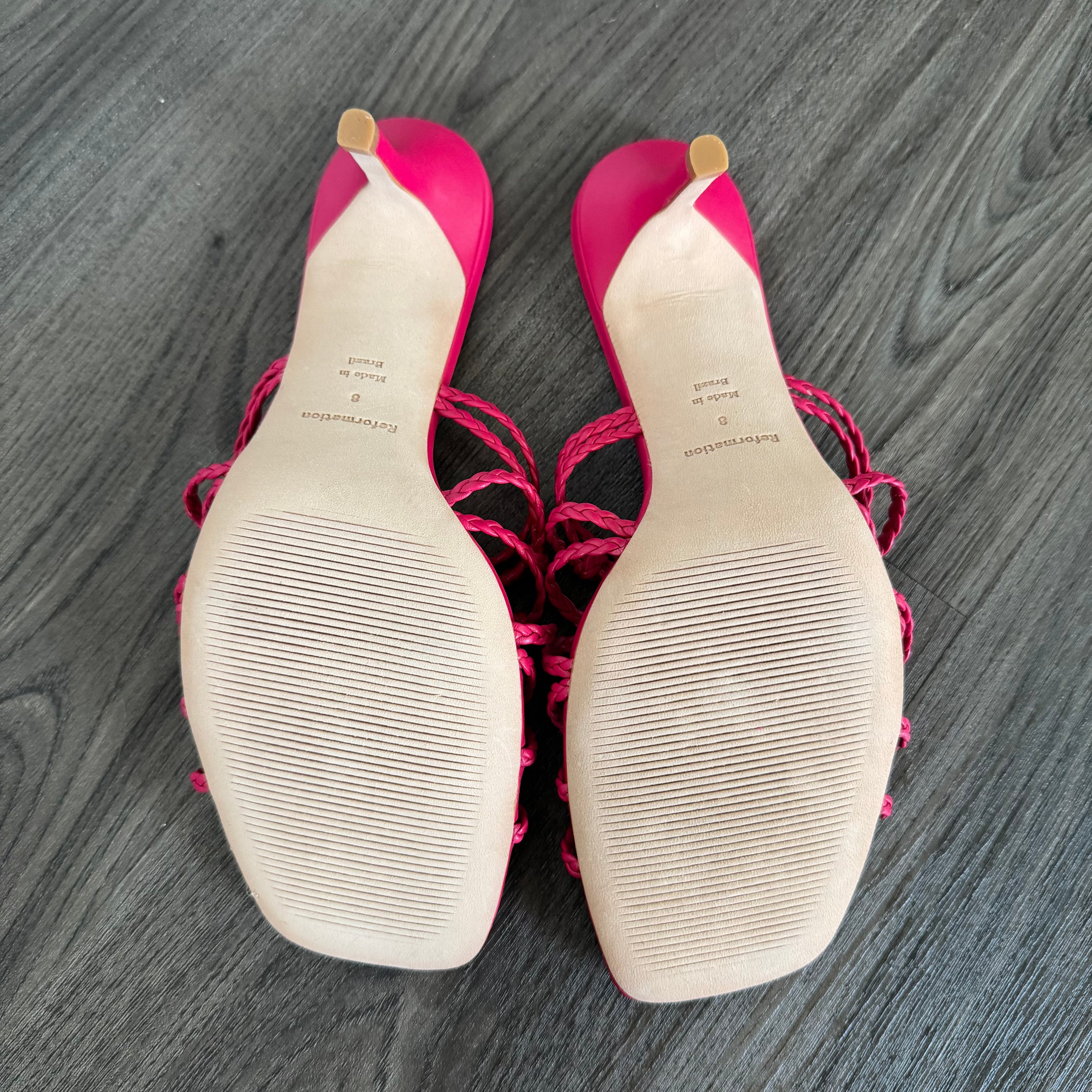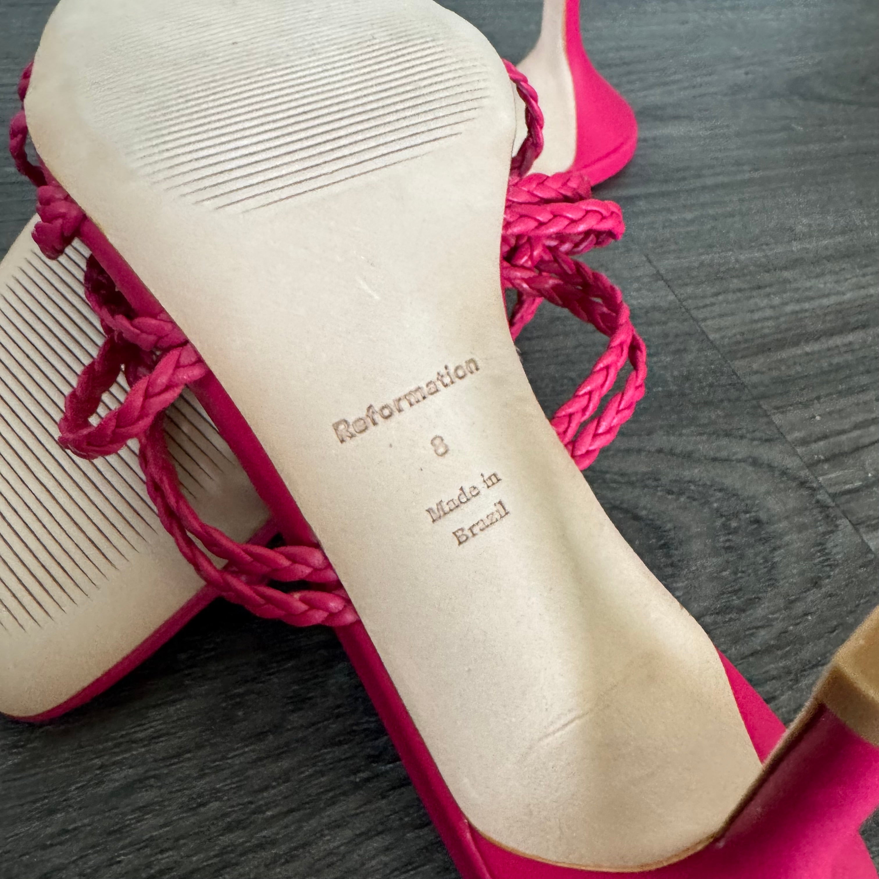Reformation Mylo Leather Braided Knotted Strappy Pink Heeled Sandals