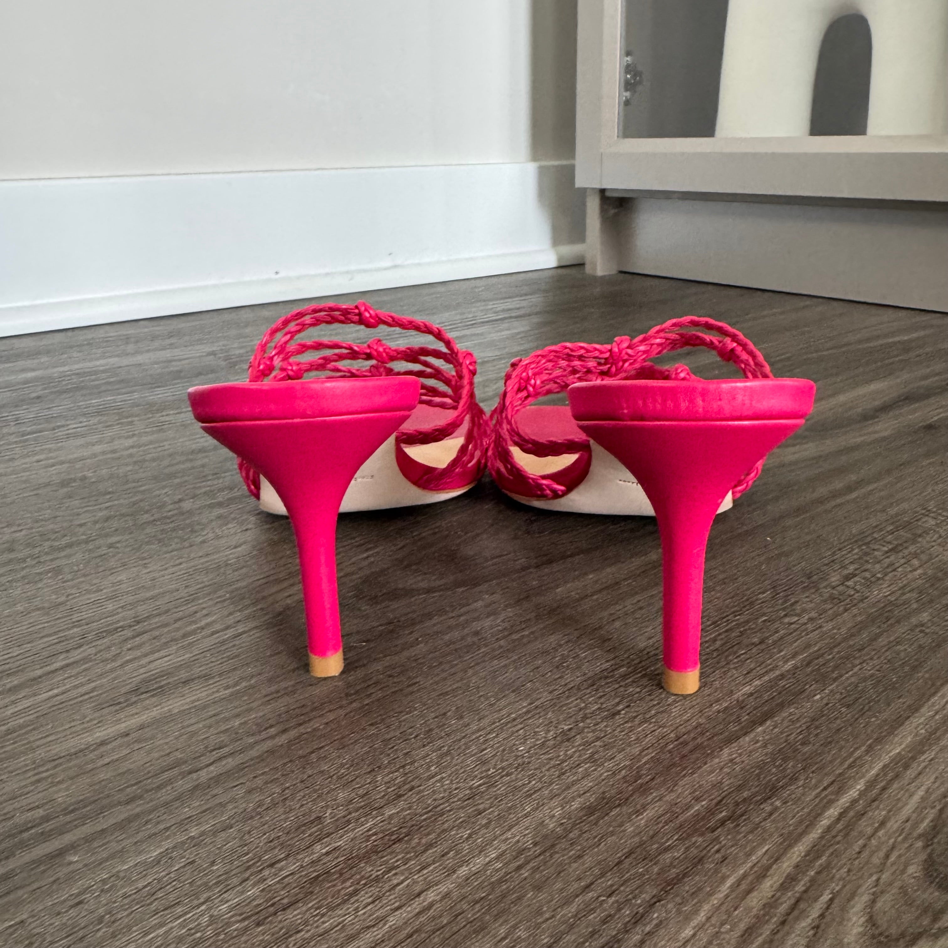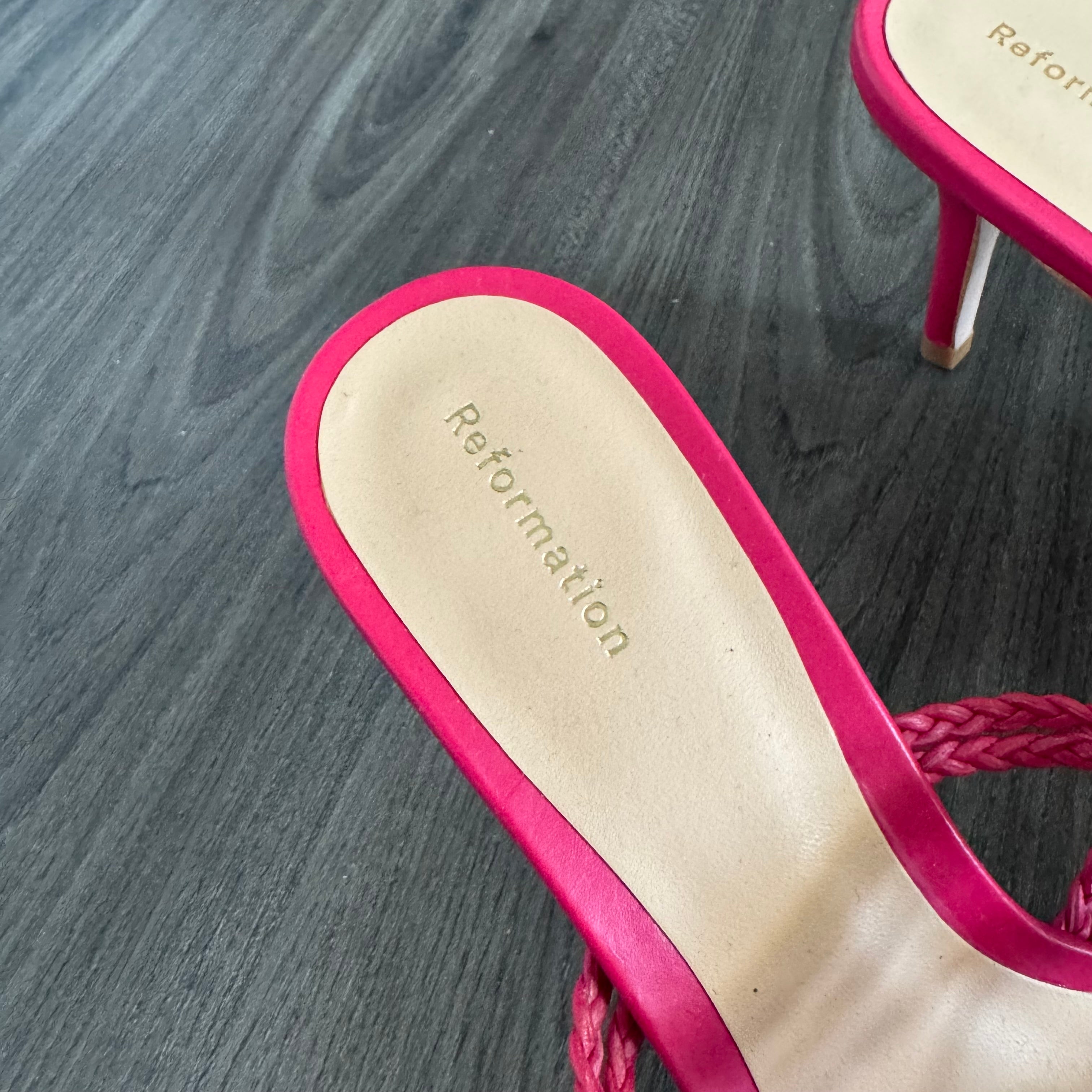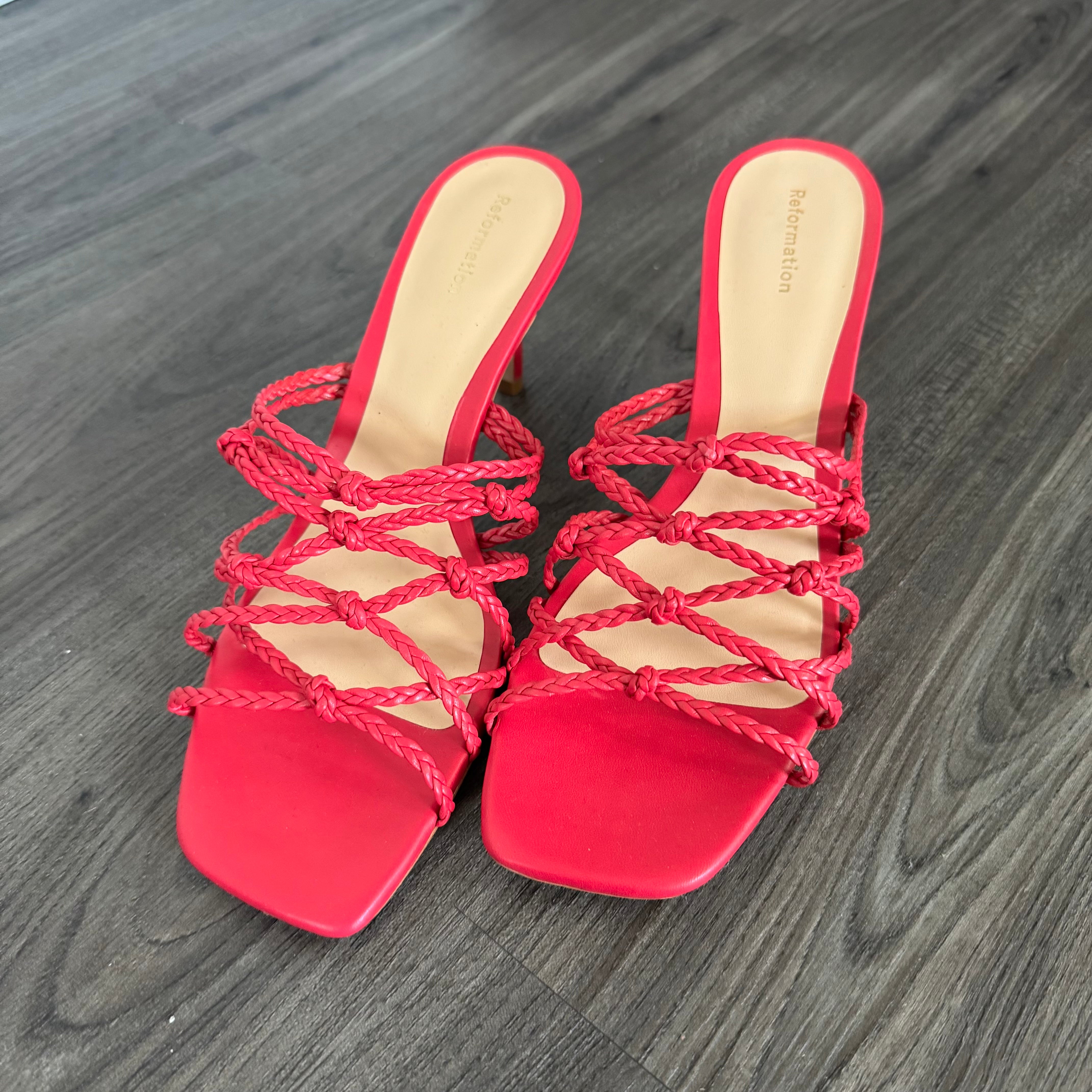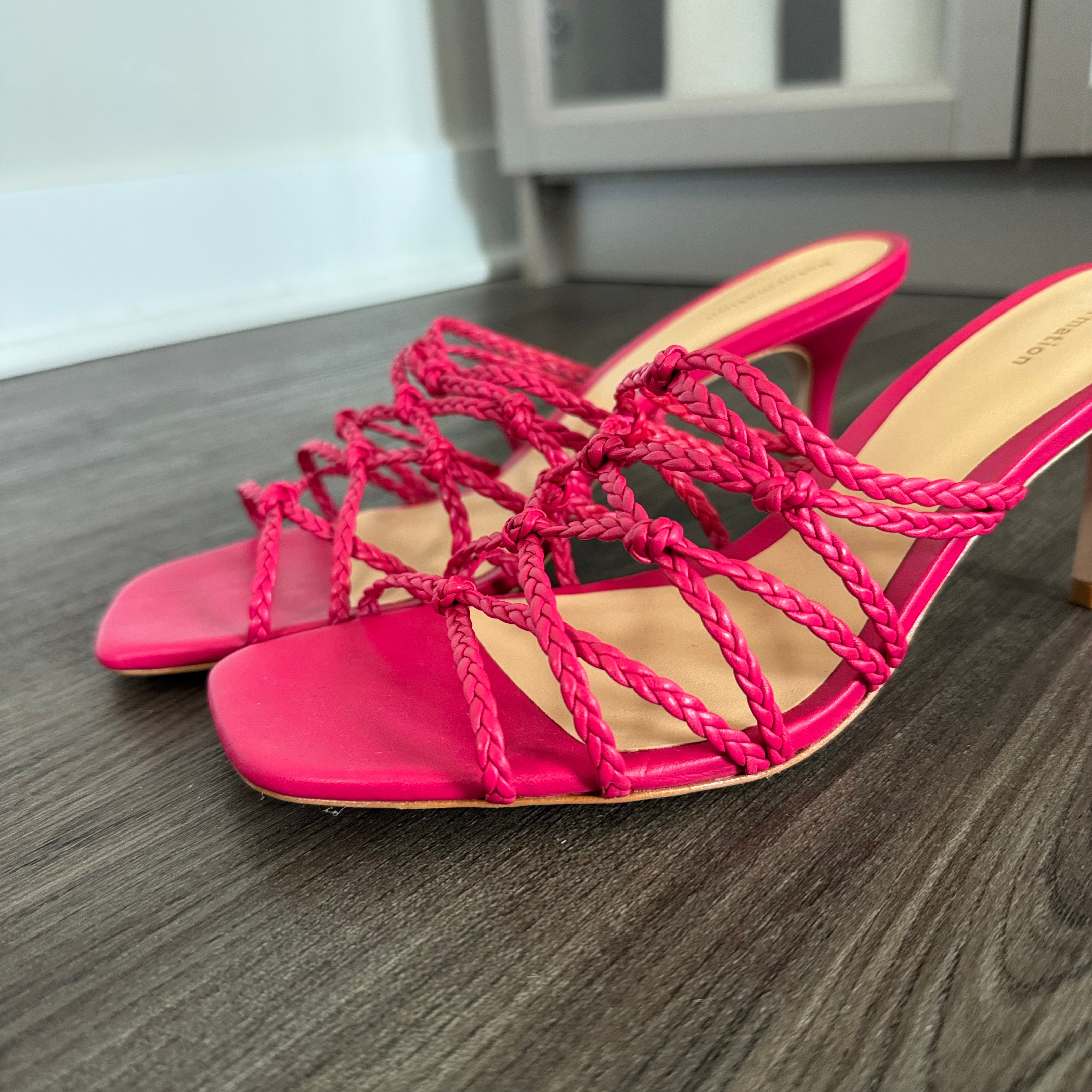 Reformation Mylo Leather Braided Knotted Strappy Pink Heeled Sandals