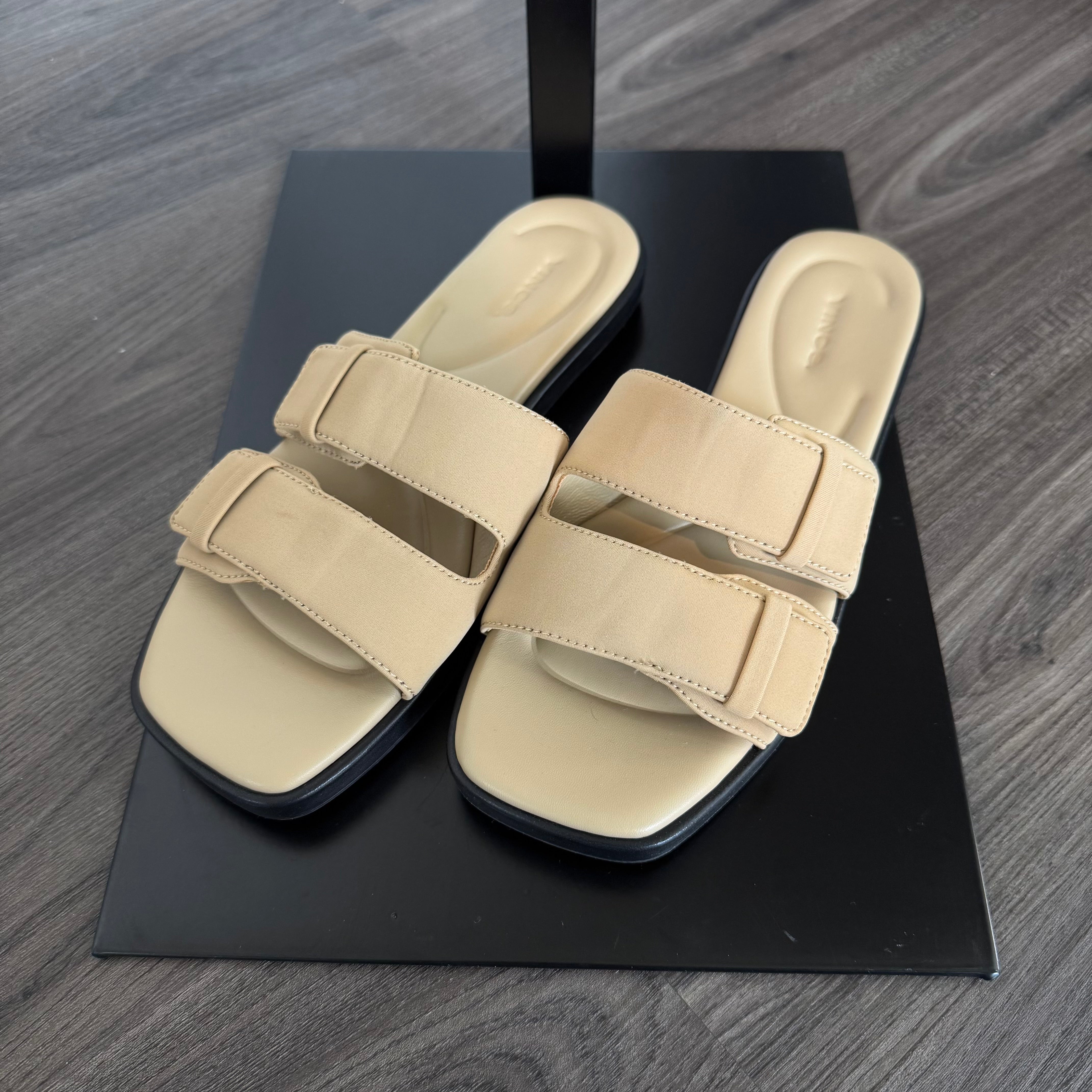 - 2 fabric elastic anchored strap vamp