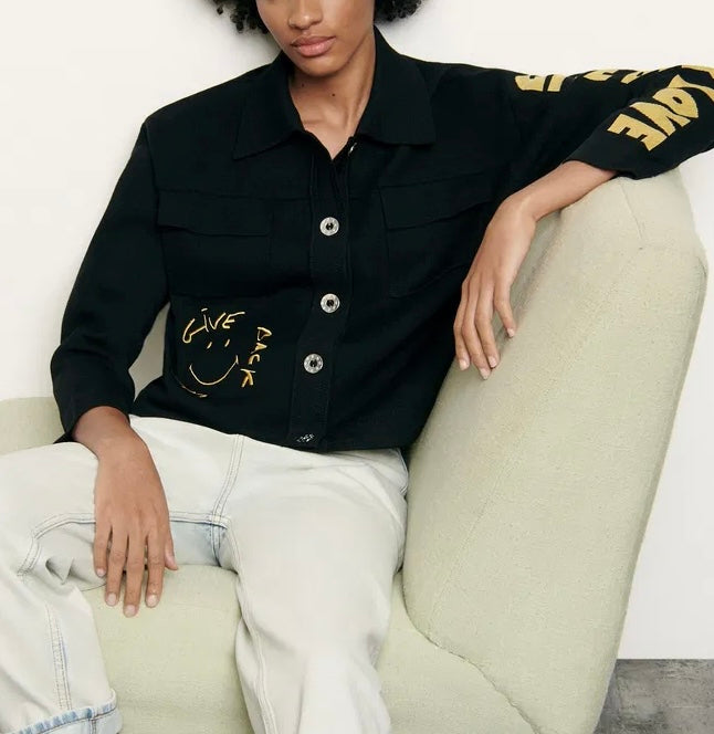 Sandro X Smiley Originals Black Yellow Graphic Button Up Sweater Cardigan