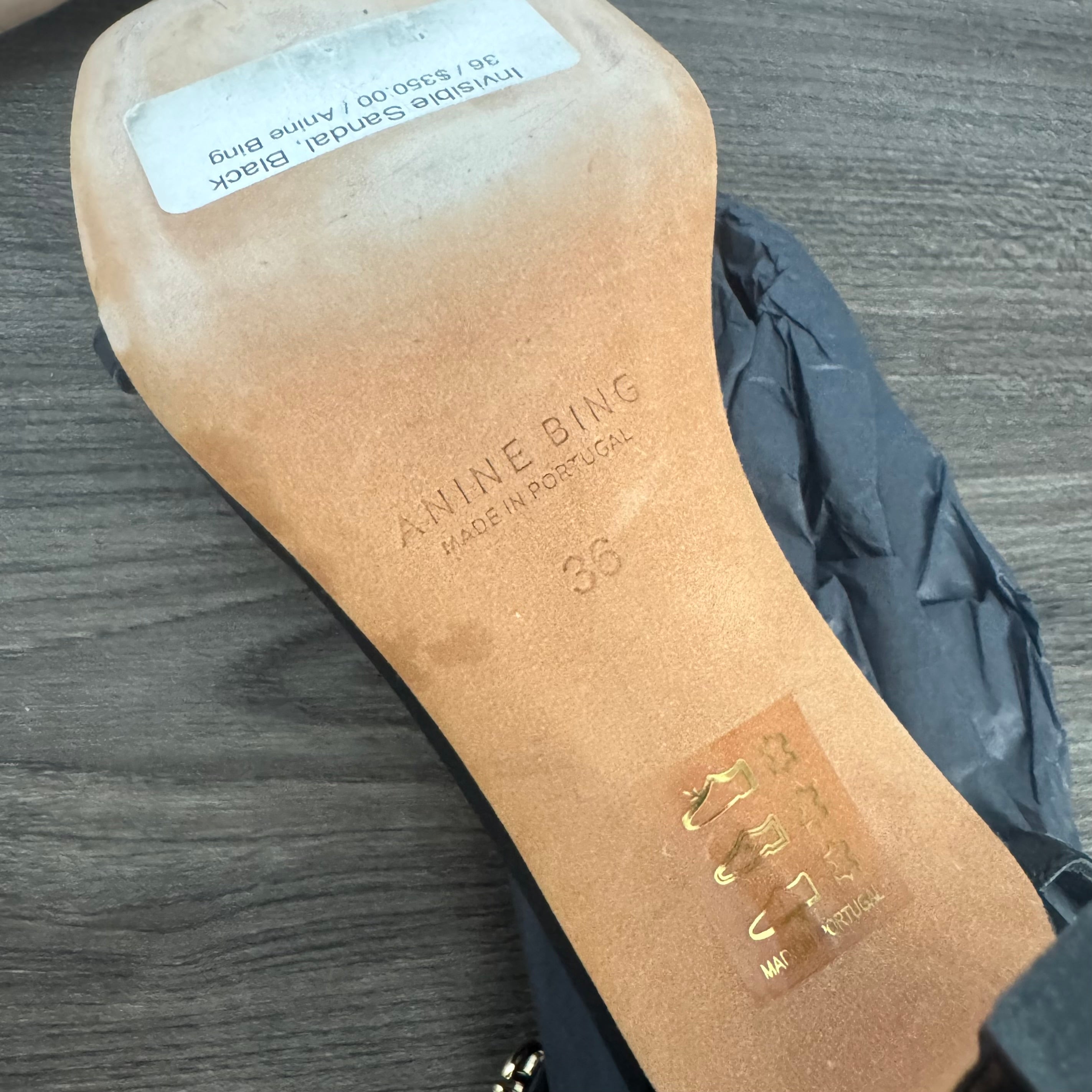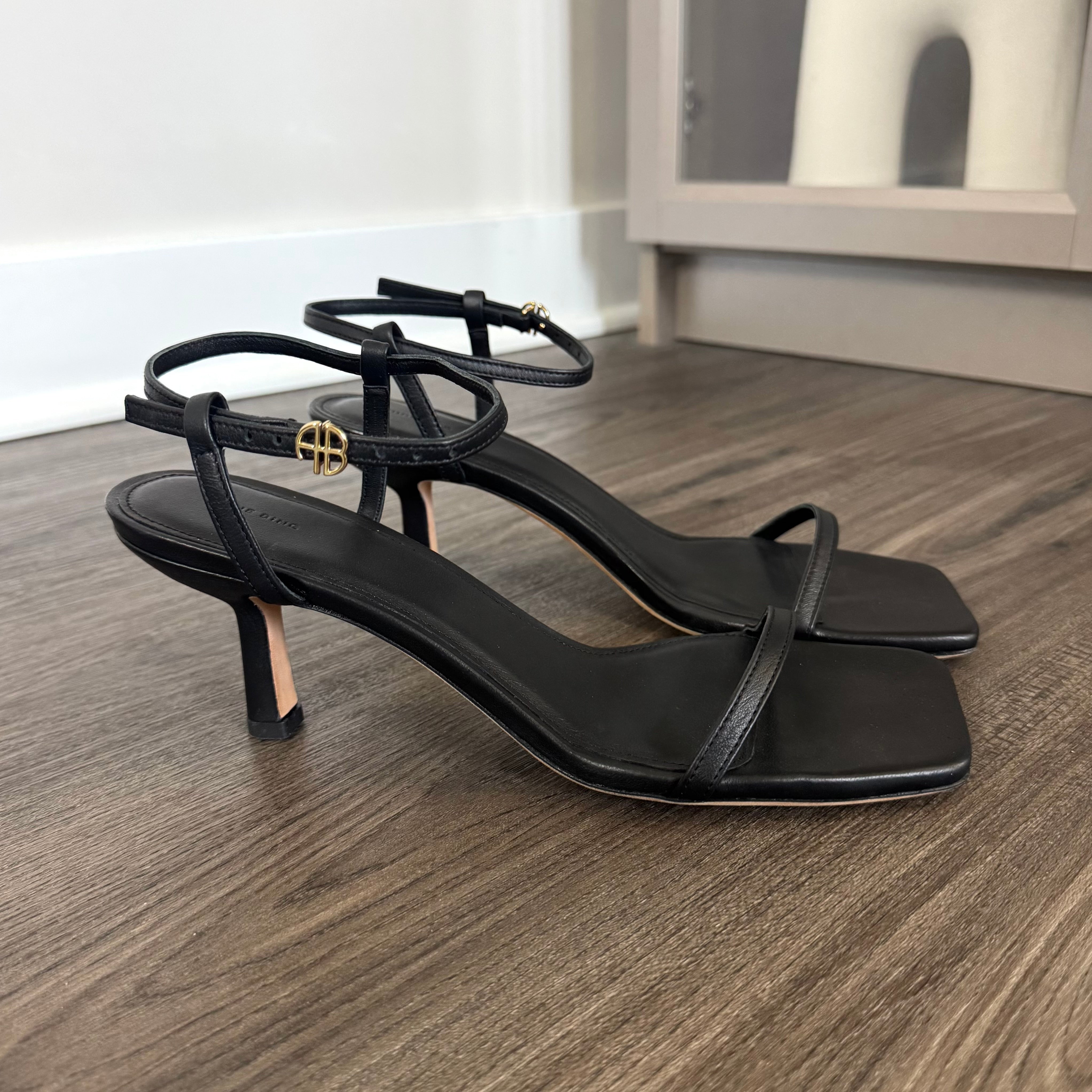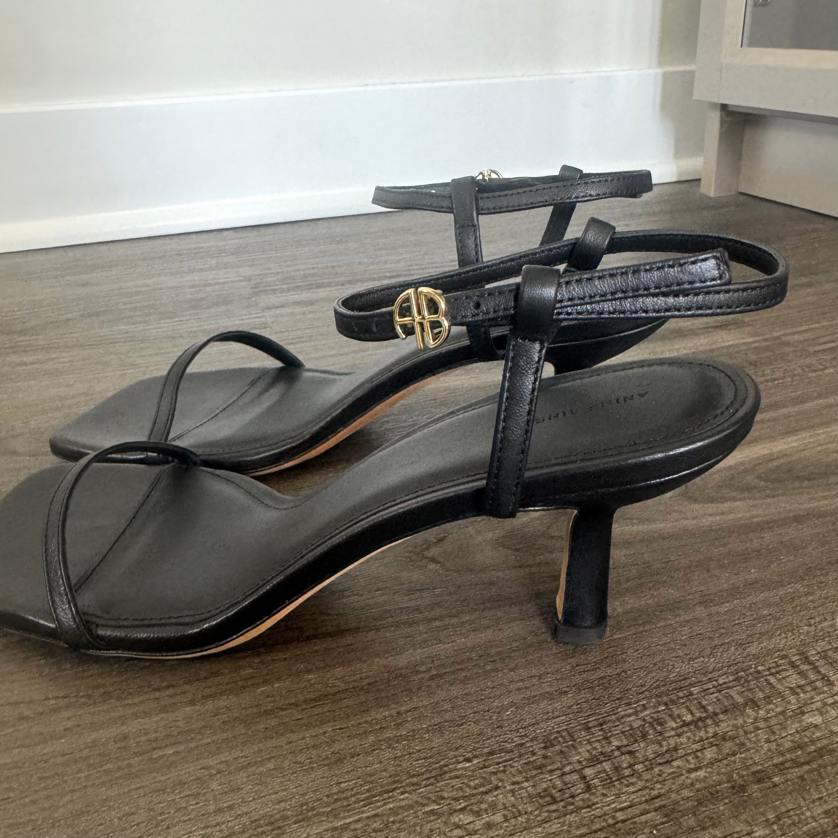 Anine Bing Black Logo Invisible Kitten Heel Sandals