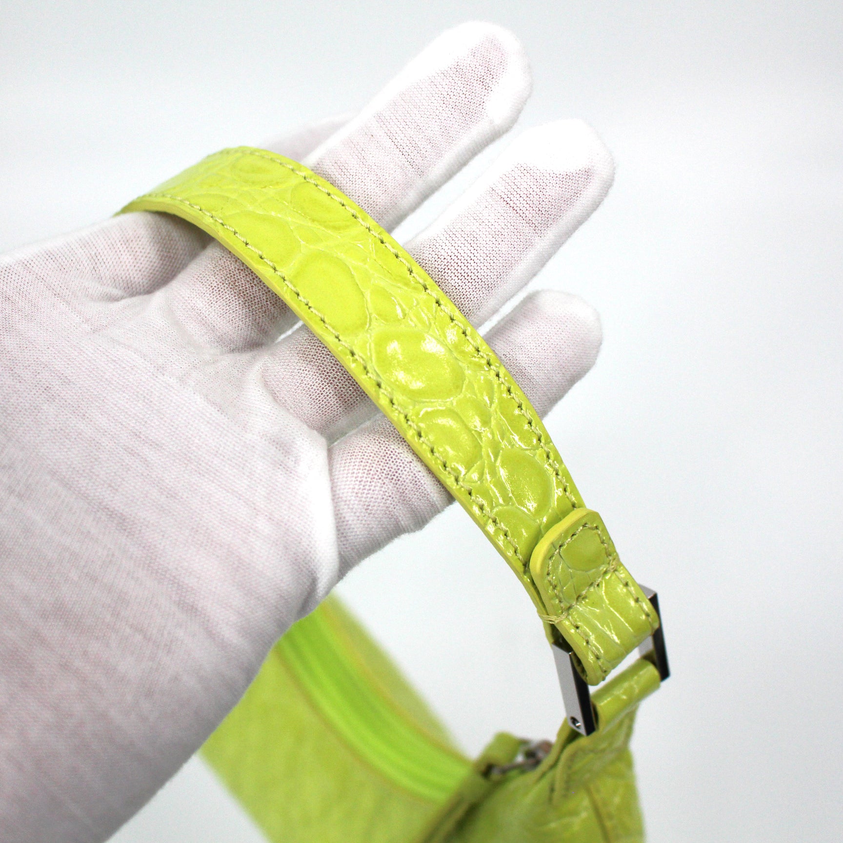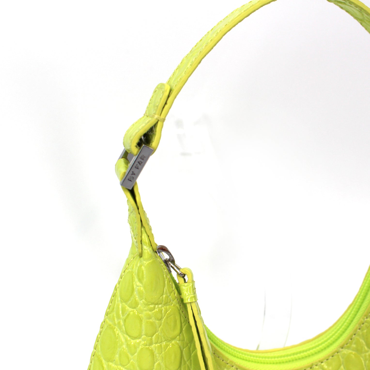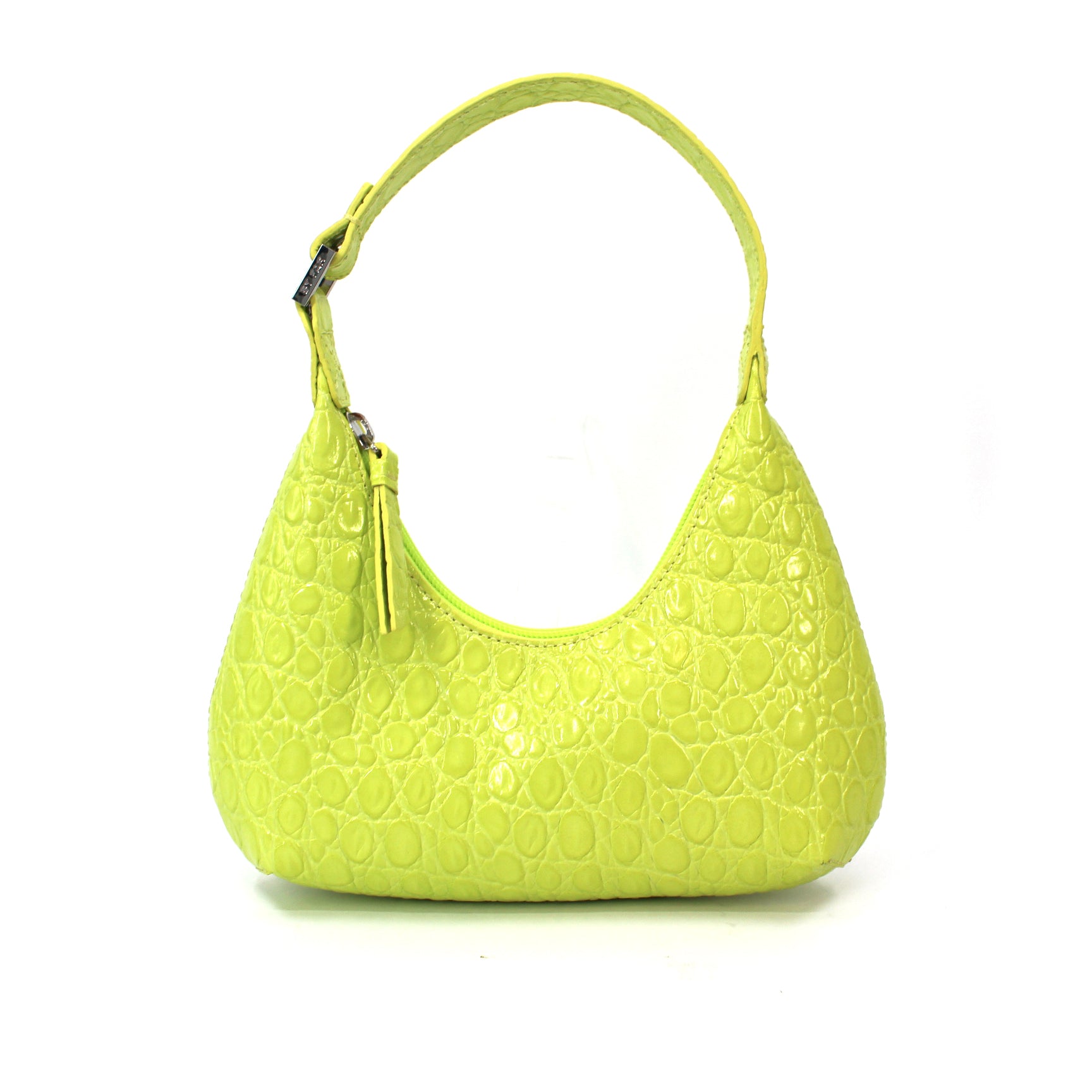 BY FAR Baby Amber Croc Embossed Leather Acid Green Shoulder Bag