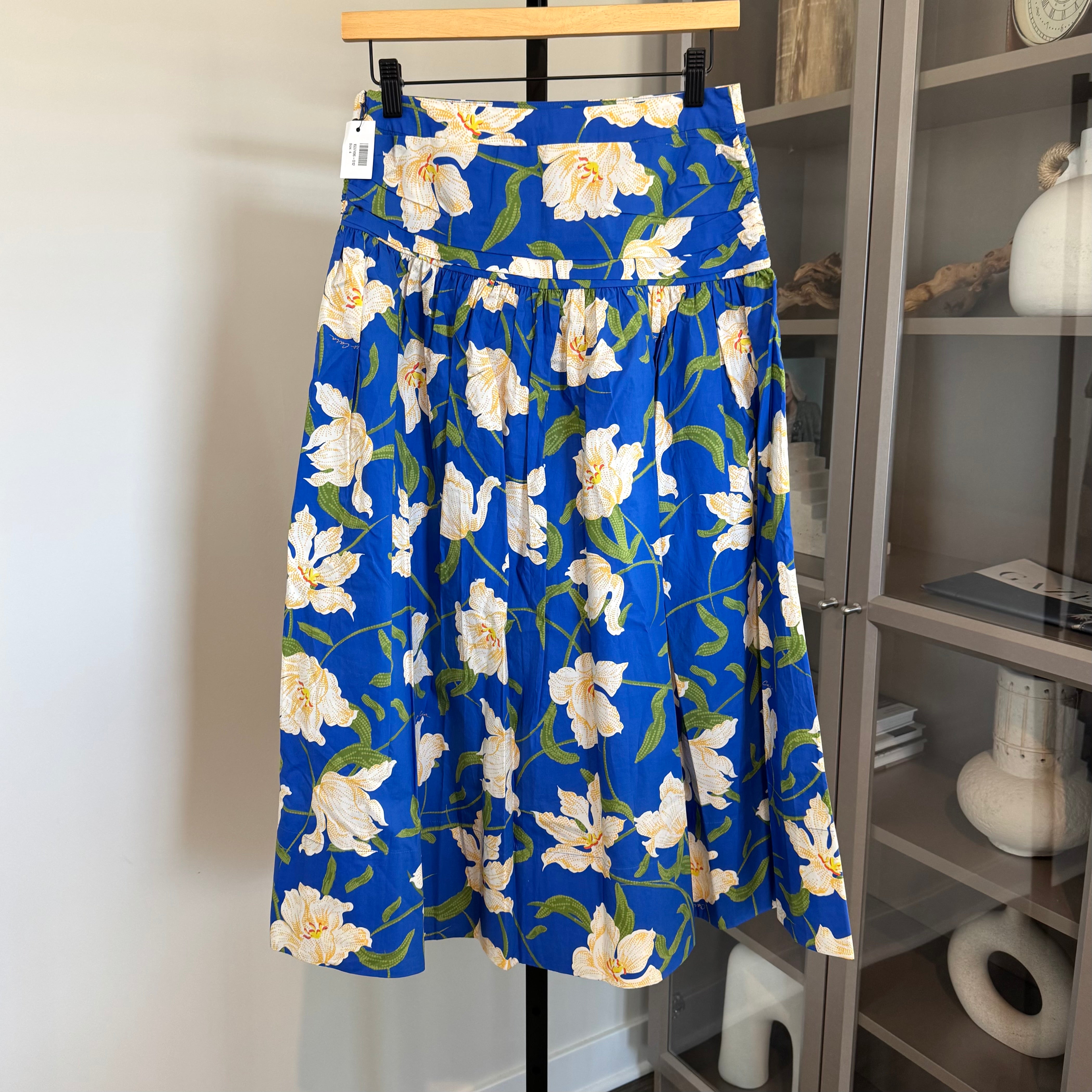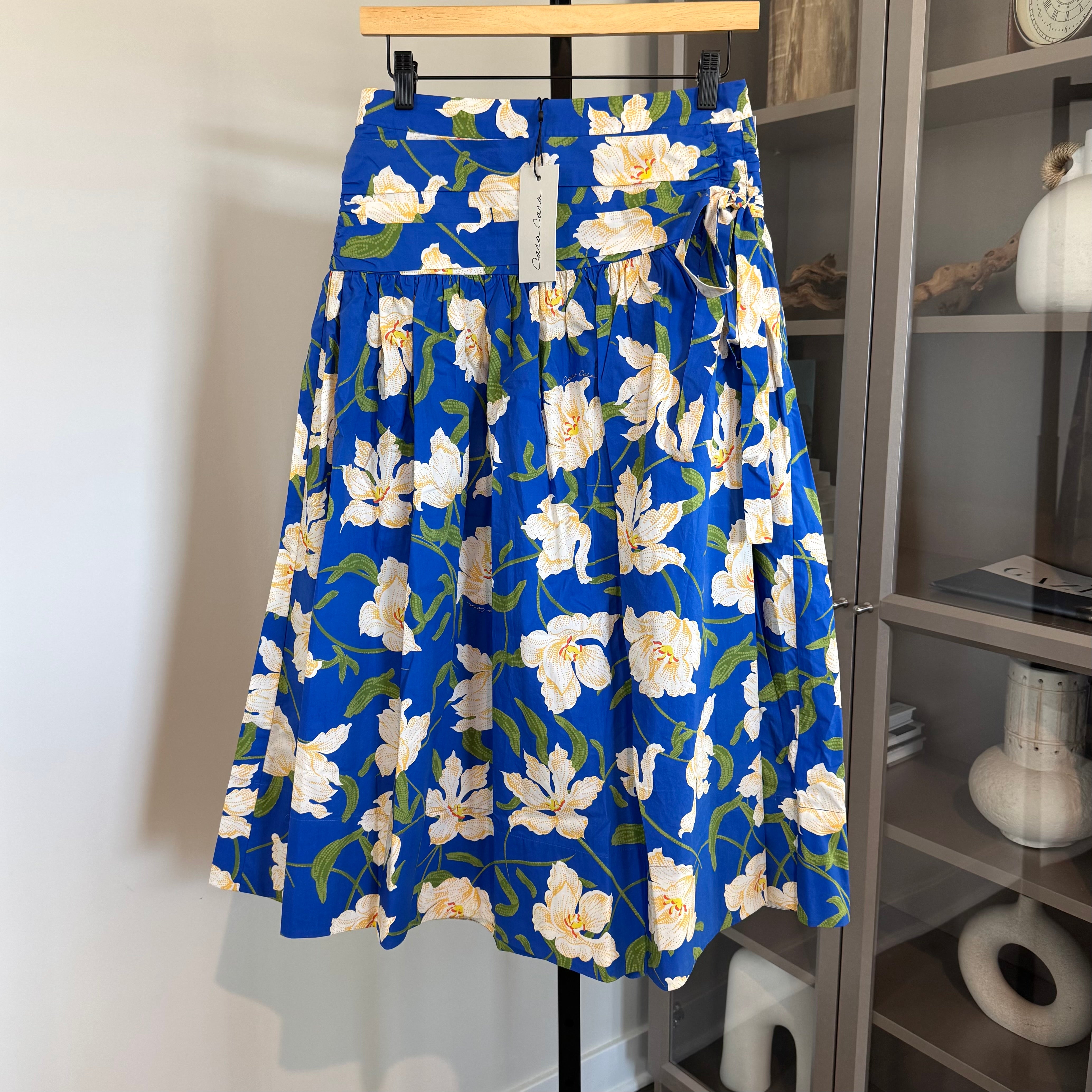 Cara Cara Kayla Blue Holland Tulips Pleated Poplin Midi Skirt