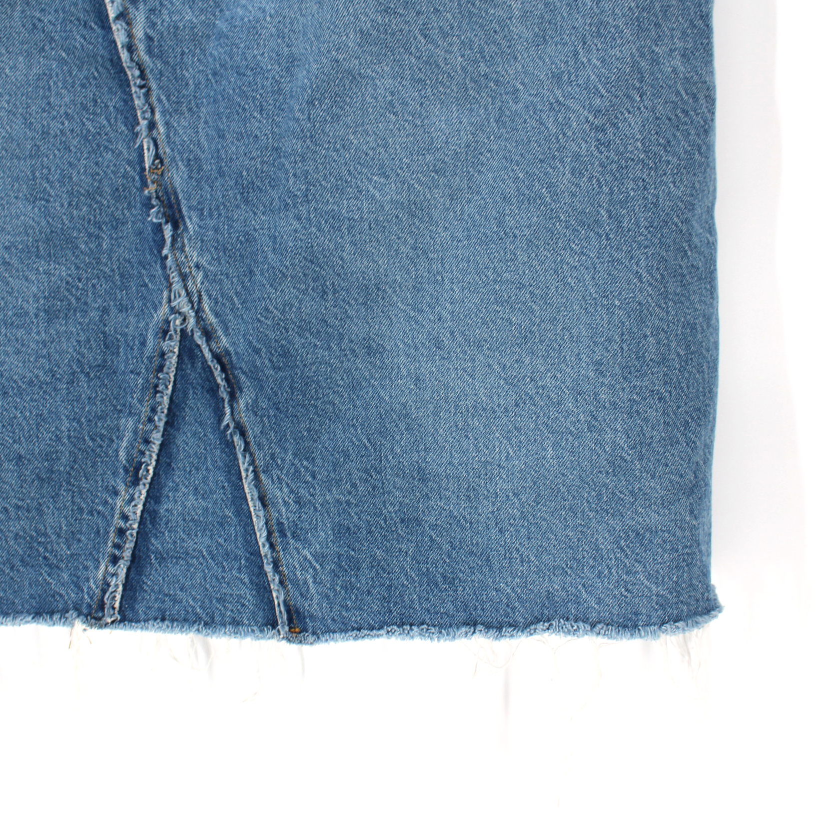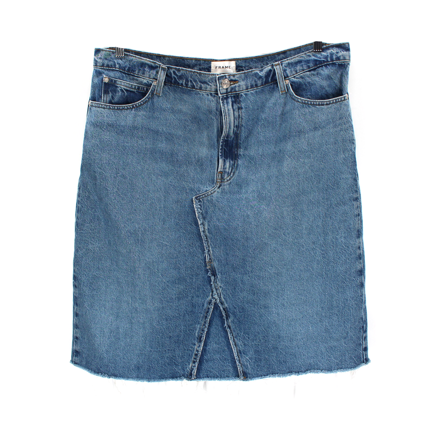 FRAME Mabel Deconstructed Blue Denim Frayed Detail Pencil Skirt