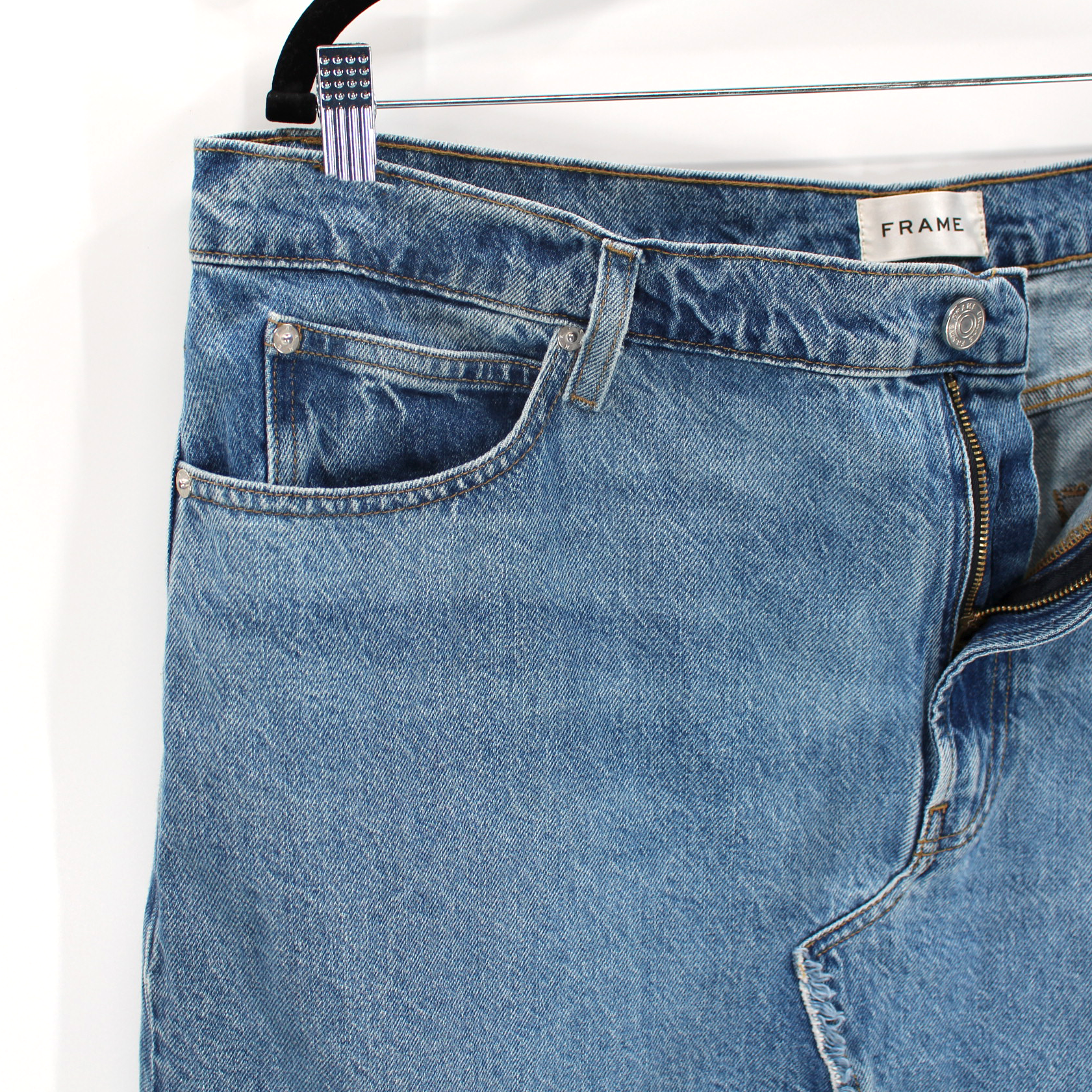 • Frayed angle seams and hemline