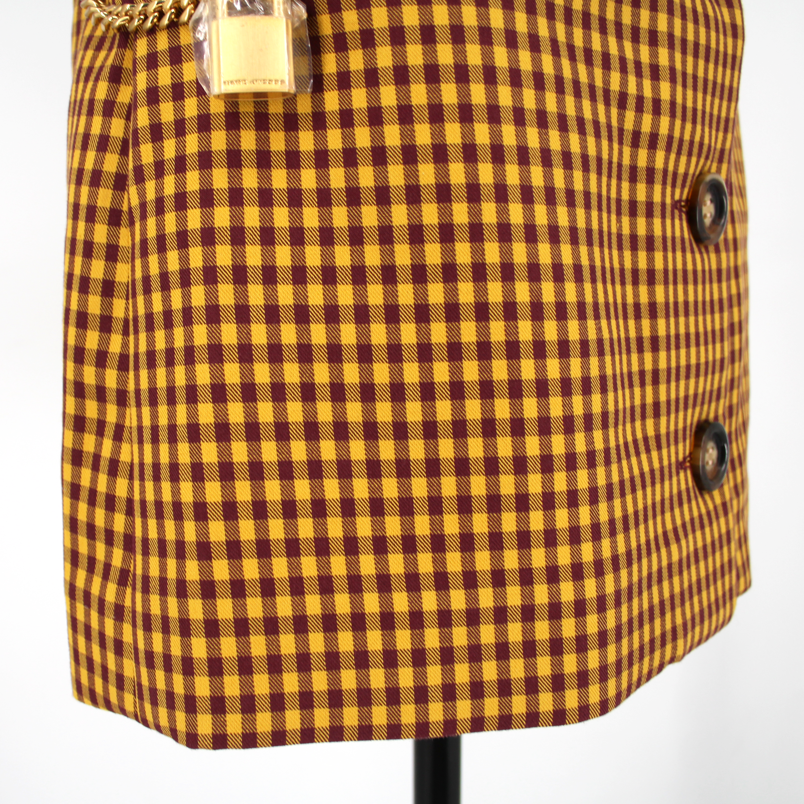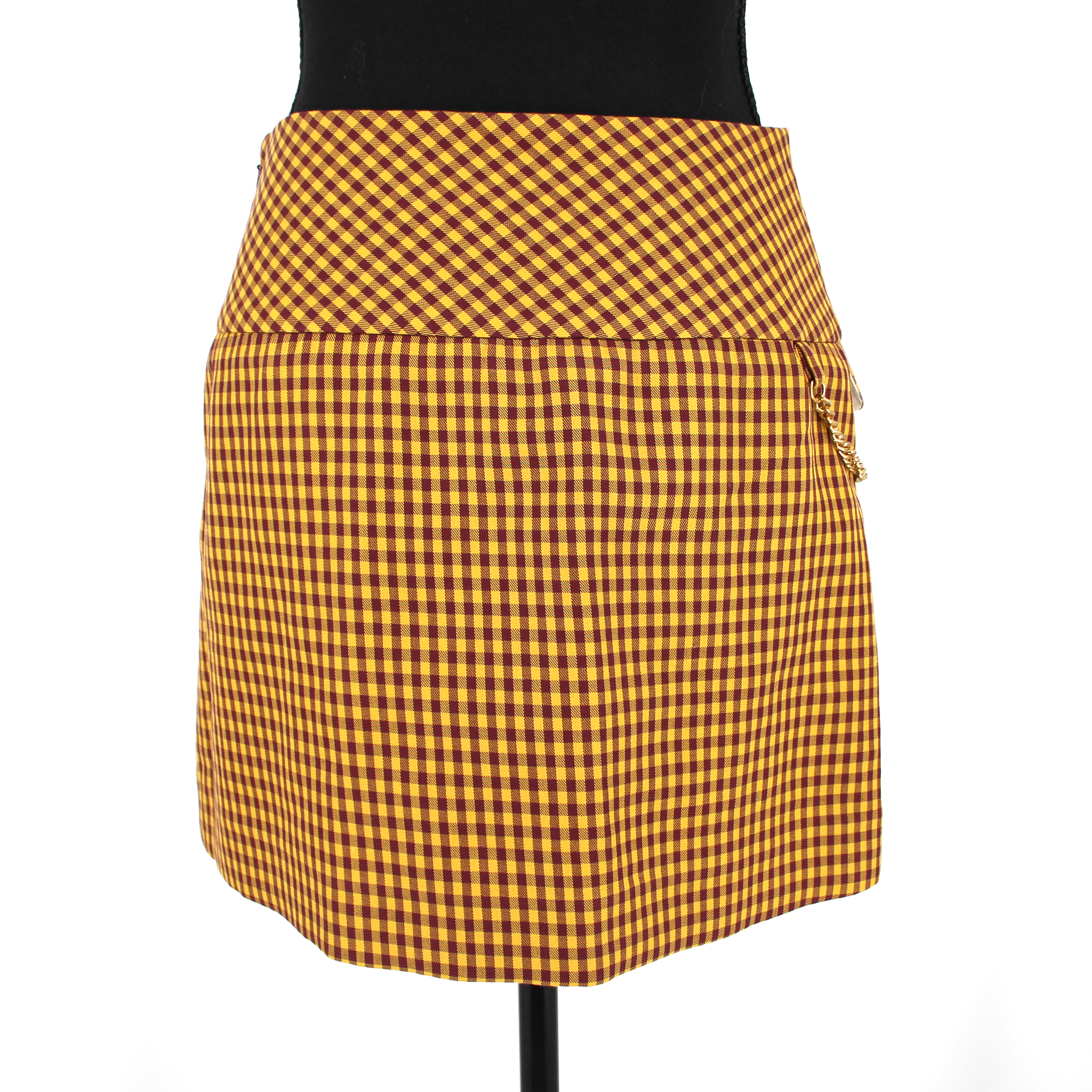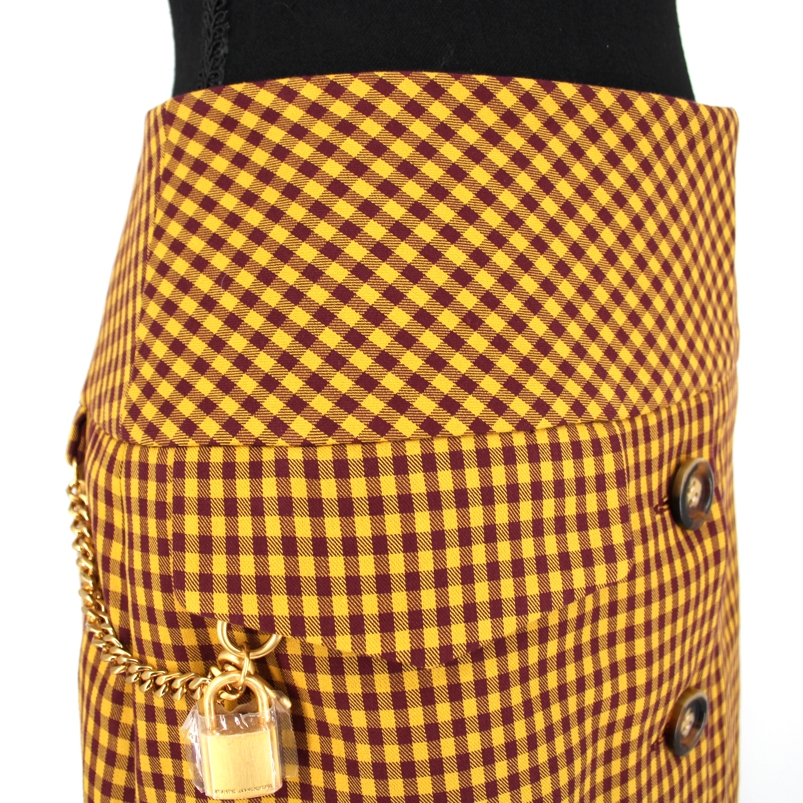 Marc Jacobs Tailored Burgundy Yellow Checked Gold Chain Lock Mini Skirt.