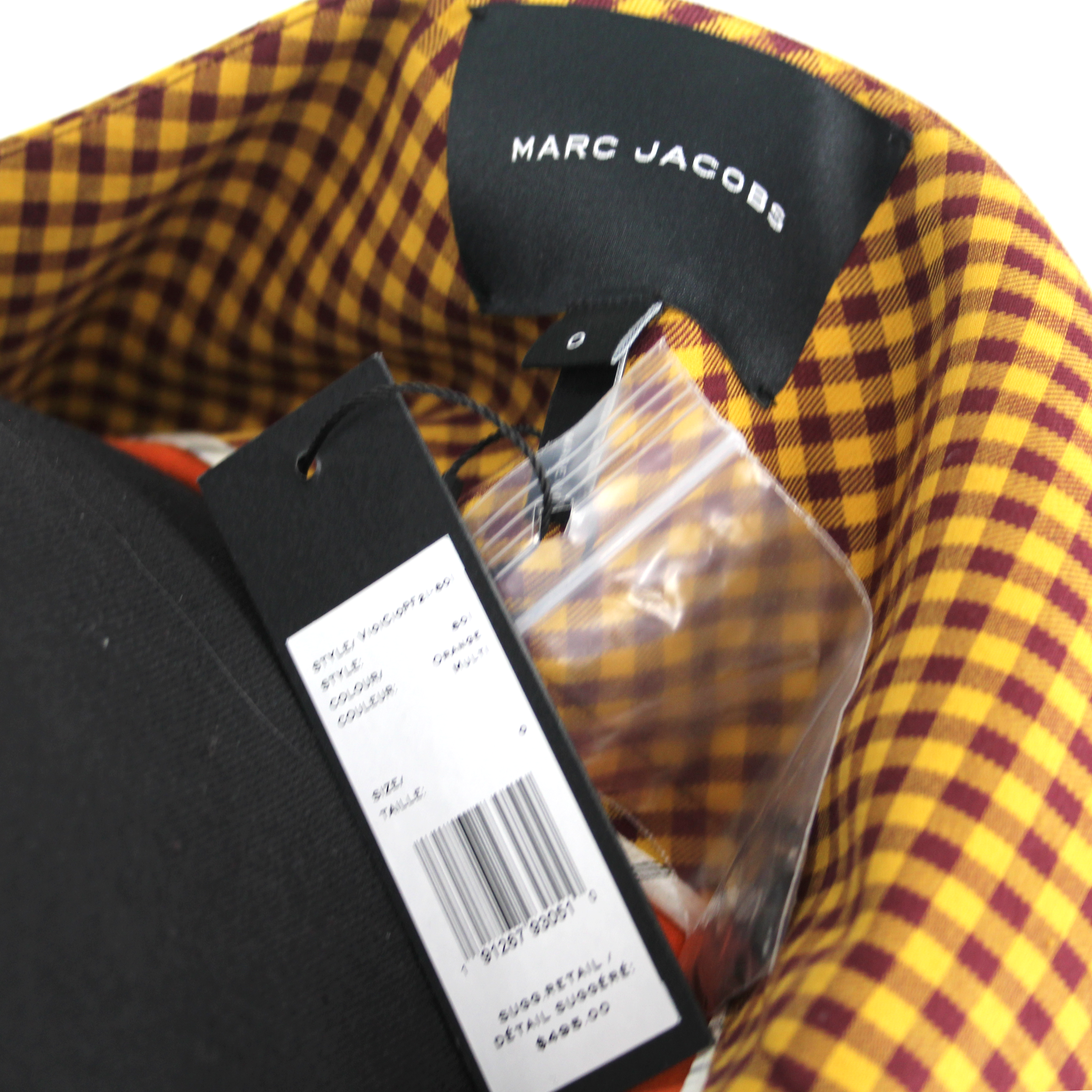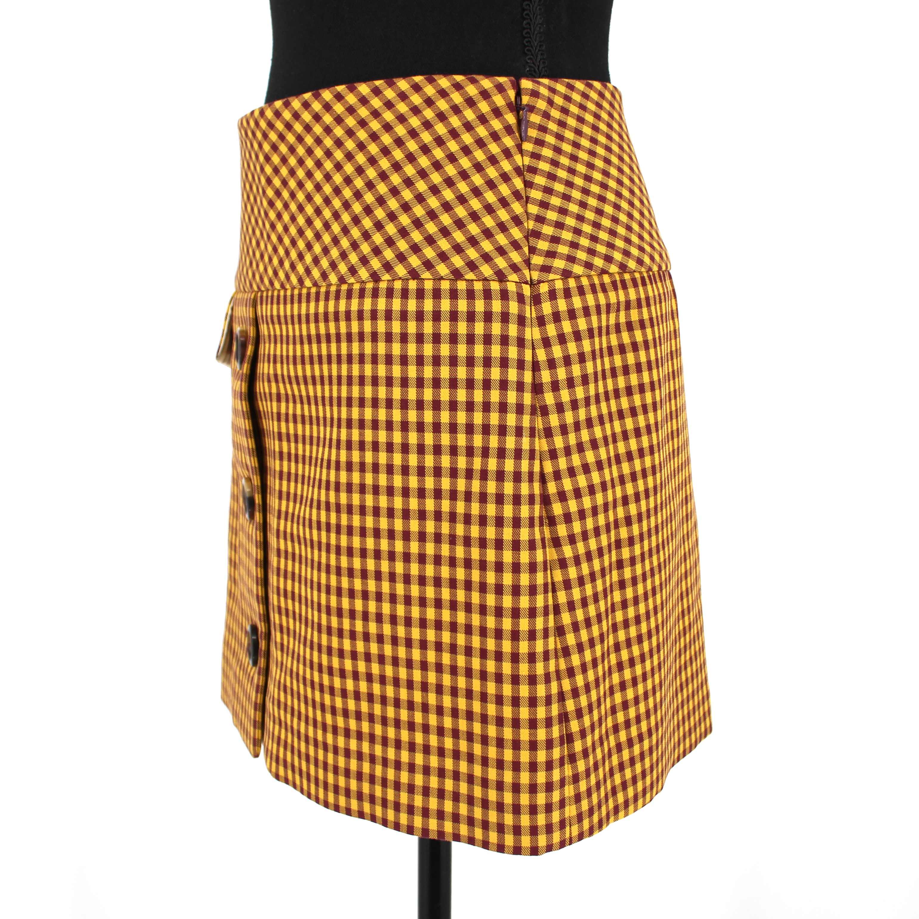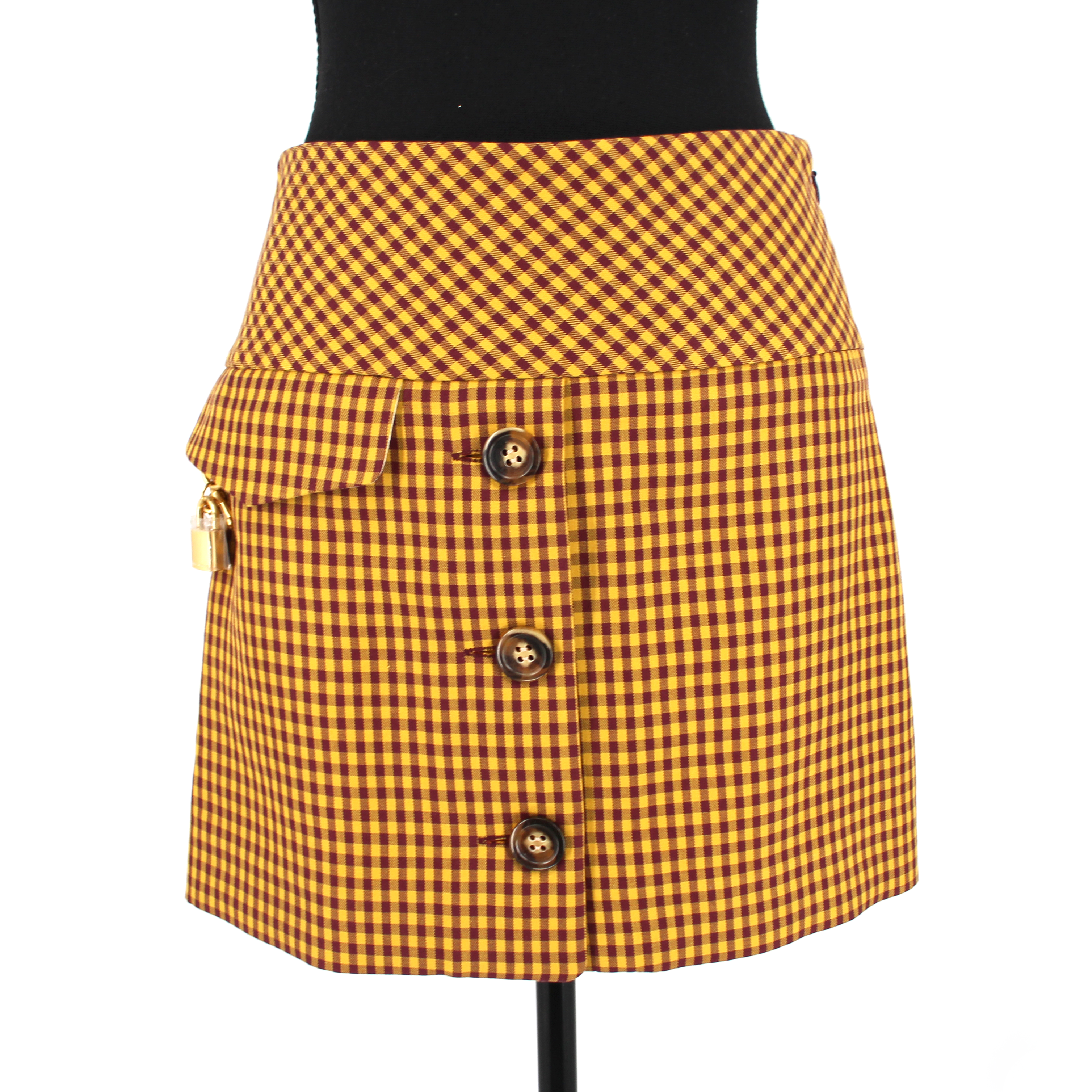 Marc Jacobs Tailored Burgundy Yellow Checked Gold Chain Lock Mini Skirt.