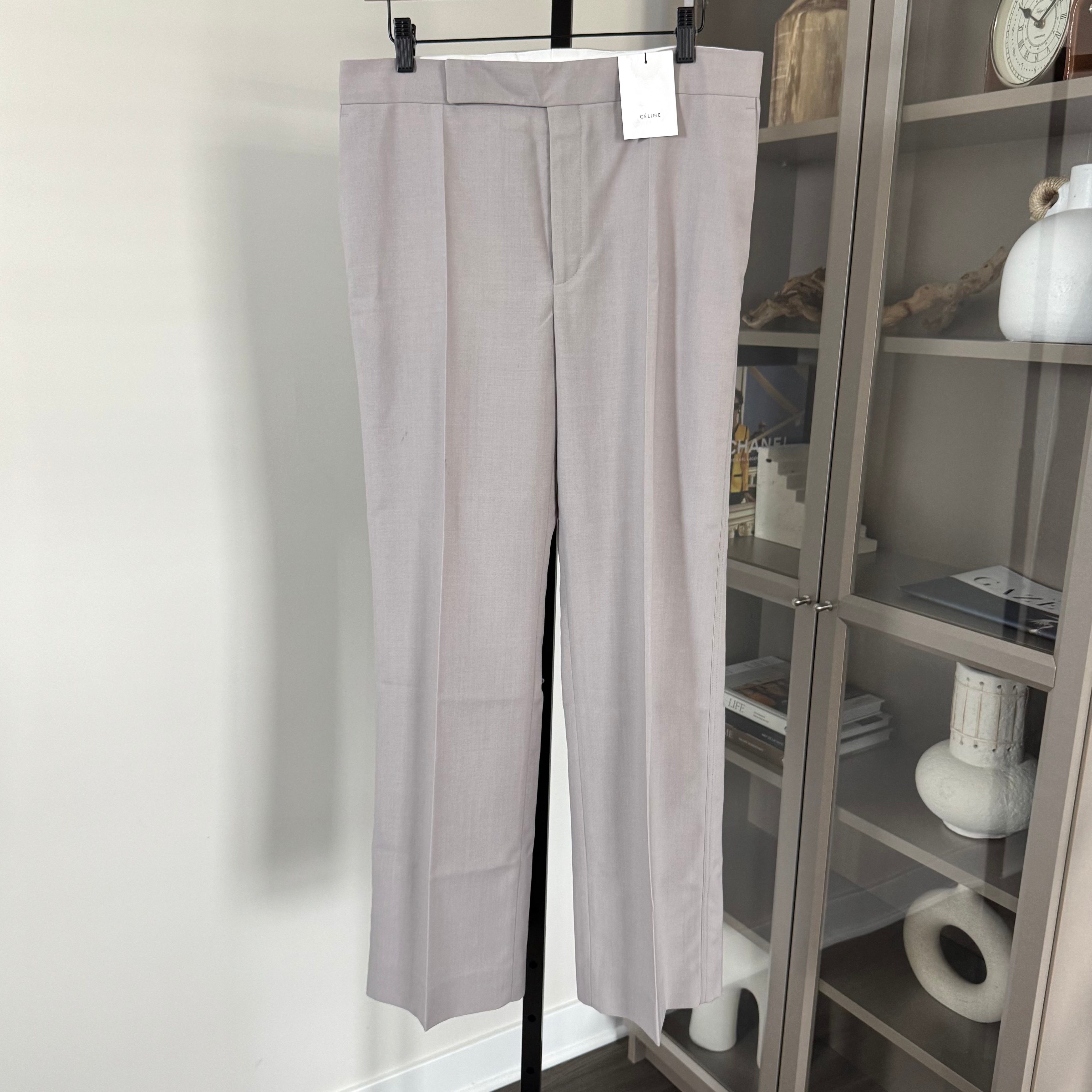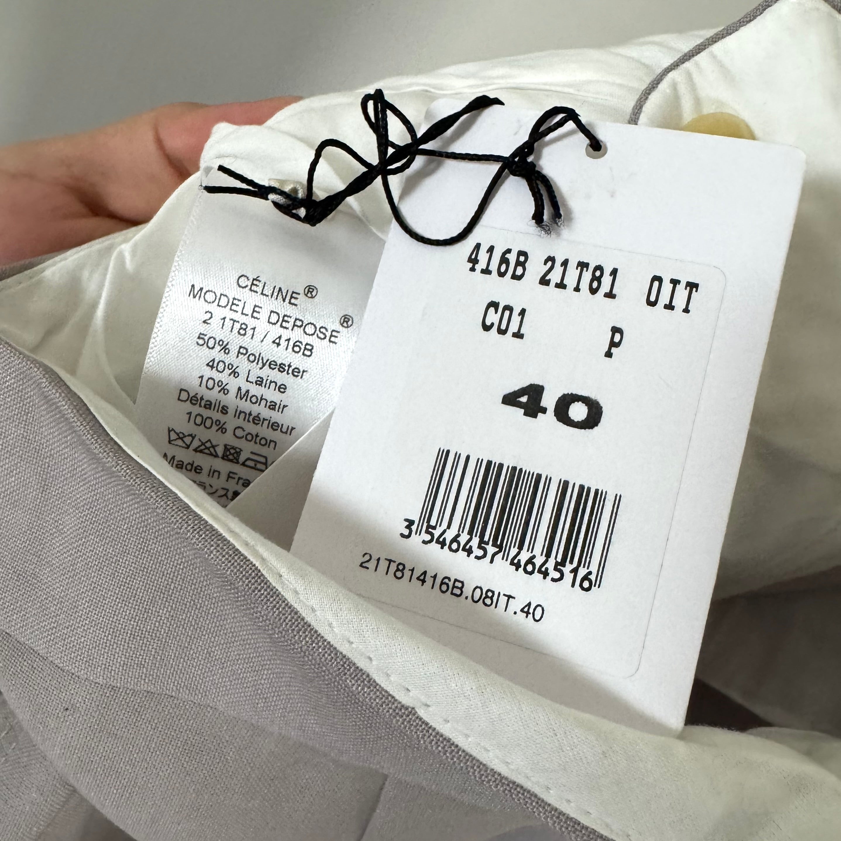 Celine Beige Polyester Wool Mohair Blend Pleated Straight Leg Trousers