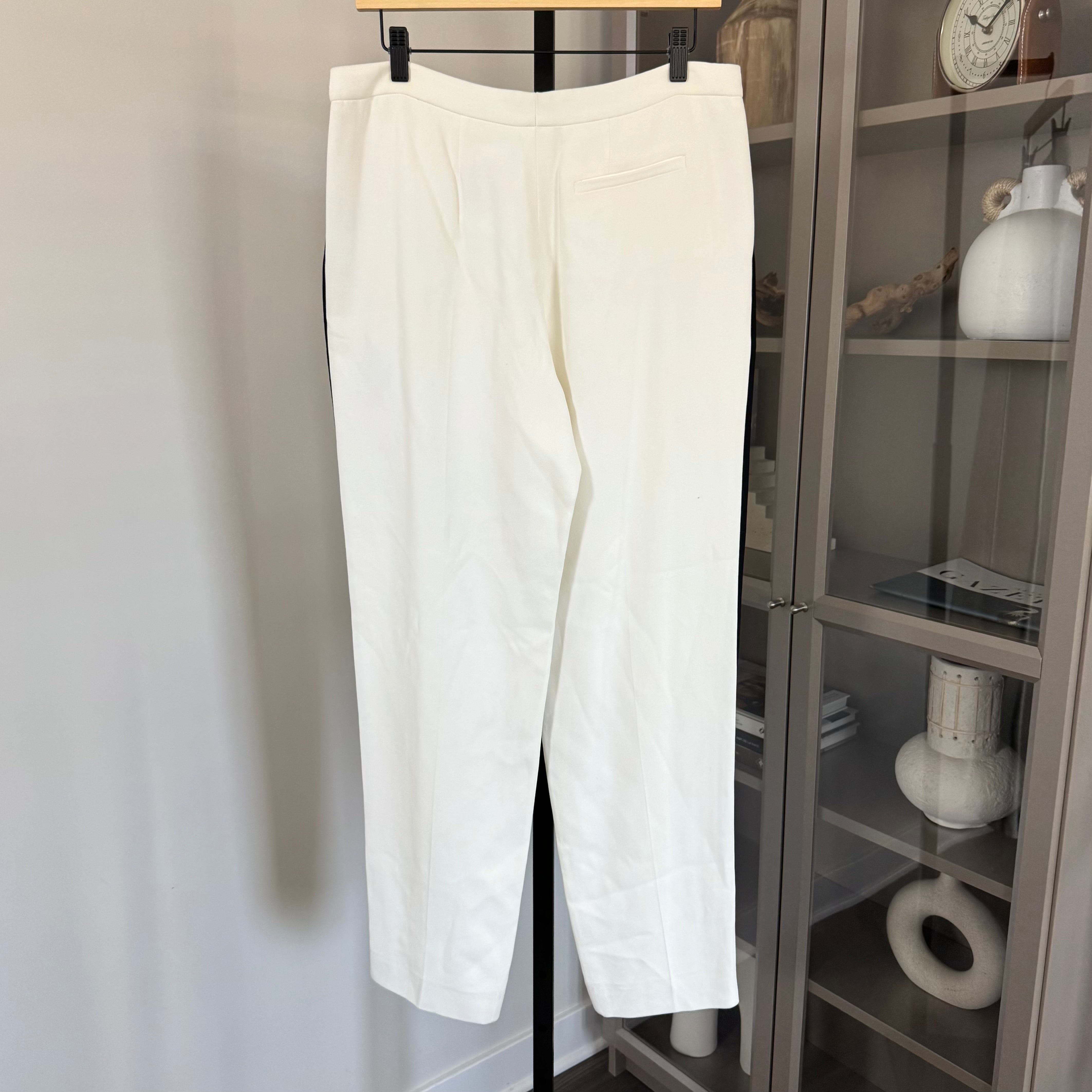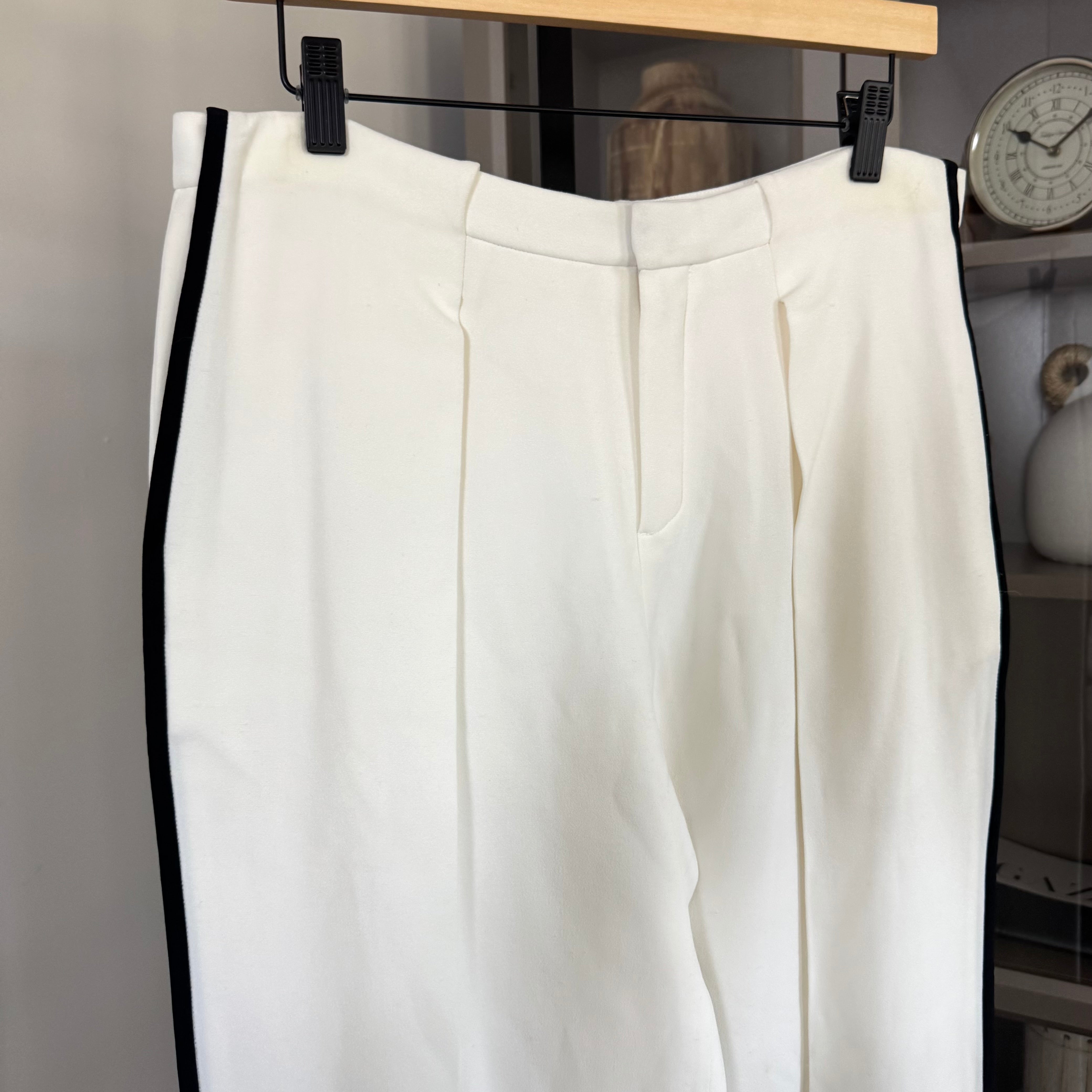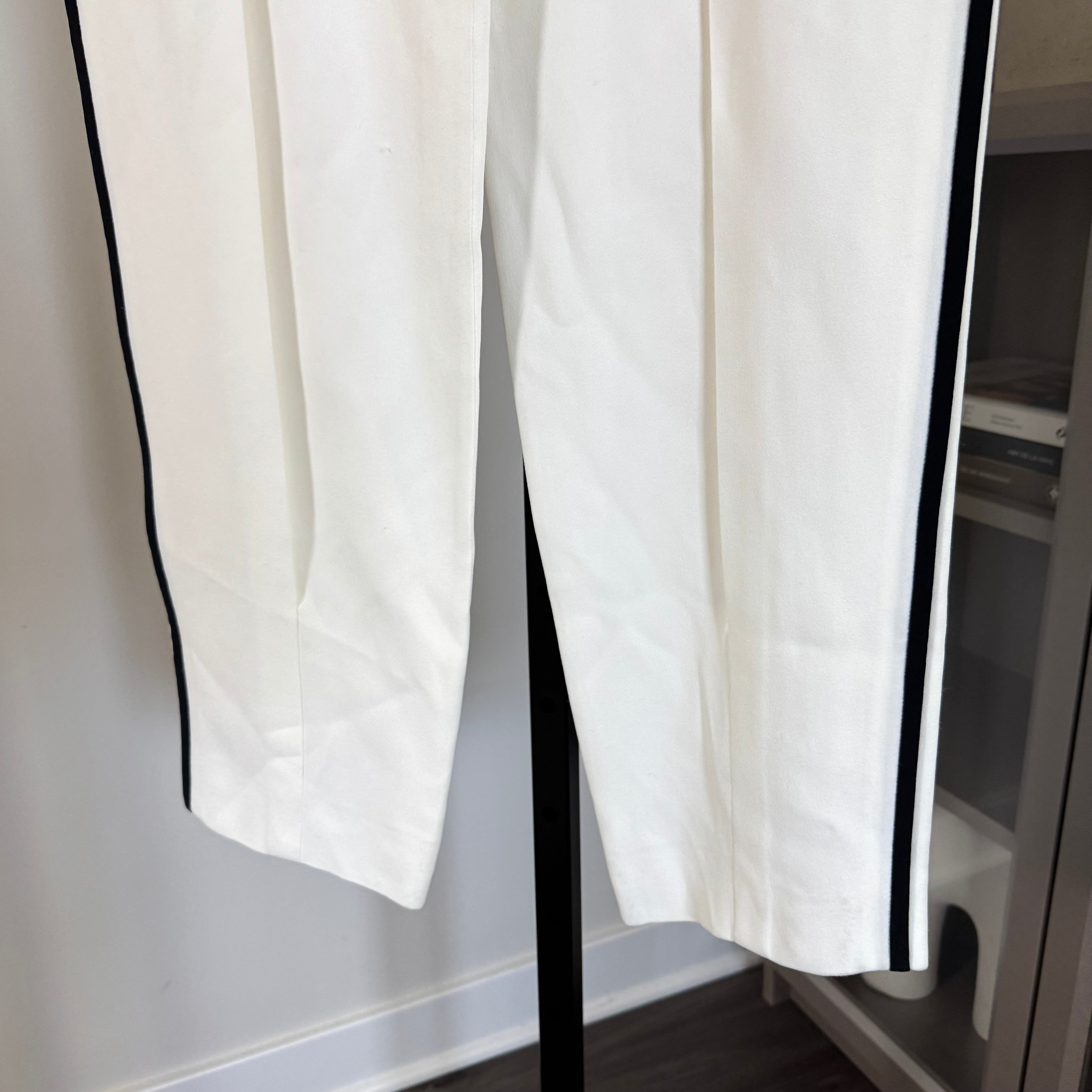 Chloe Milk White Black Trim High Waisted Pleated Tapered Leg Trouser Pants
