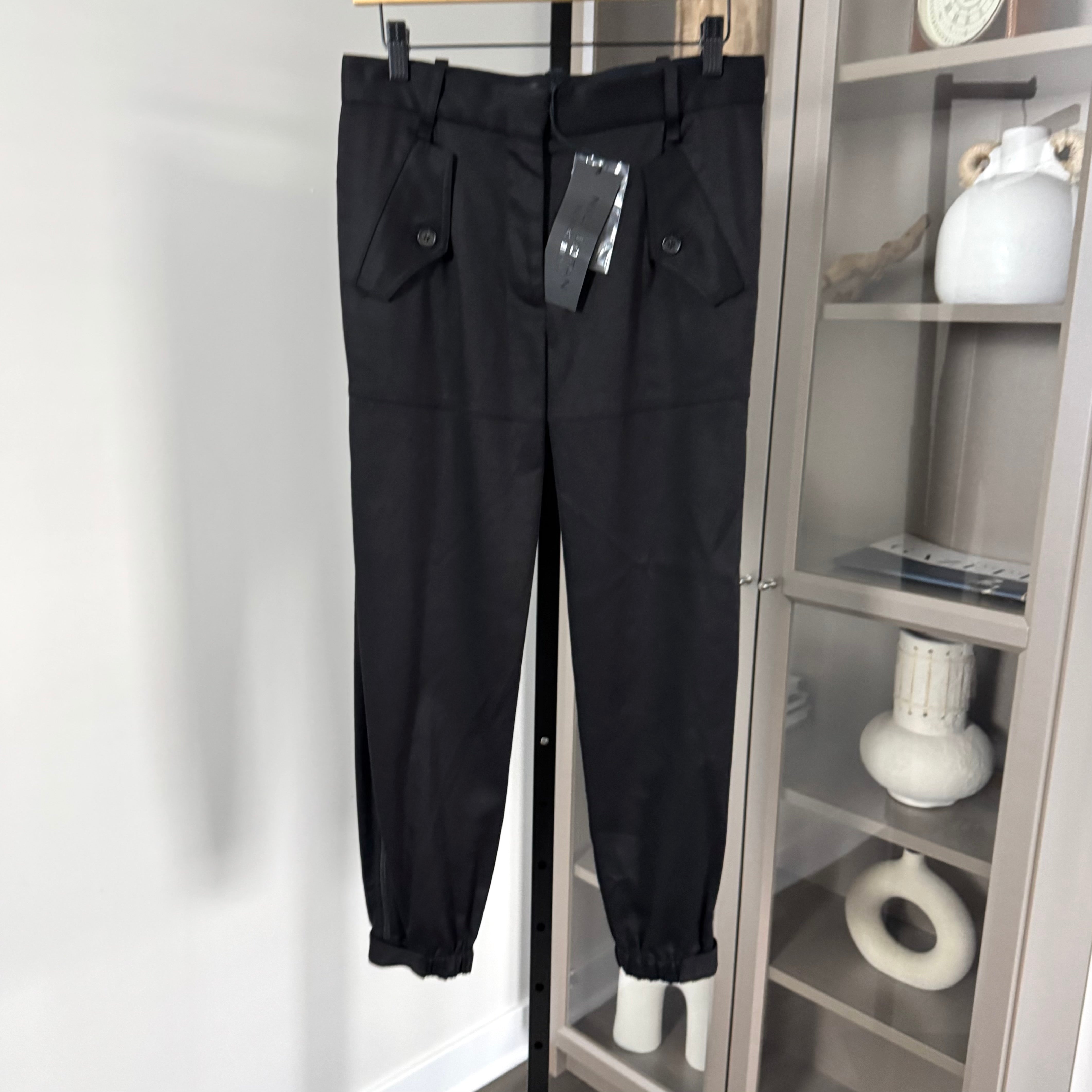 Nili Lotan Arliss Black Twill High Rise Zipper Snap Ankle Pants
