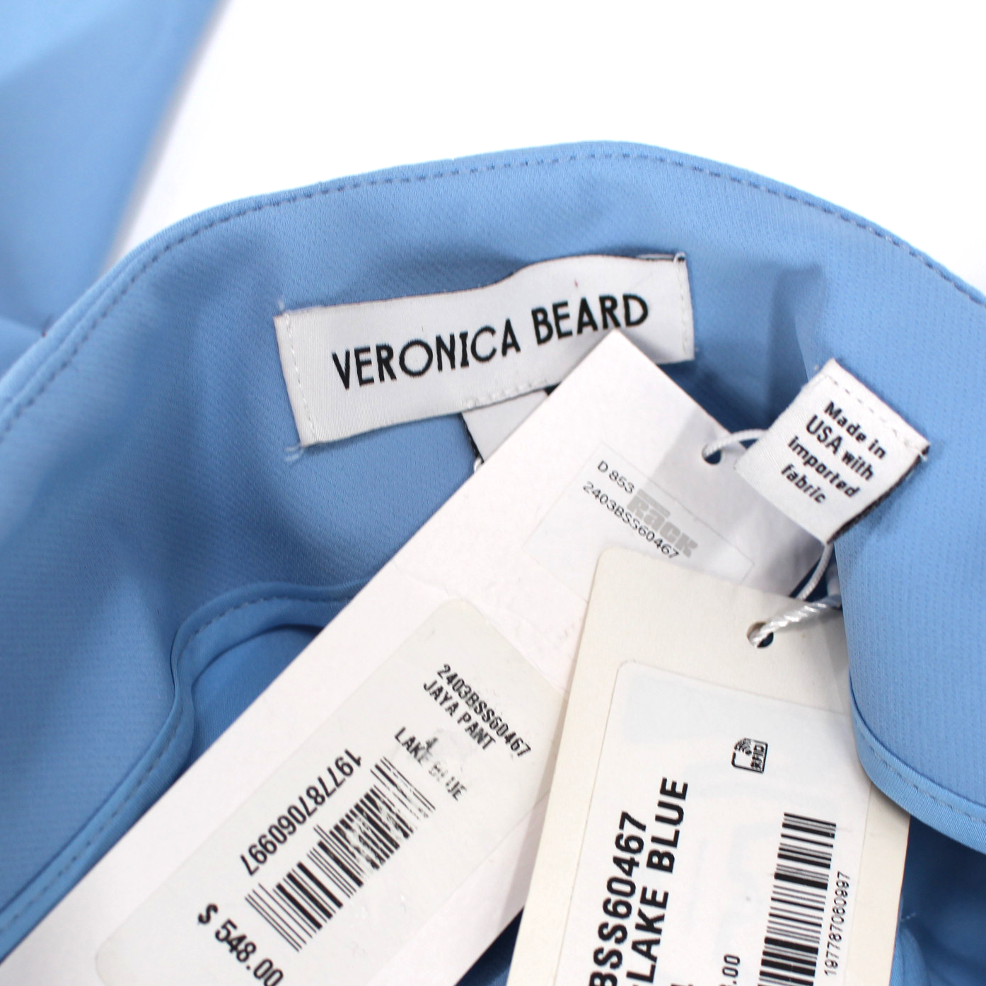 Veronica Beard Jaya Lake Blue Pintuck Stretch Crop Trouser Pants