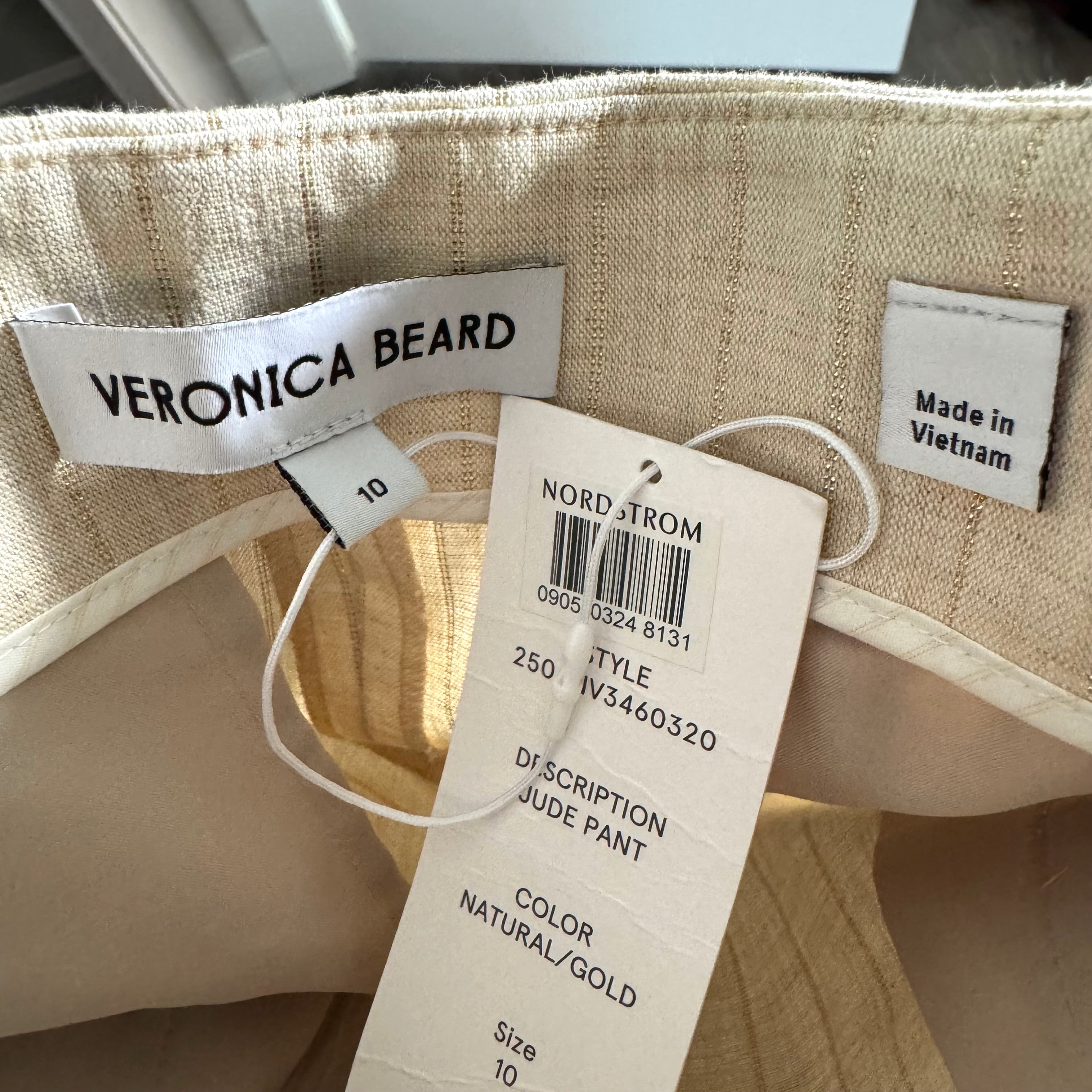 Veronica Beard Jude Natural Gold Metallic Pinstripe Straight Leg Pants