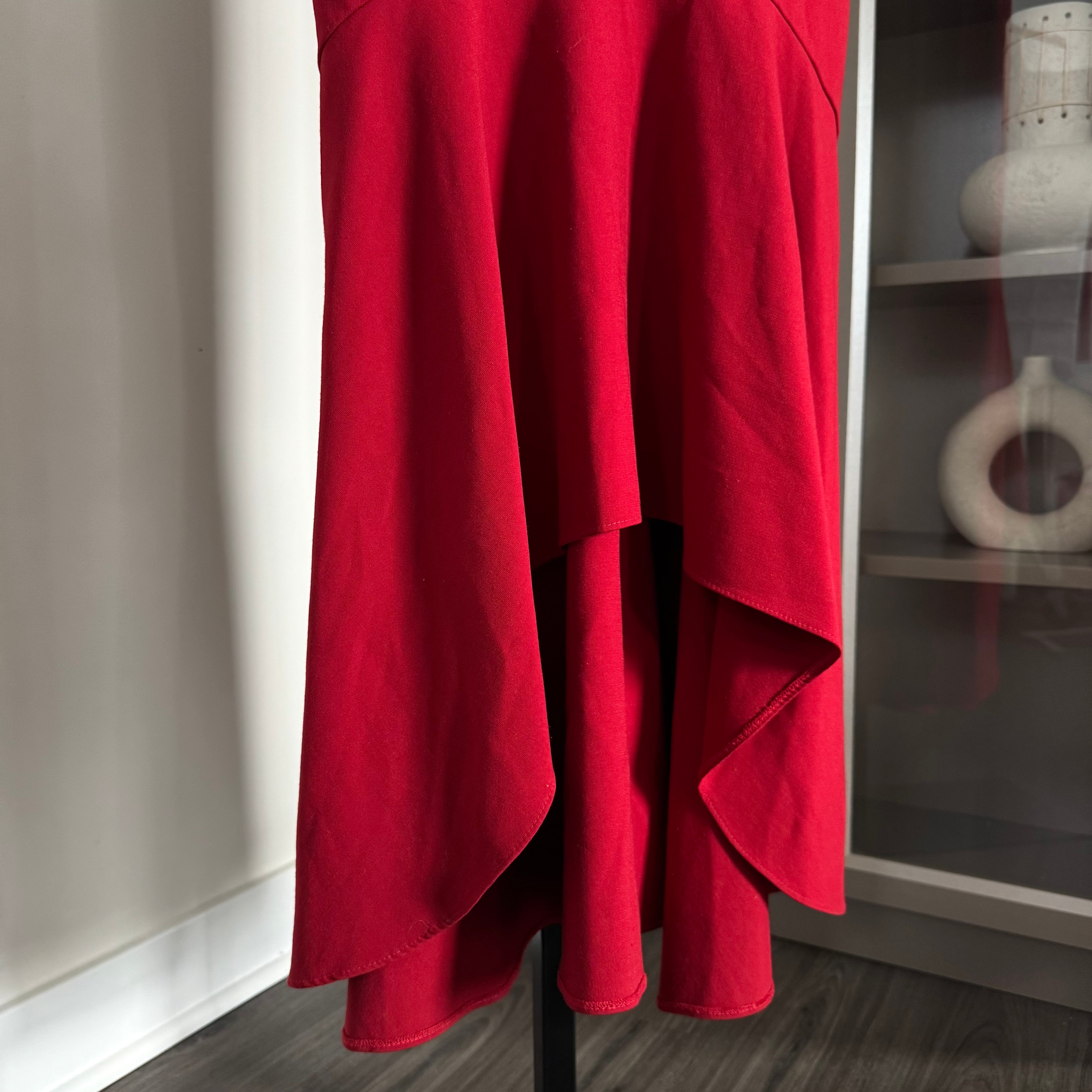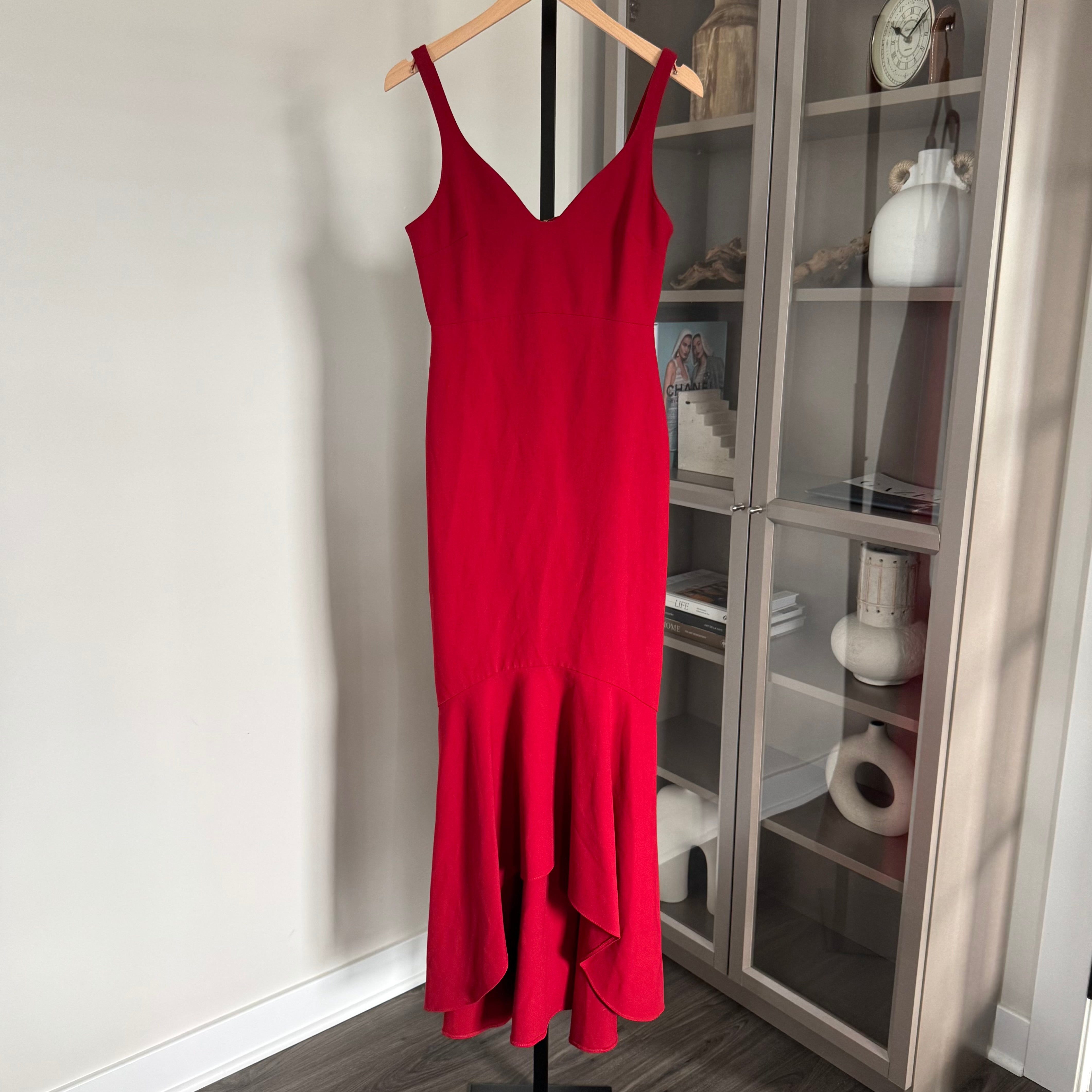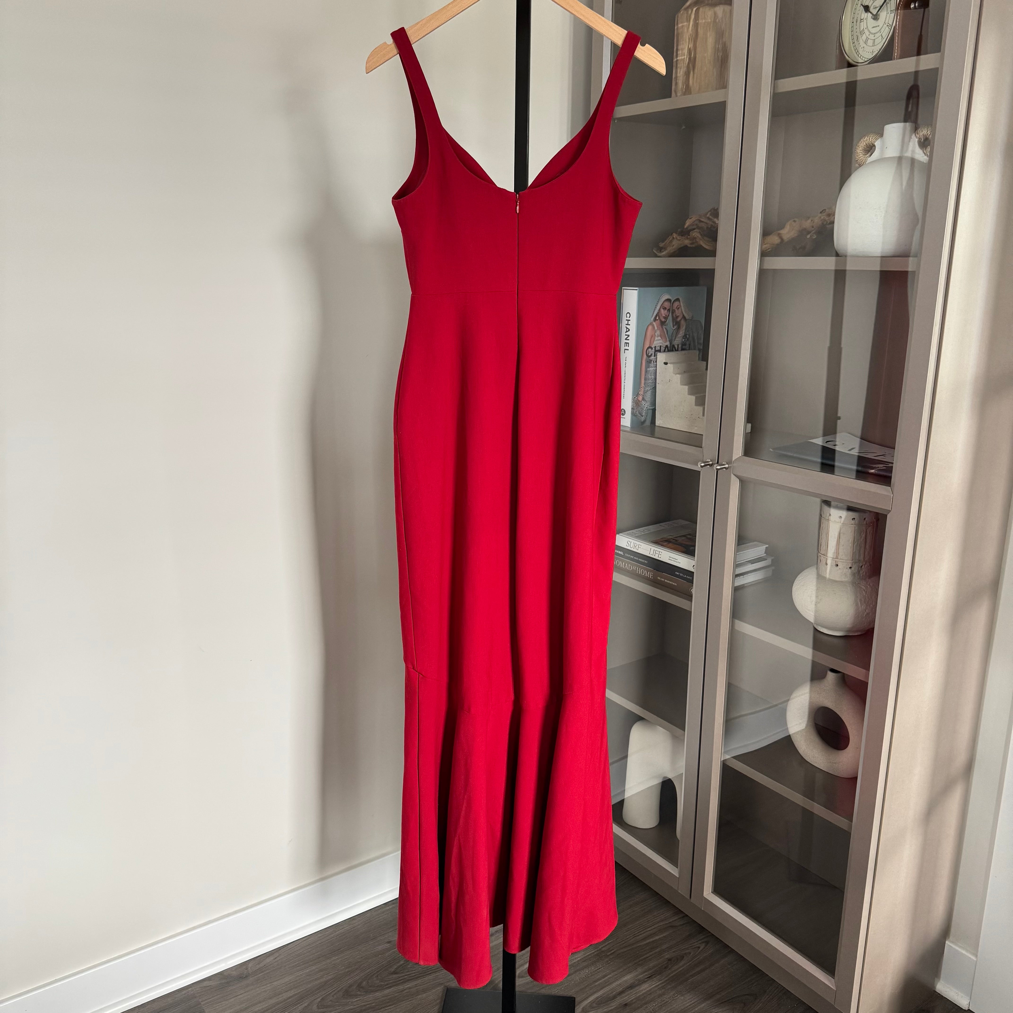 Cinq A Sept Sade Red Sleeveless Stretch Crepe Ruffle Hemline Maxi Gown