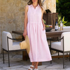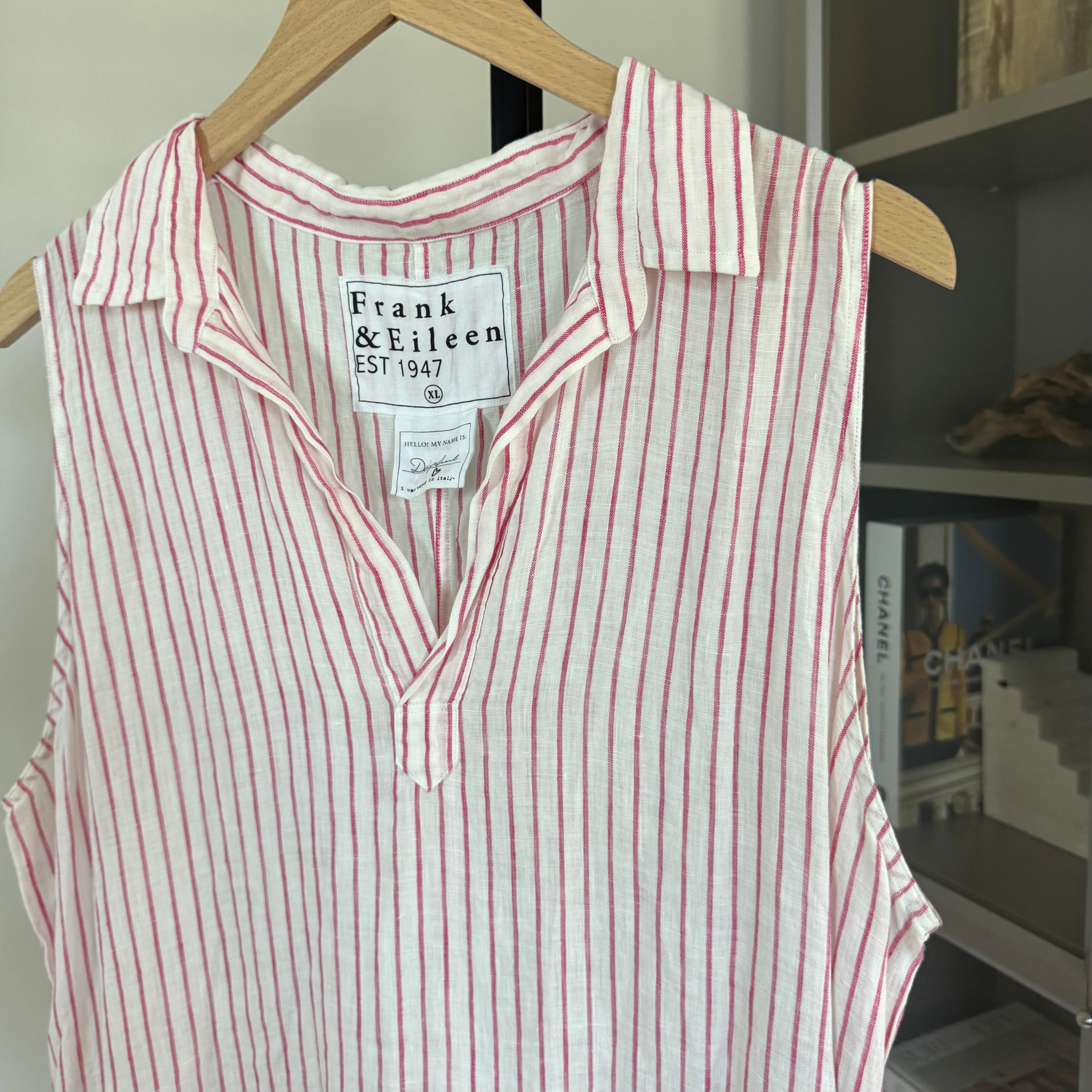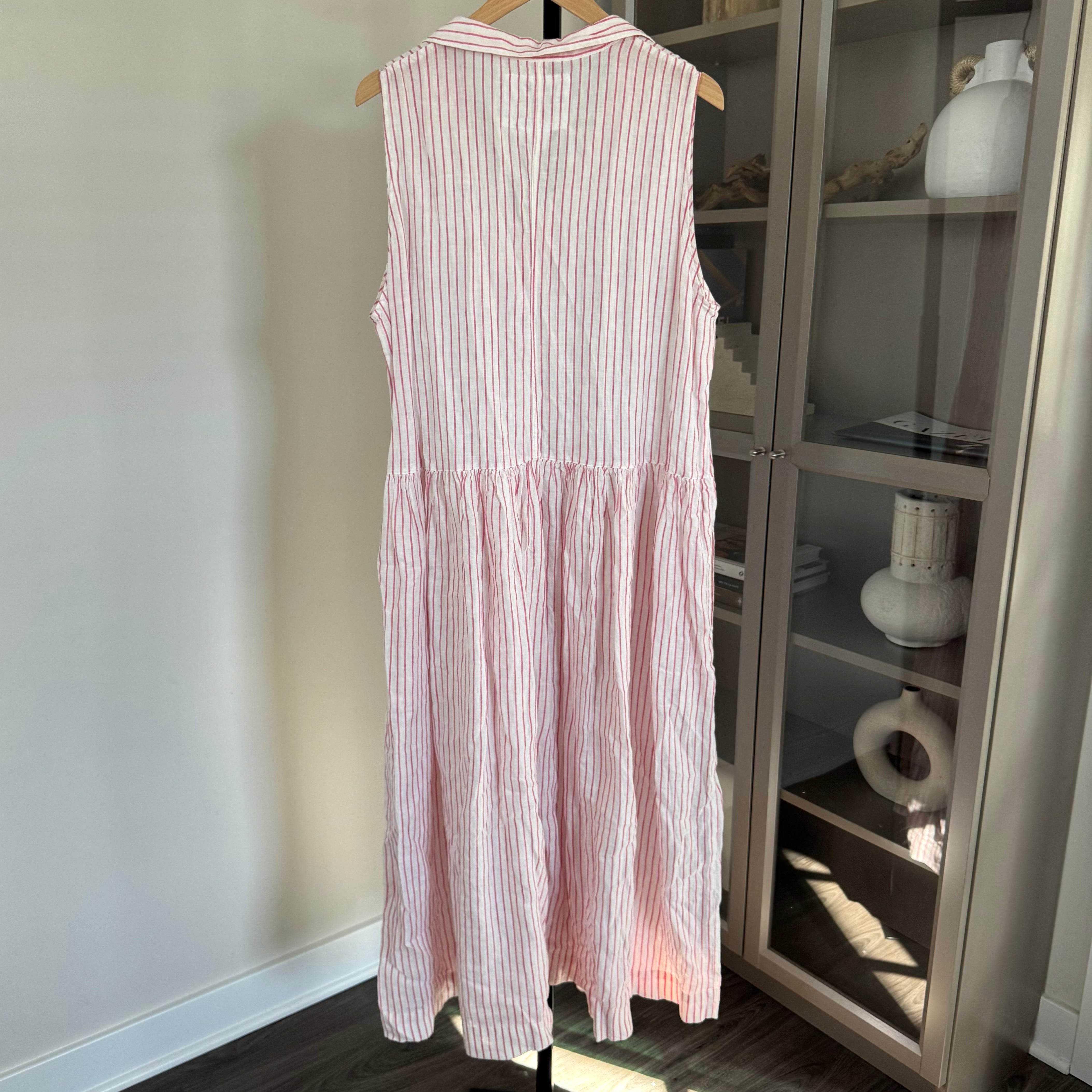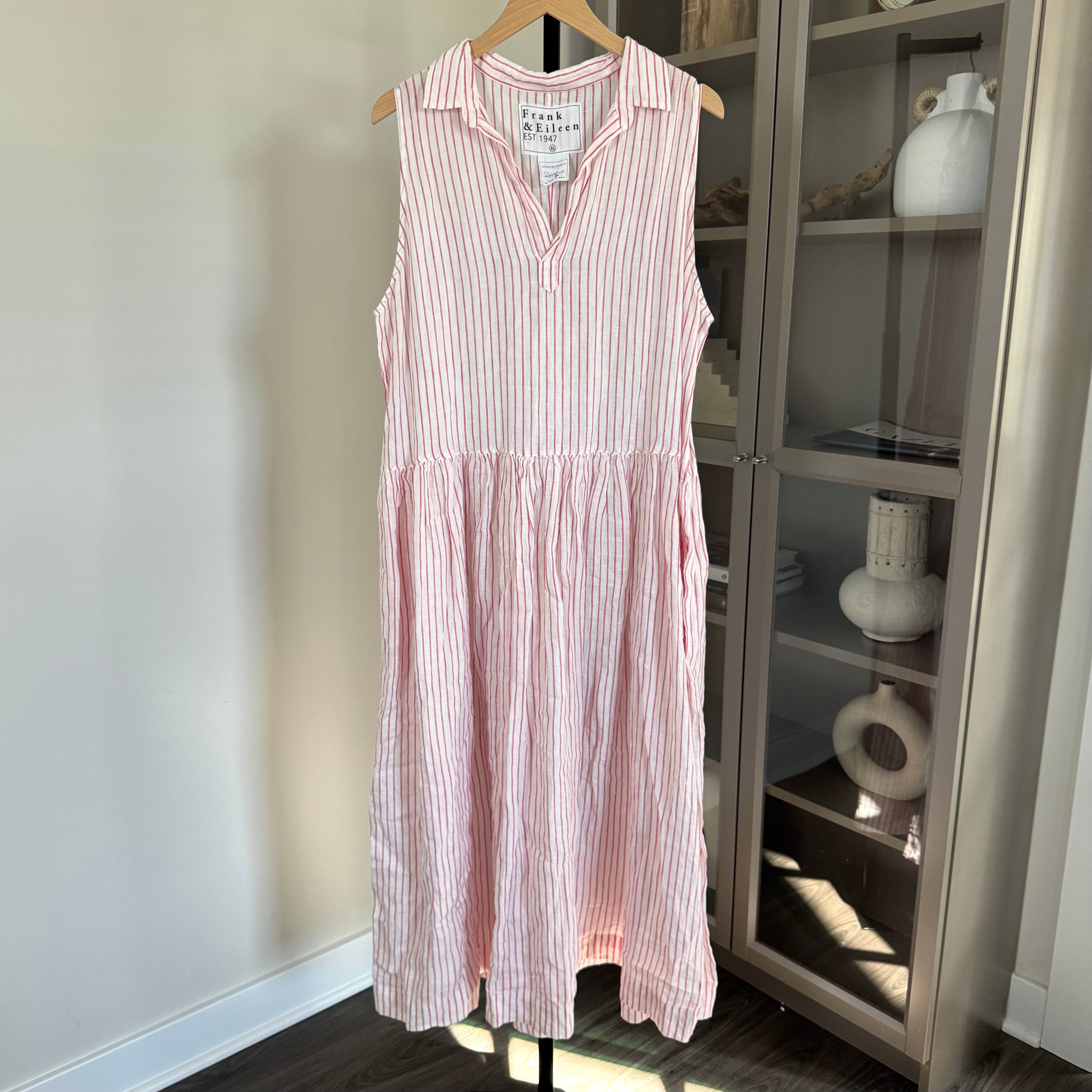 Frank & Eileen Daphne Pink White Stripe Linen Sleeveless Dress