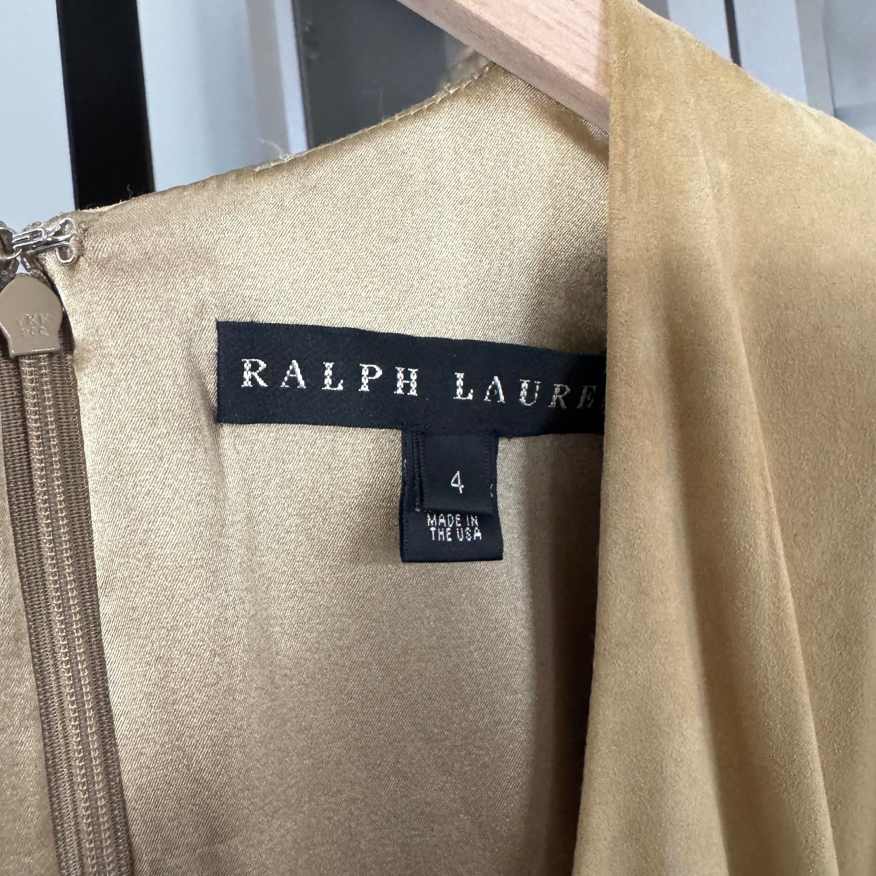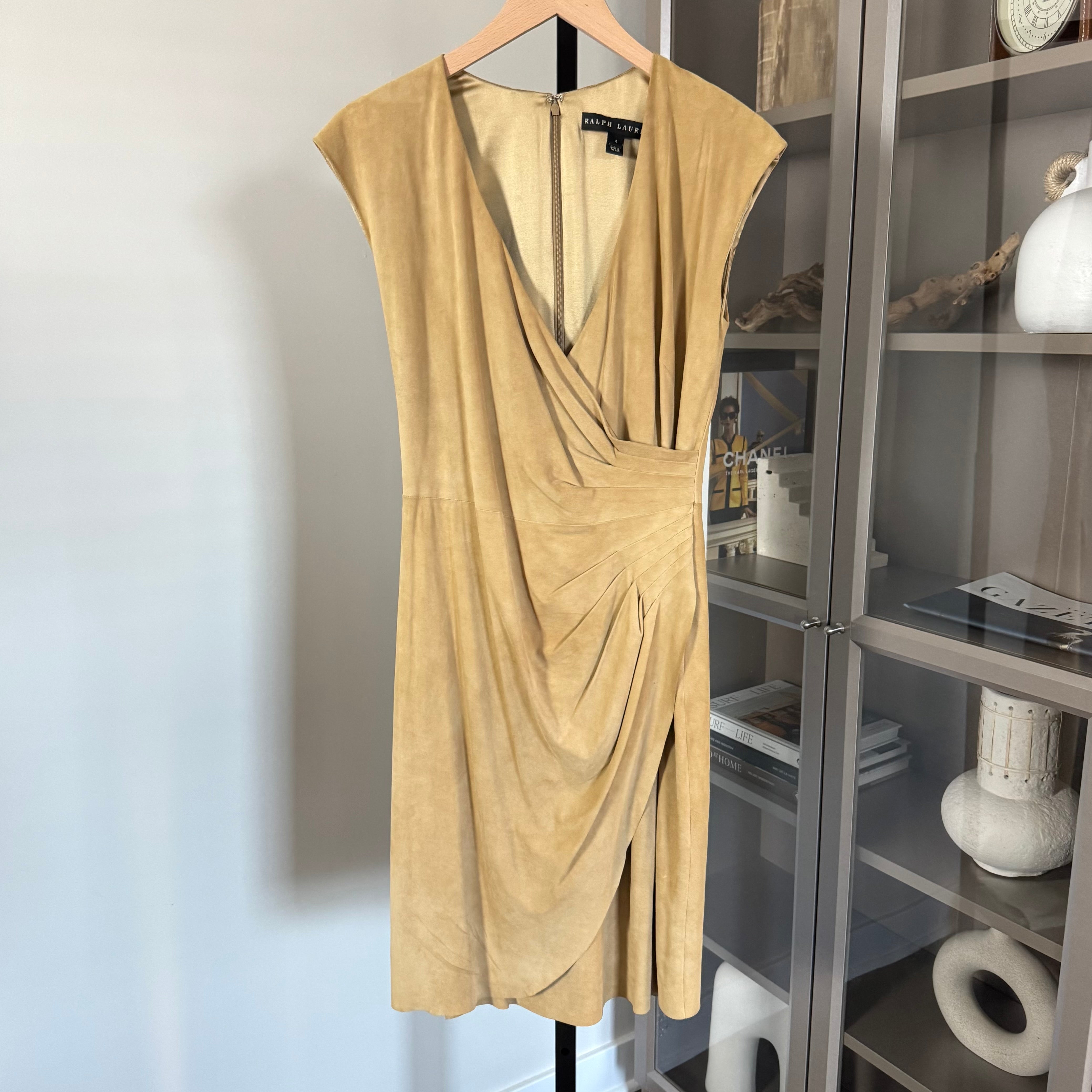 Ralph Lauren Black Label Tan Lamb Suede Leather Faux Wrap Dress
