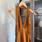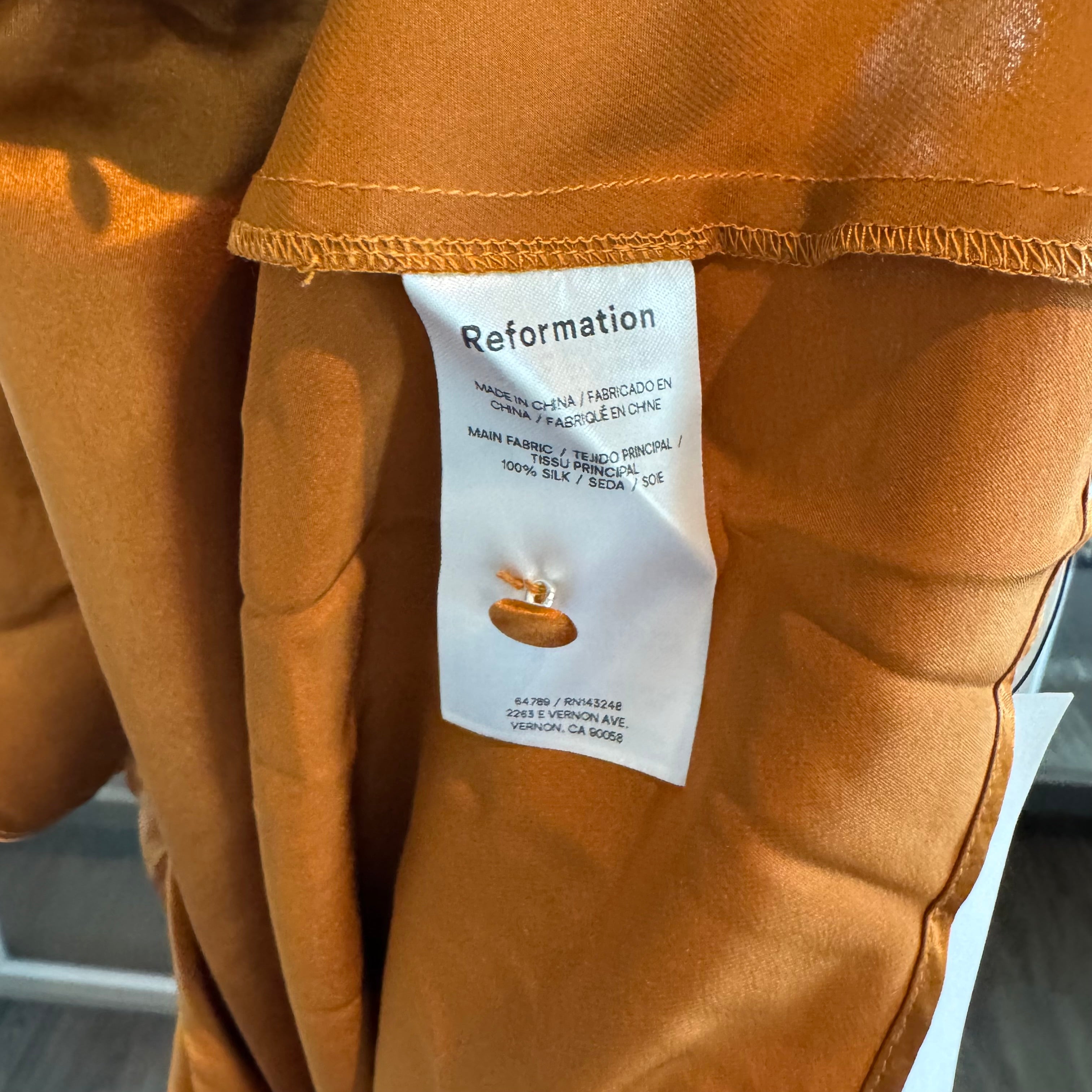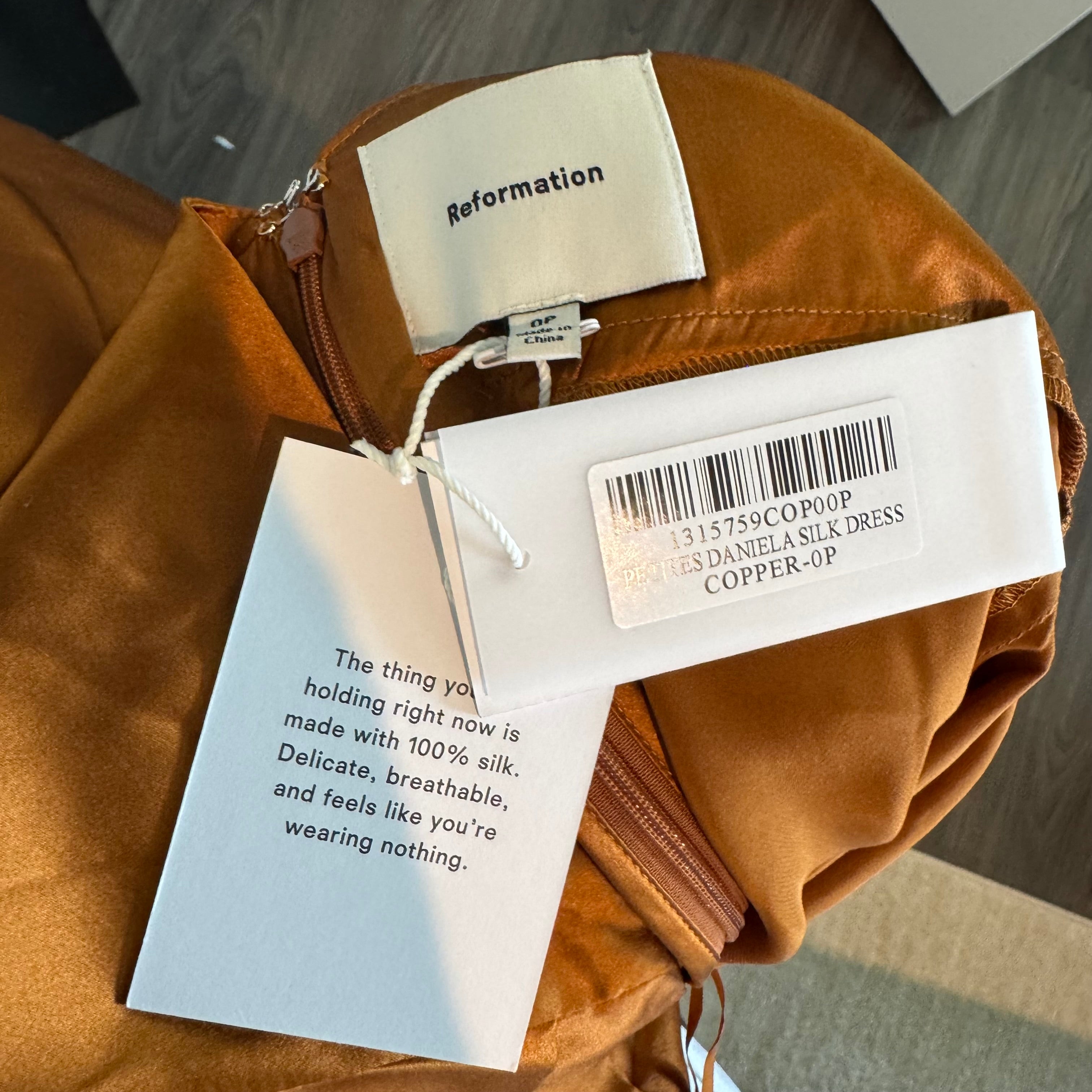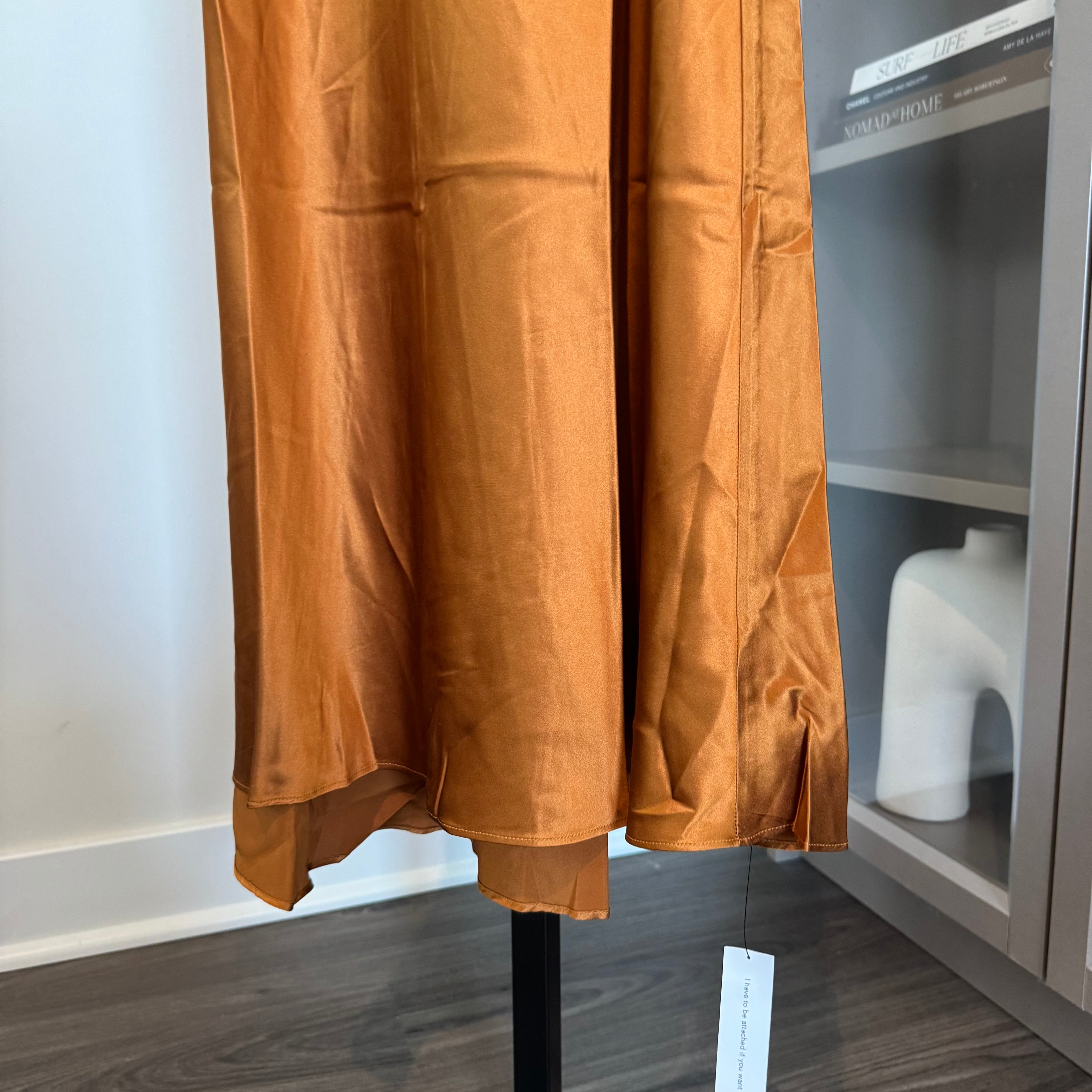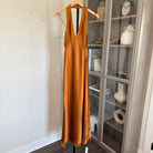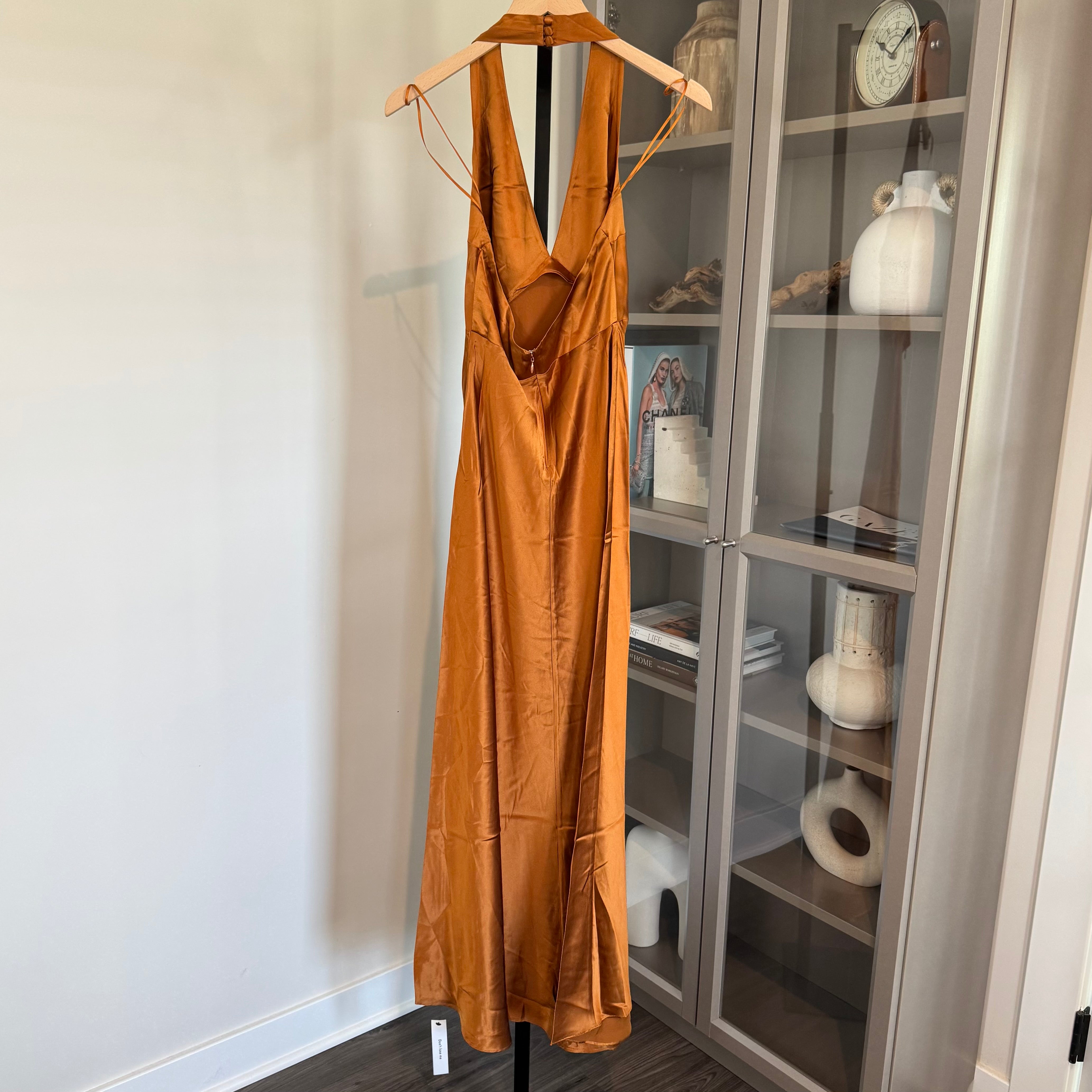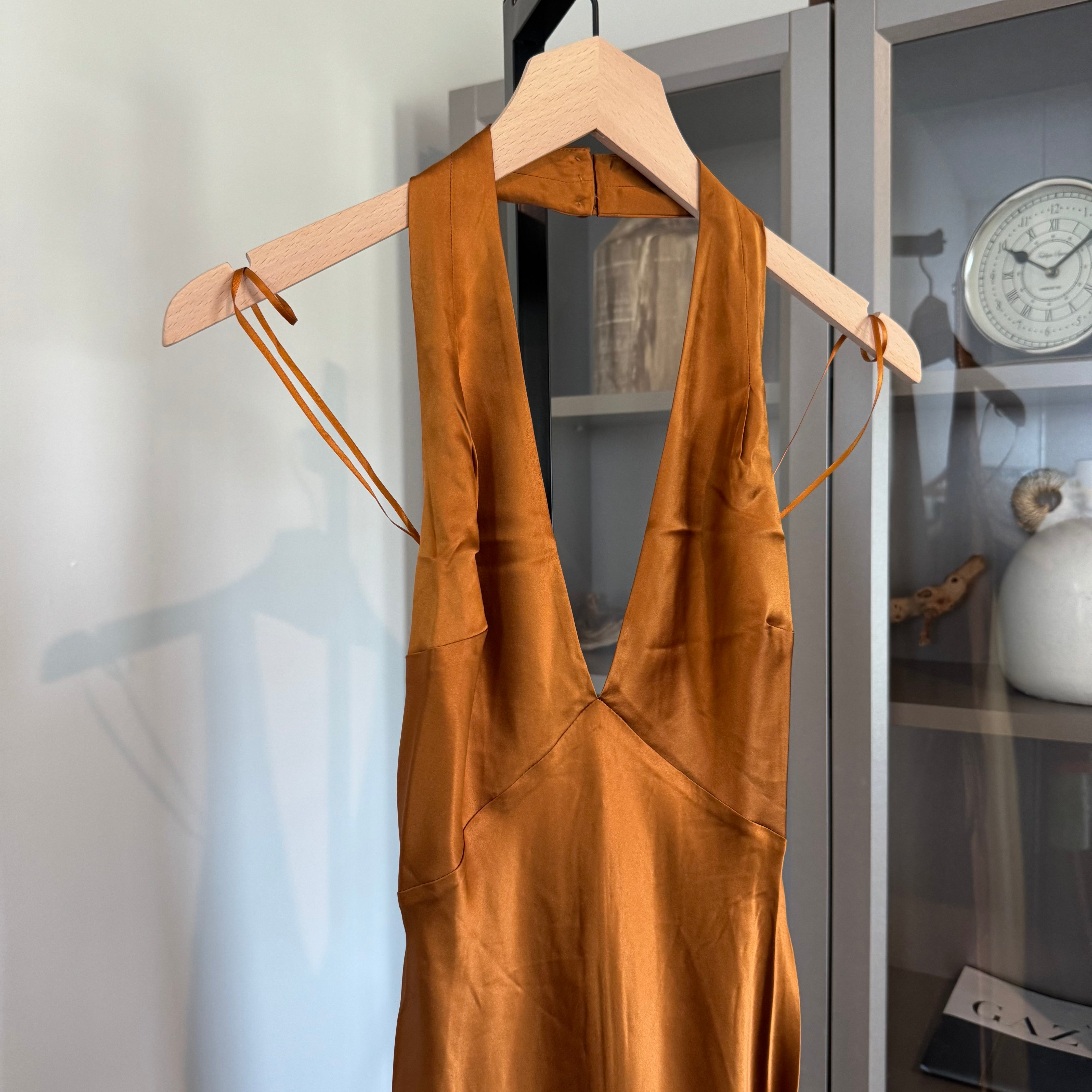 Reformation Daniela Silk Copper V-Neckline Halter Slip Maxi Dress