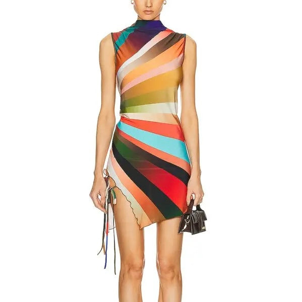 SIEDRES Nisha Sun Ray Multicolor Side Slit Mini Dress