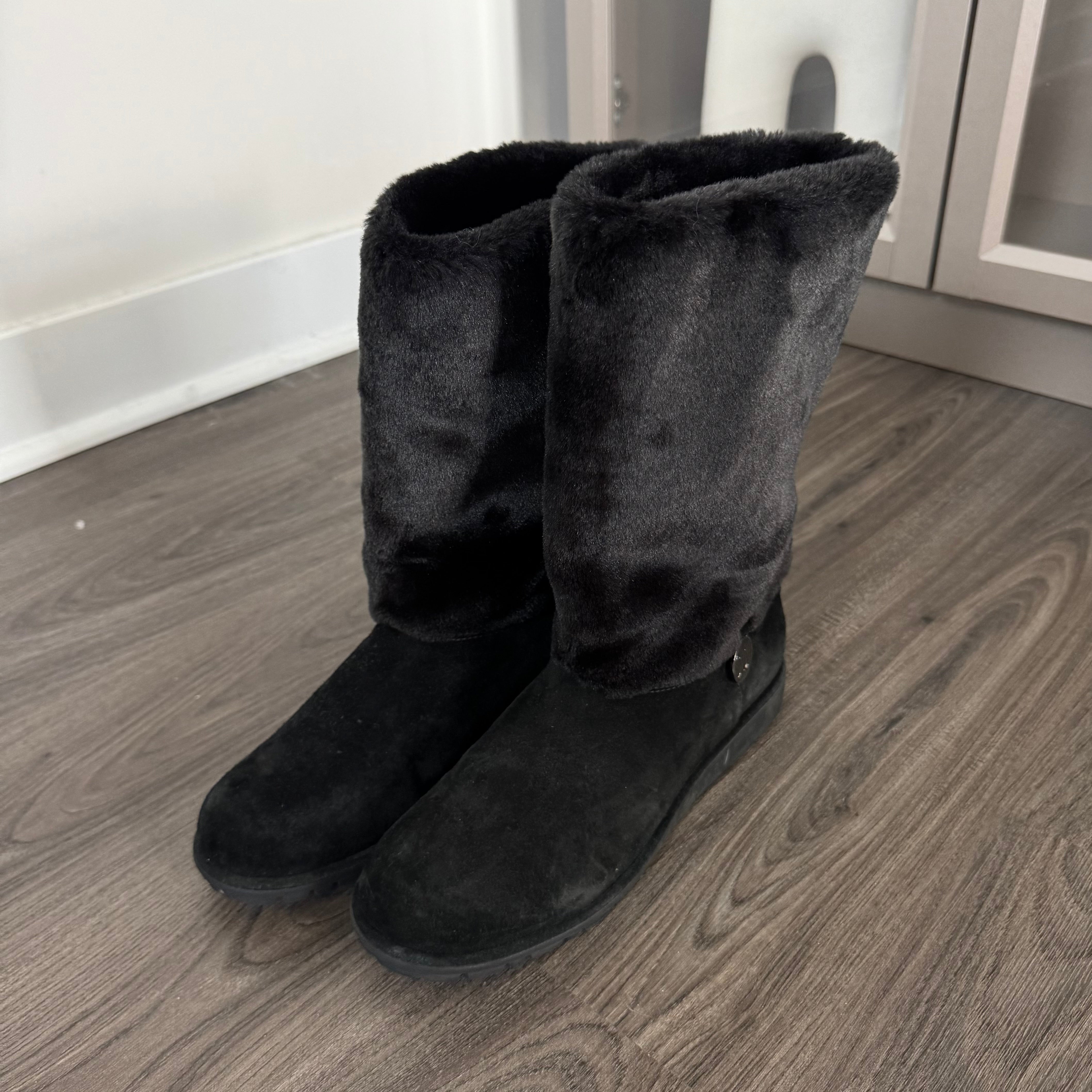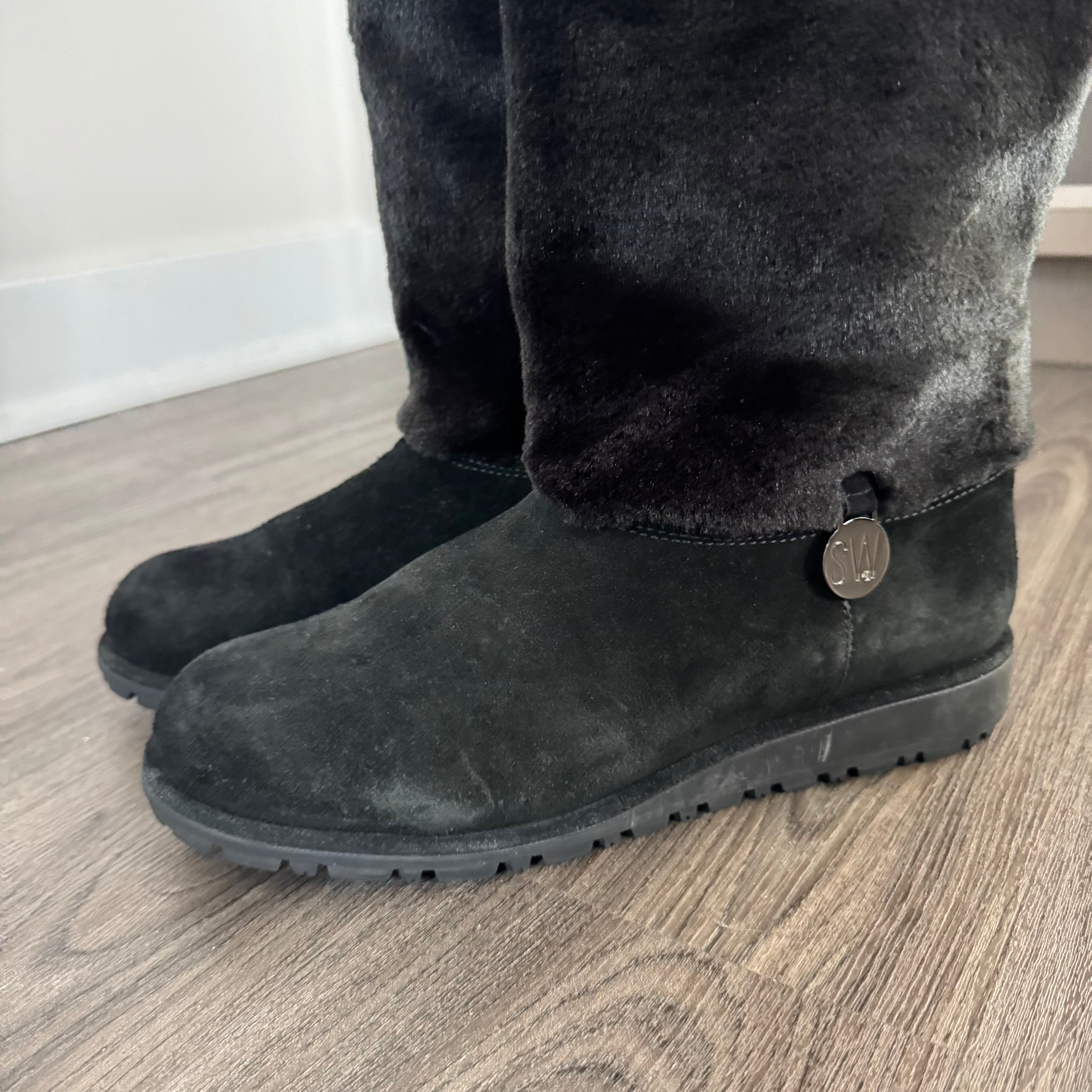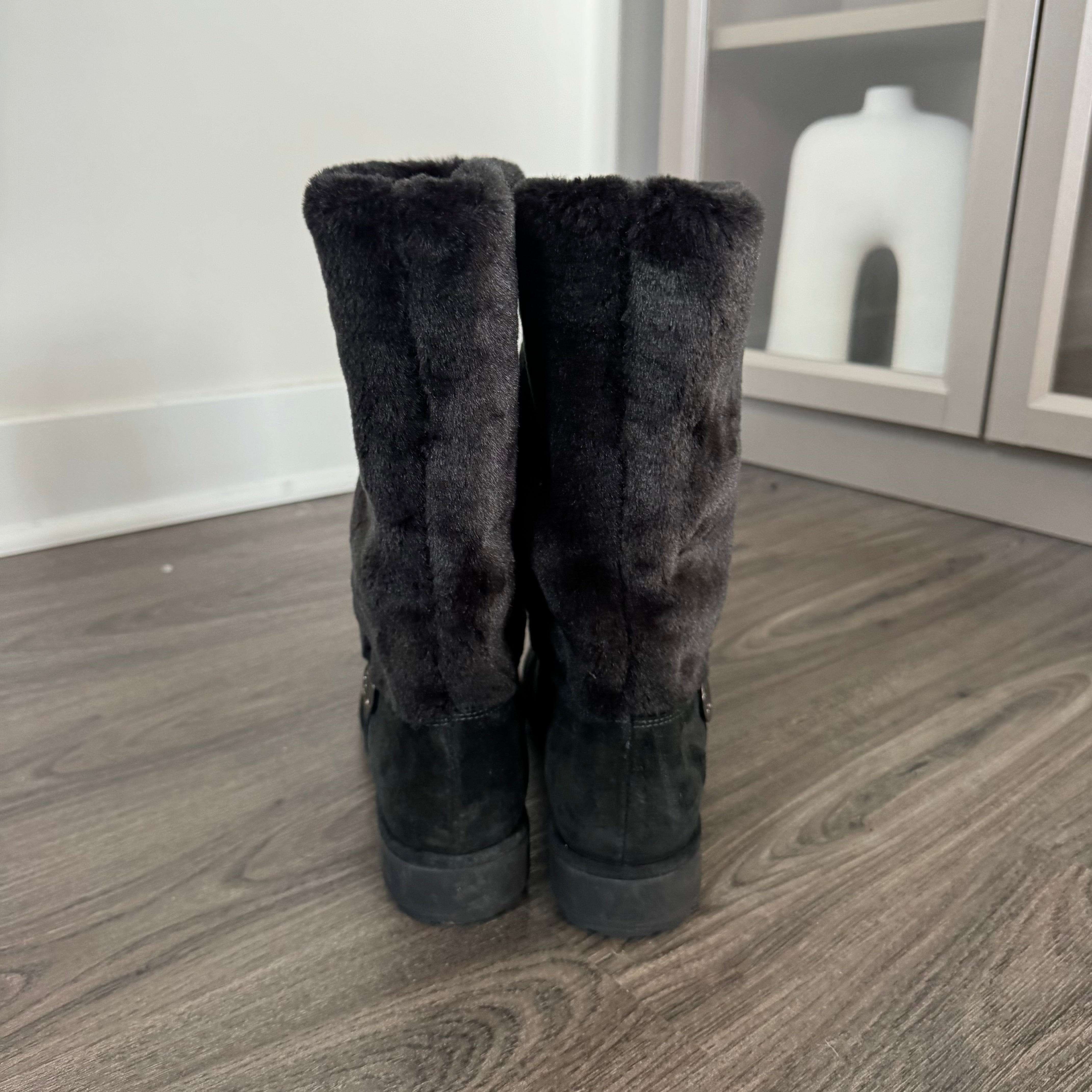 Stuart Weitzman Black Furever Faux Fur Suede Mid-Calf Boots