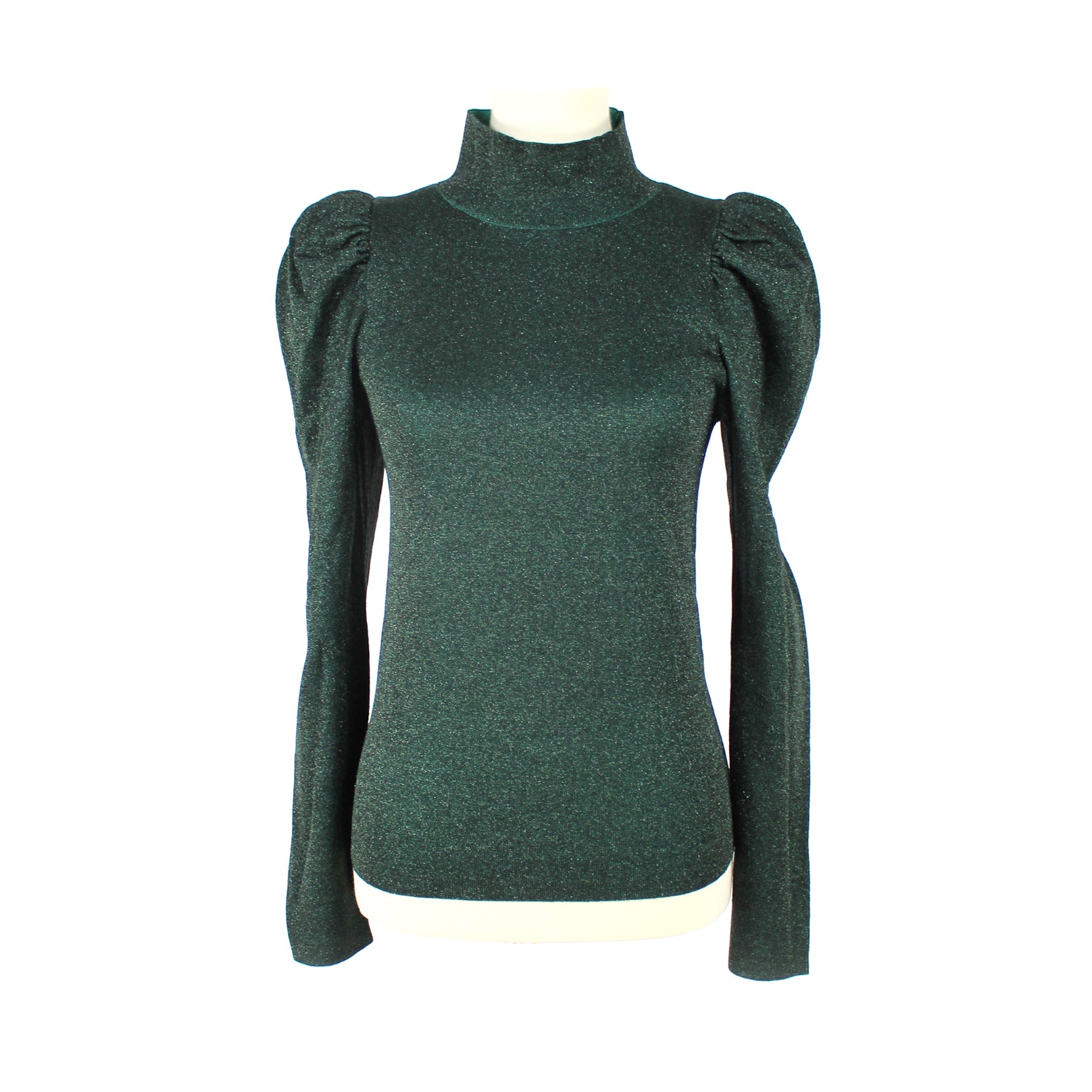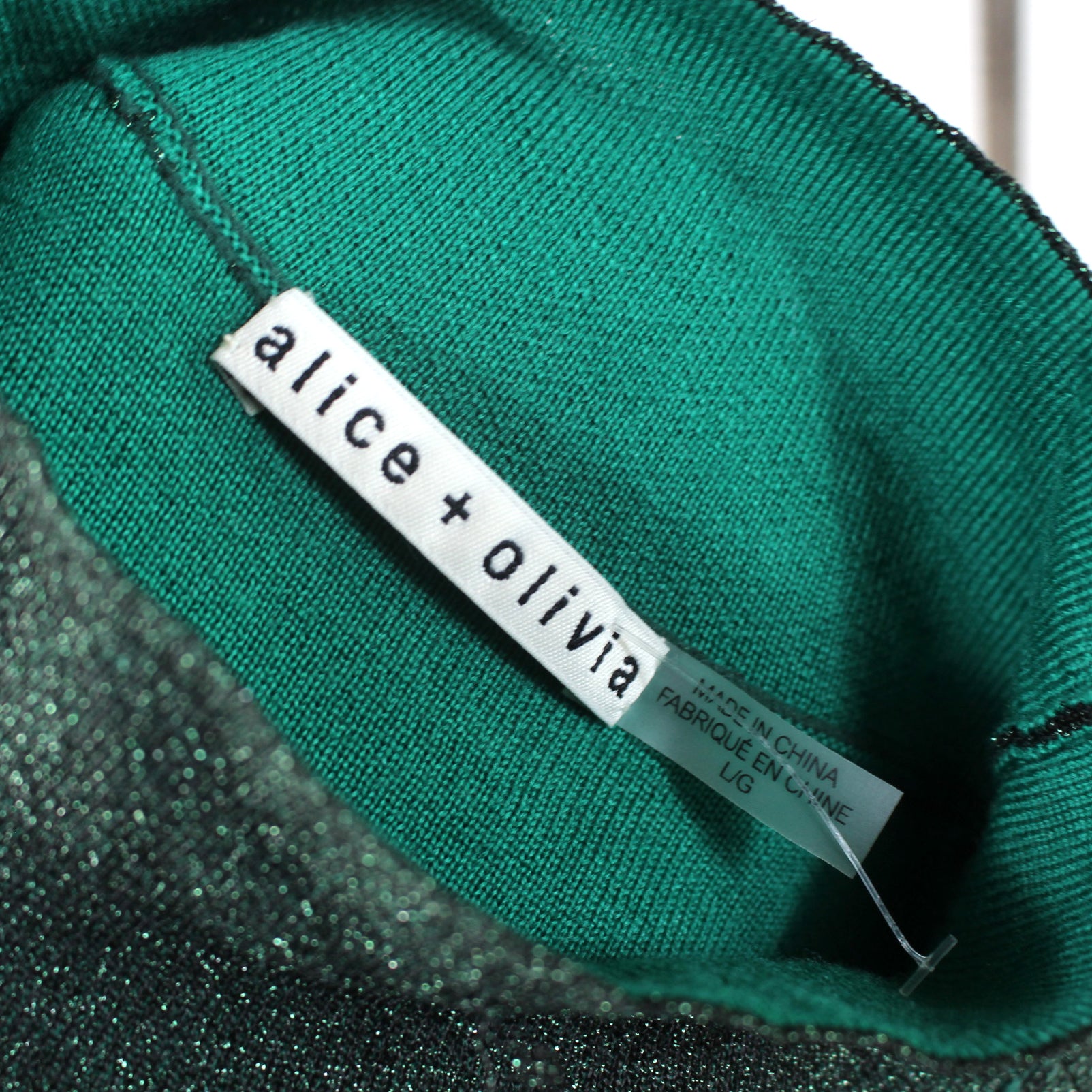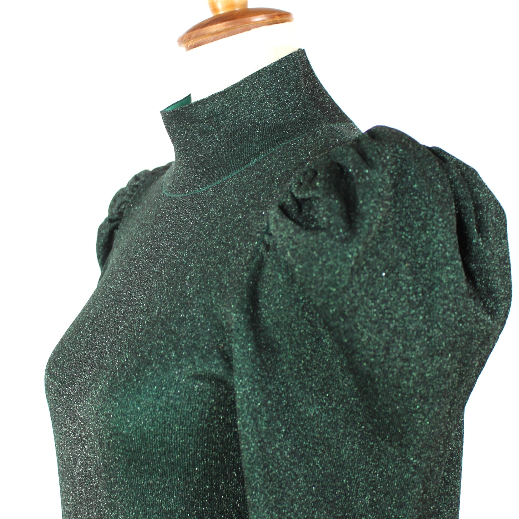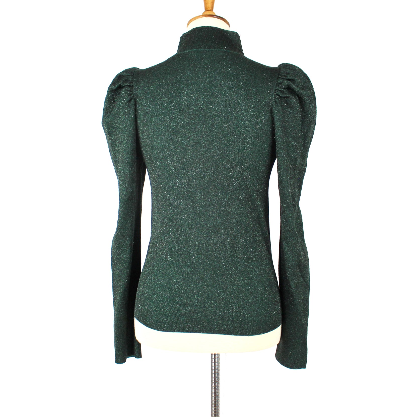 Alice + Olivia Issa Puff Sleeve Turtleneck Emerald Green Metallic Sweater