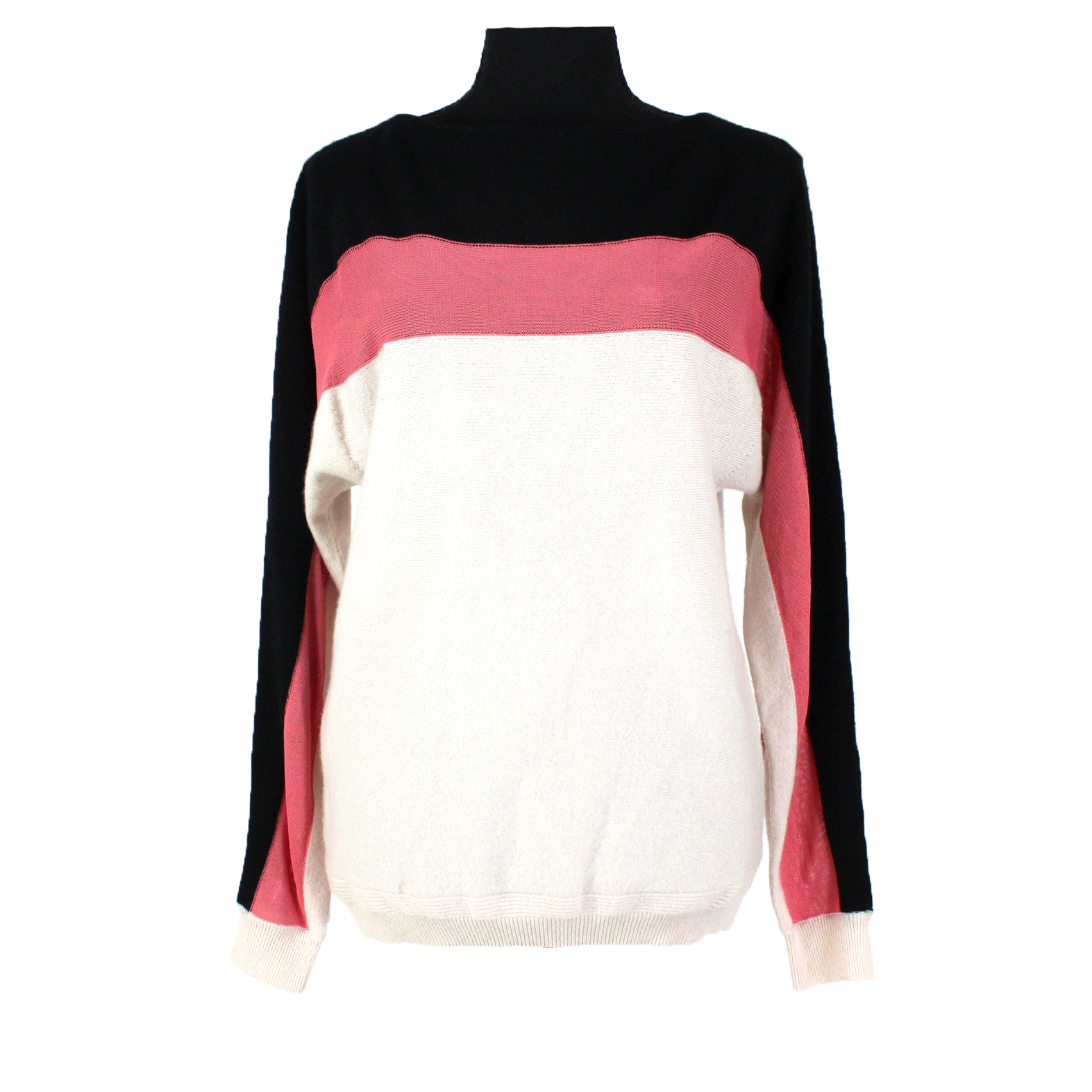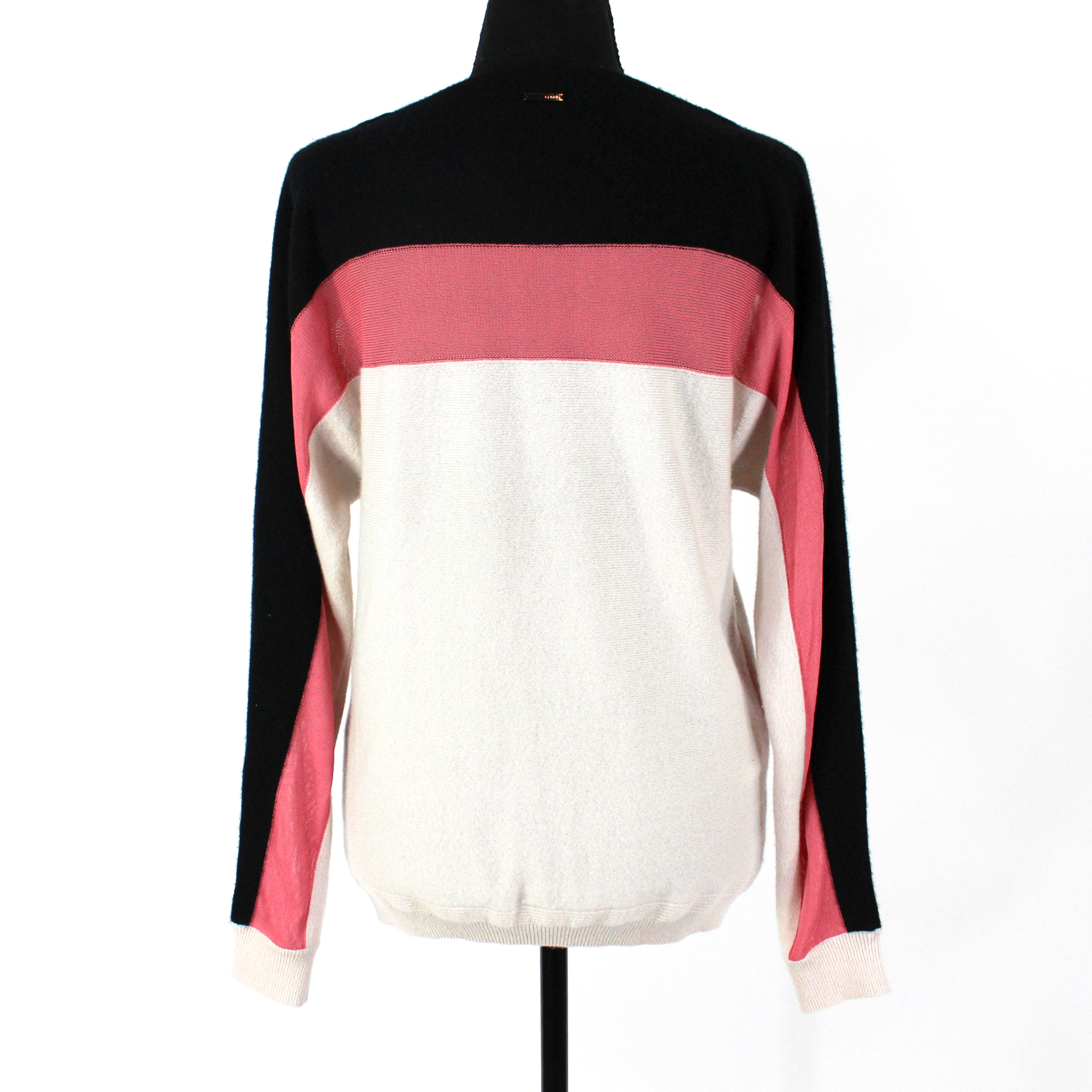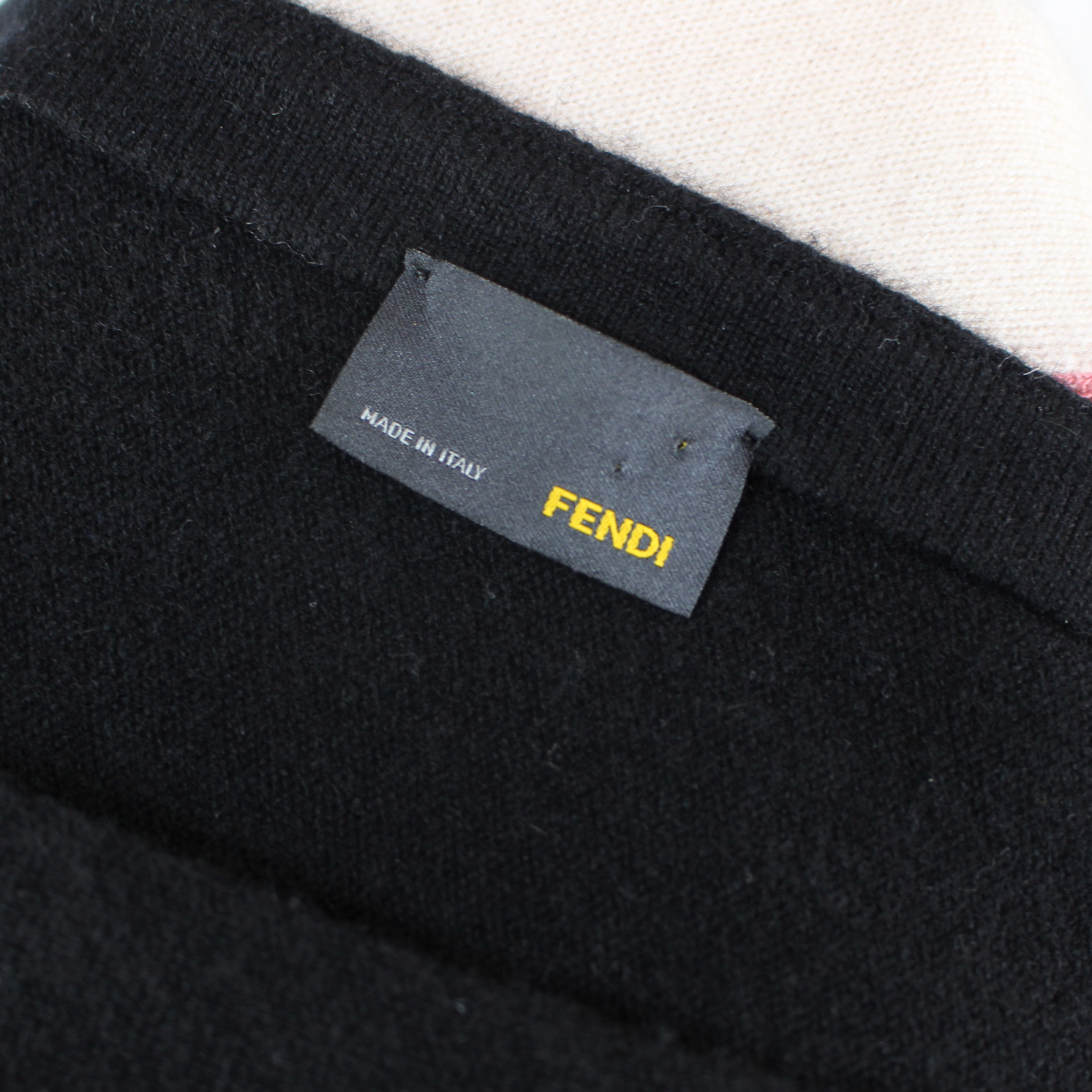 FENDI Cashmere Colorblock Mesh Detail Boatneck Pullover Sweater