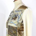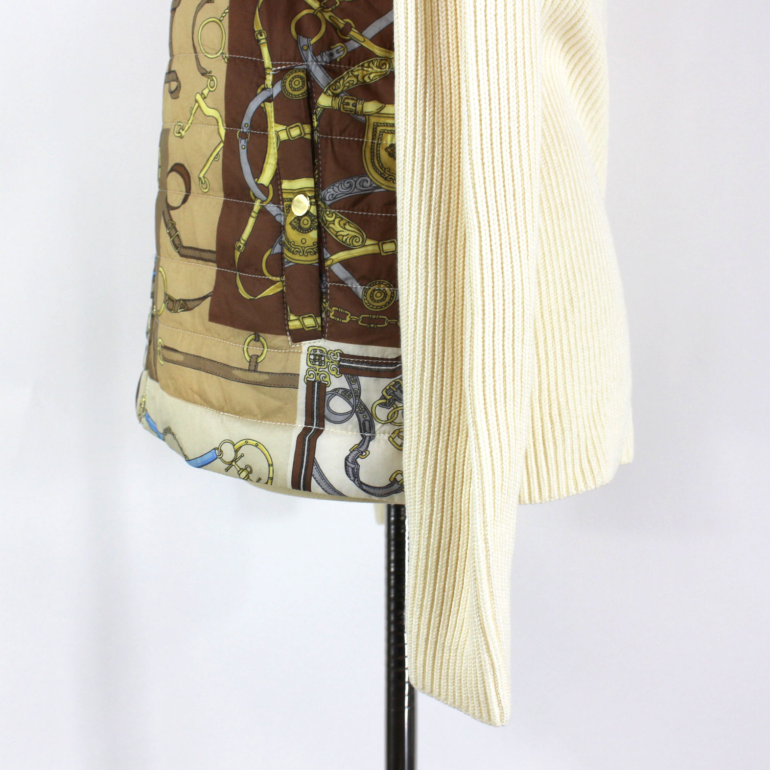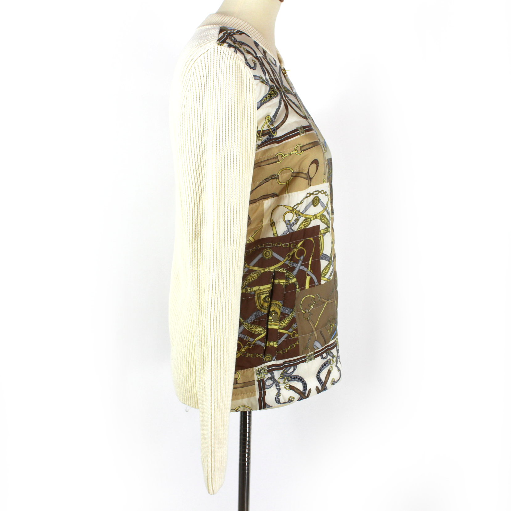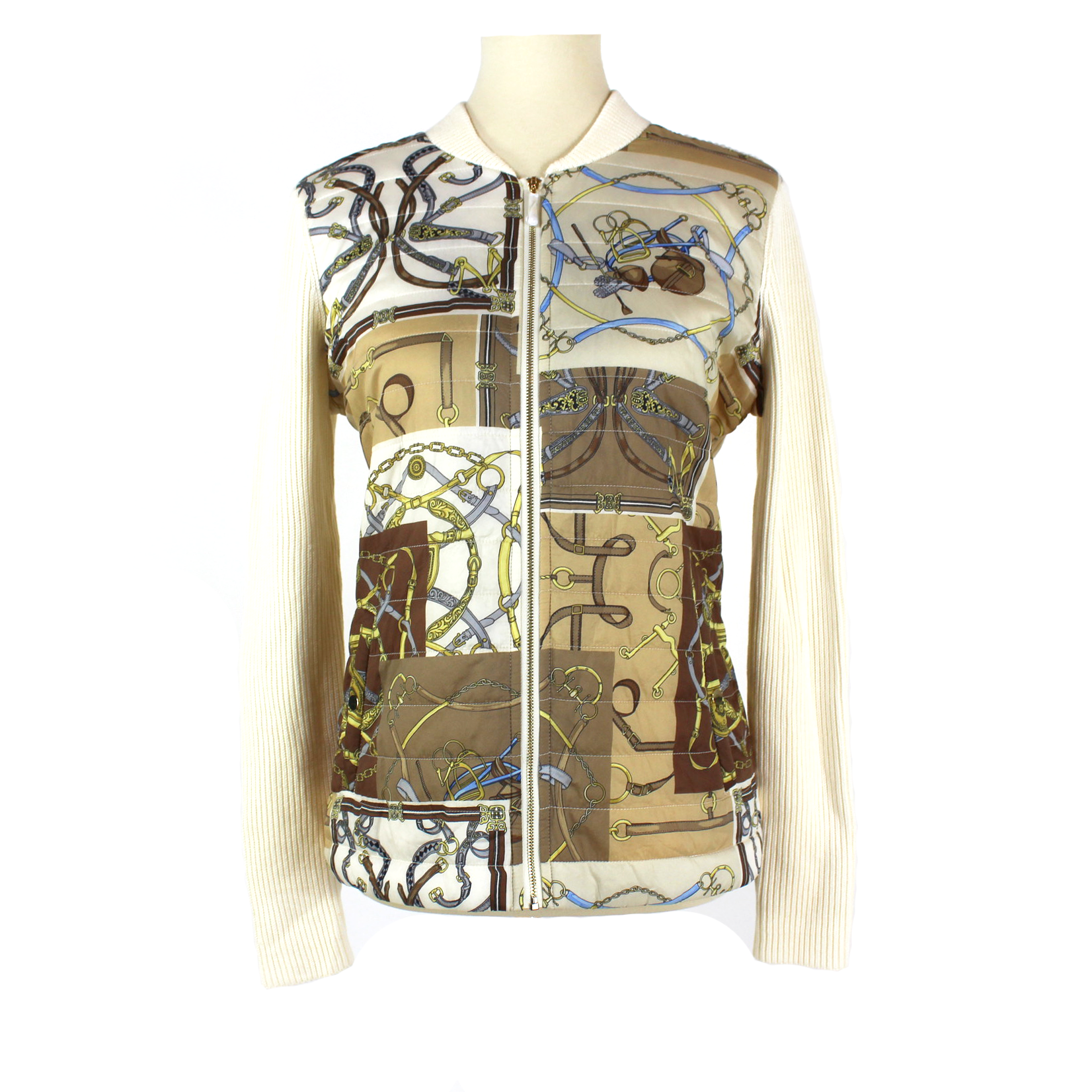J. McLaughlin Andi Tan Cream Quilted Equestrian Motif Front Sweater Jacket