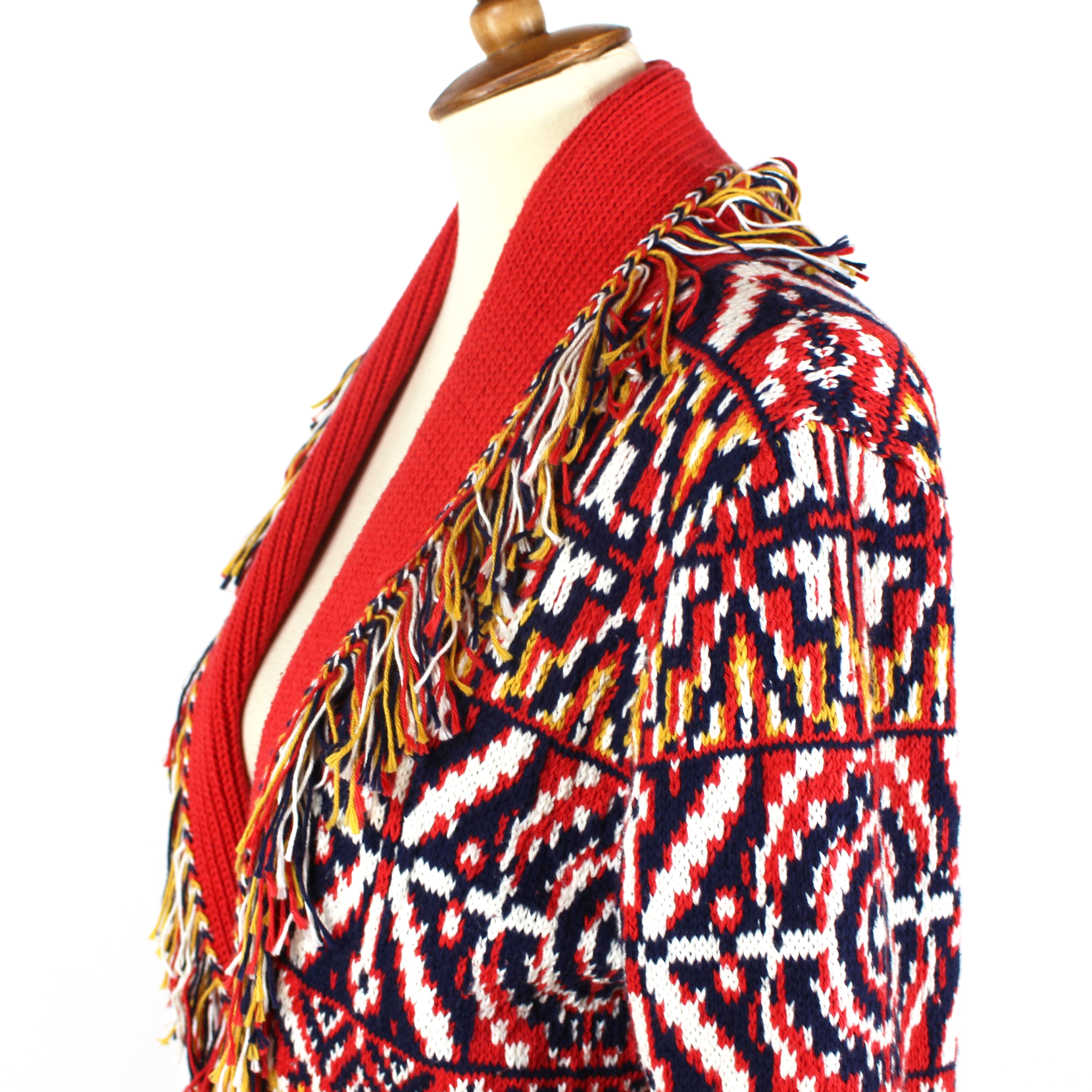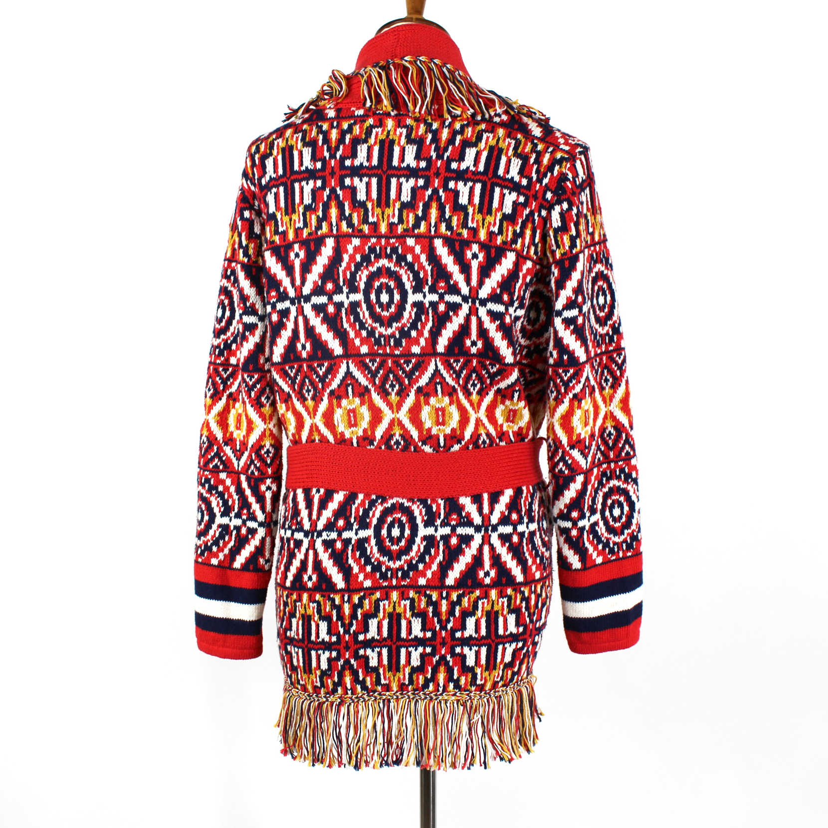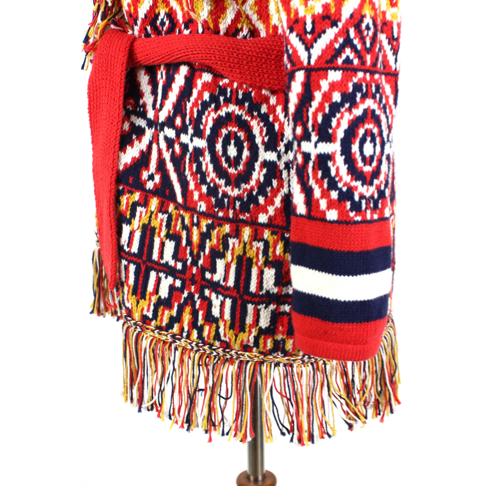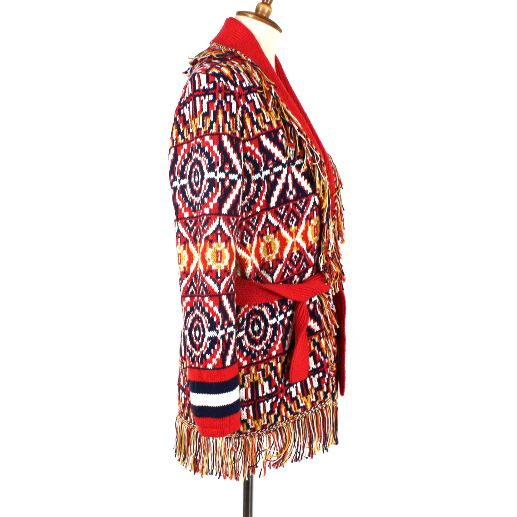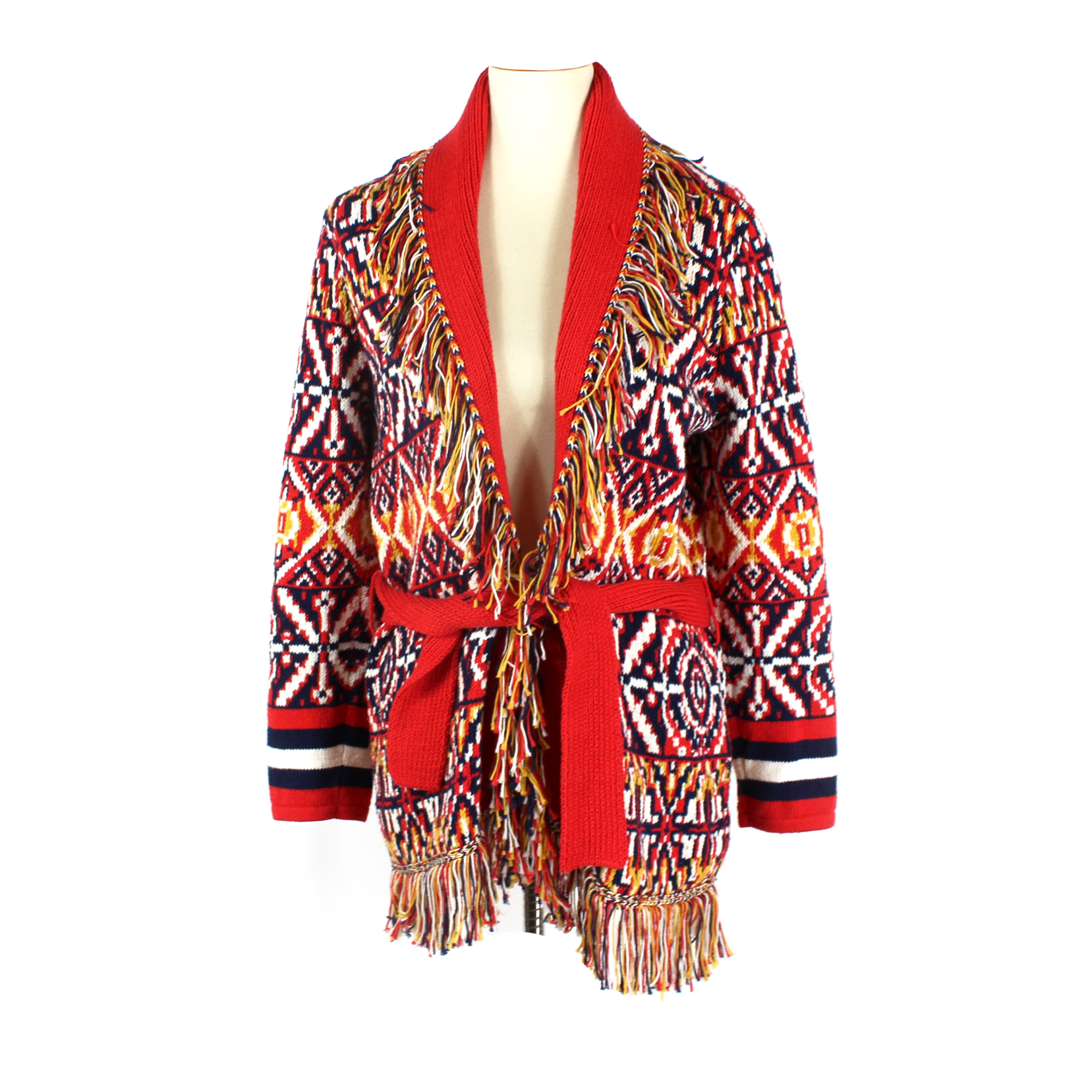 Mother The Belted Short Cardigan Bass Culture Fringe Trim Tribal Print Sweater