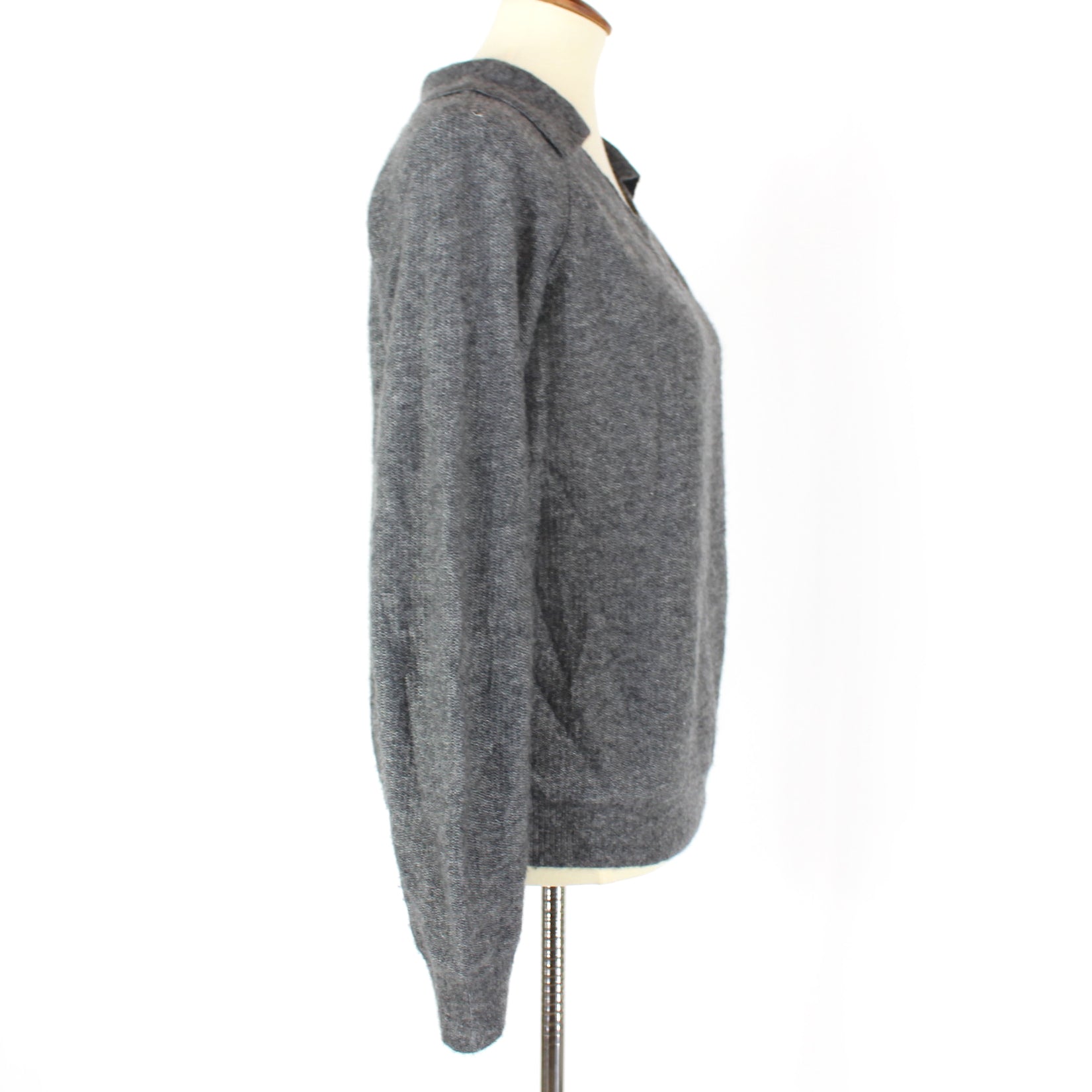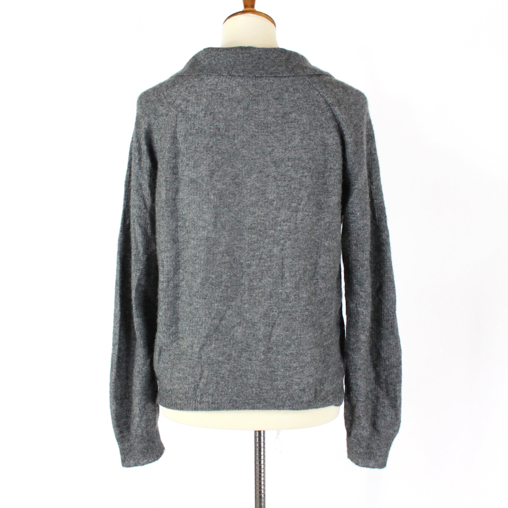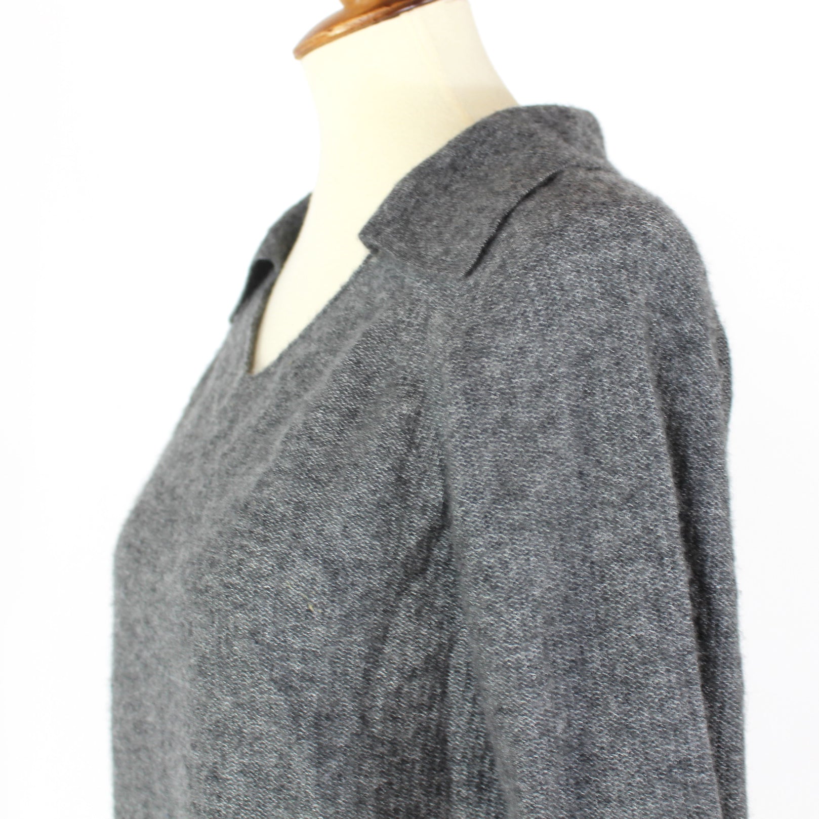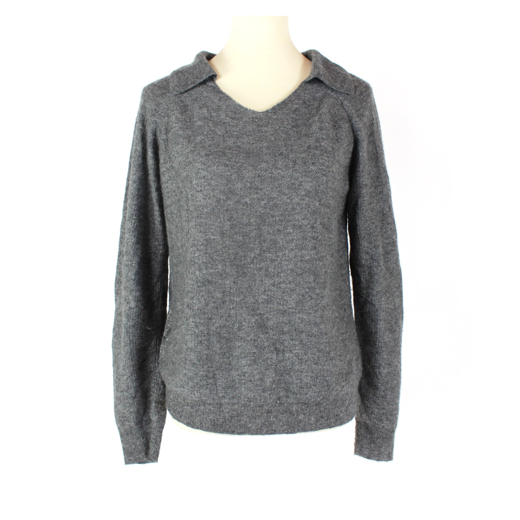 Nellie Partow Grey Cashmere Silk V-Neck Long Sleeve Sweater