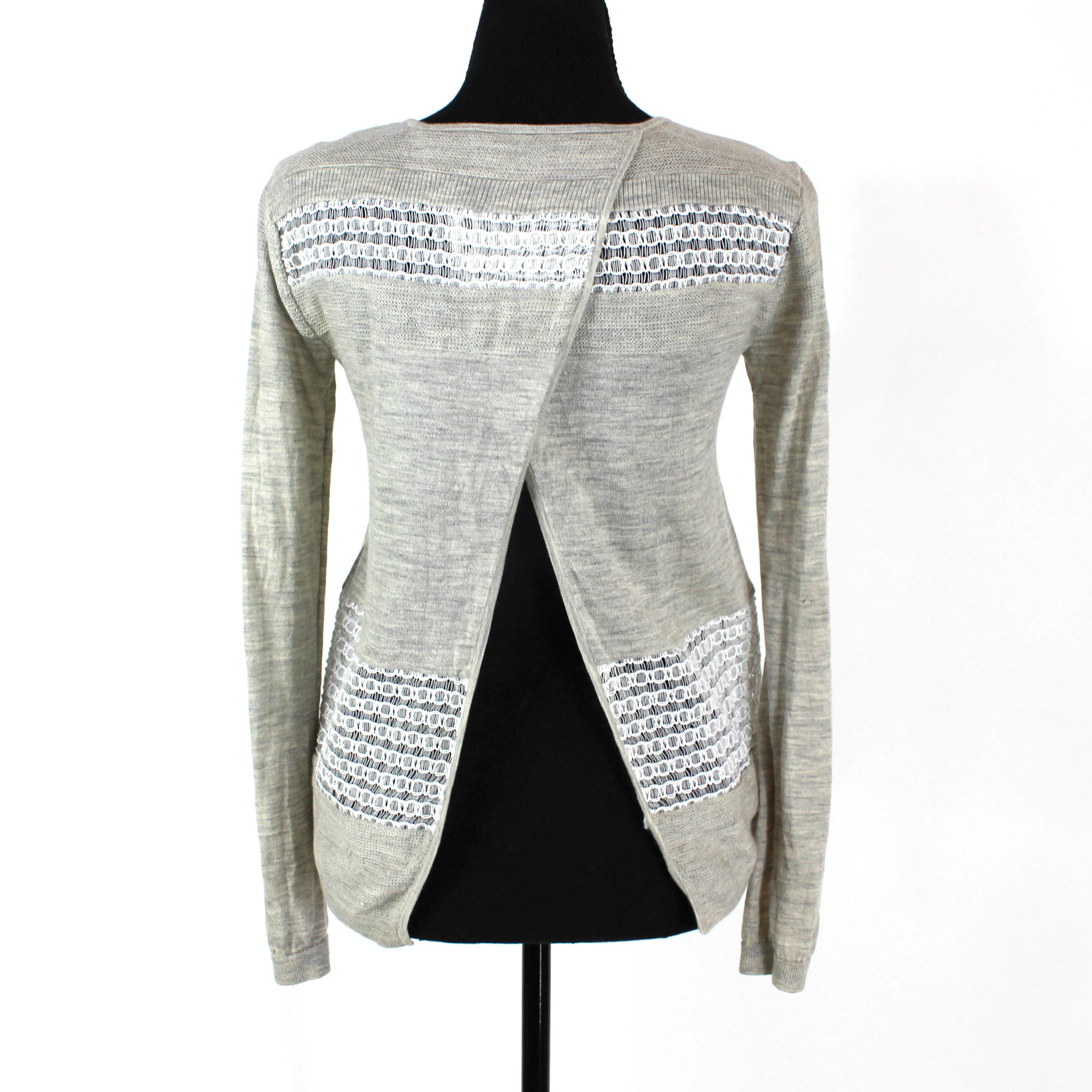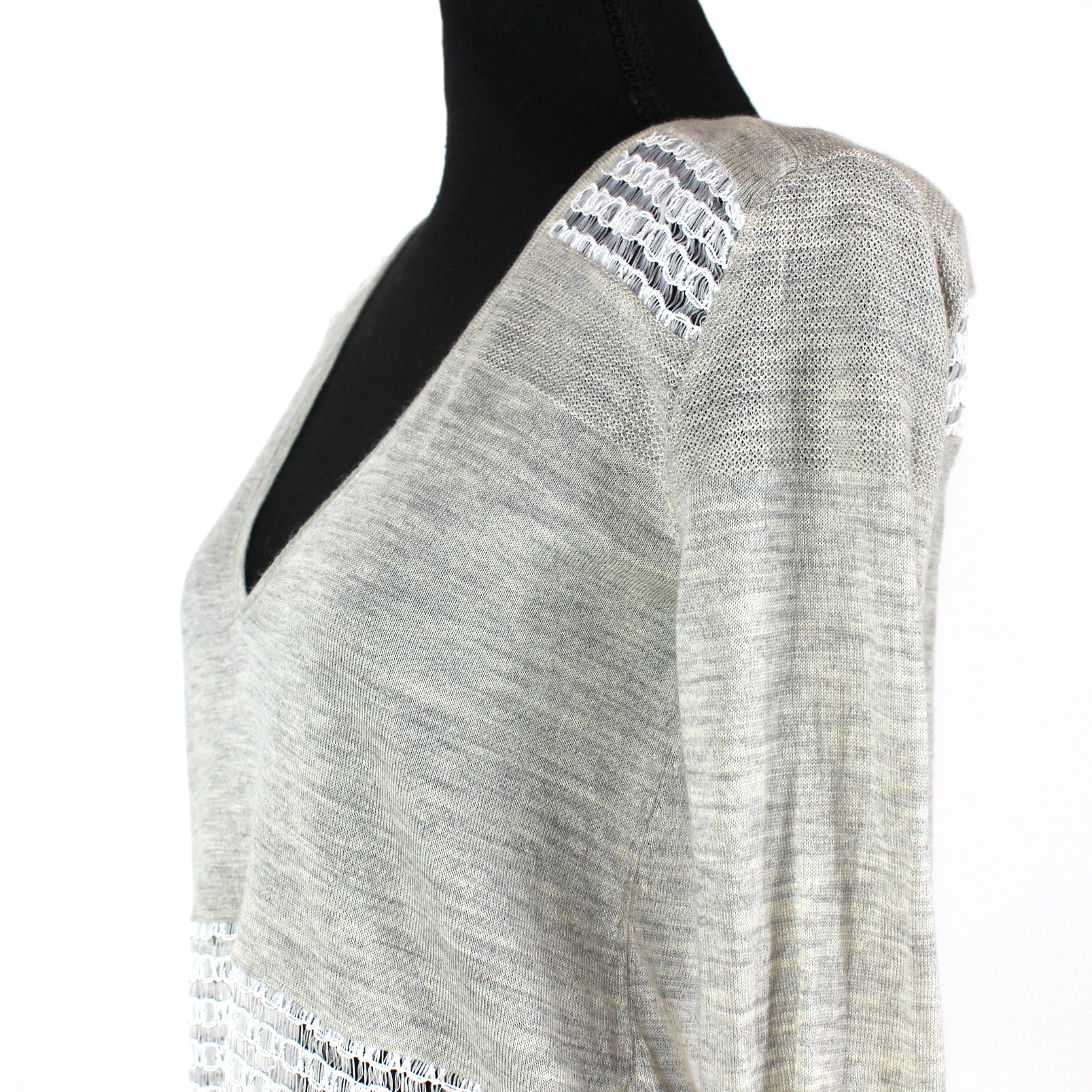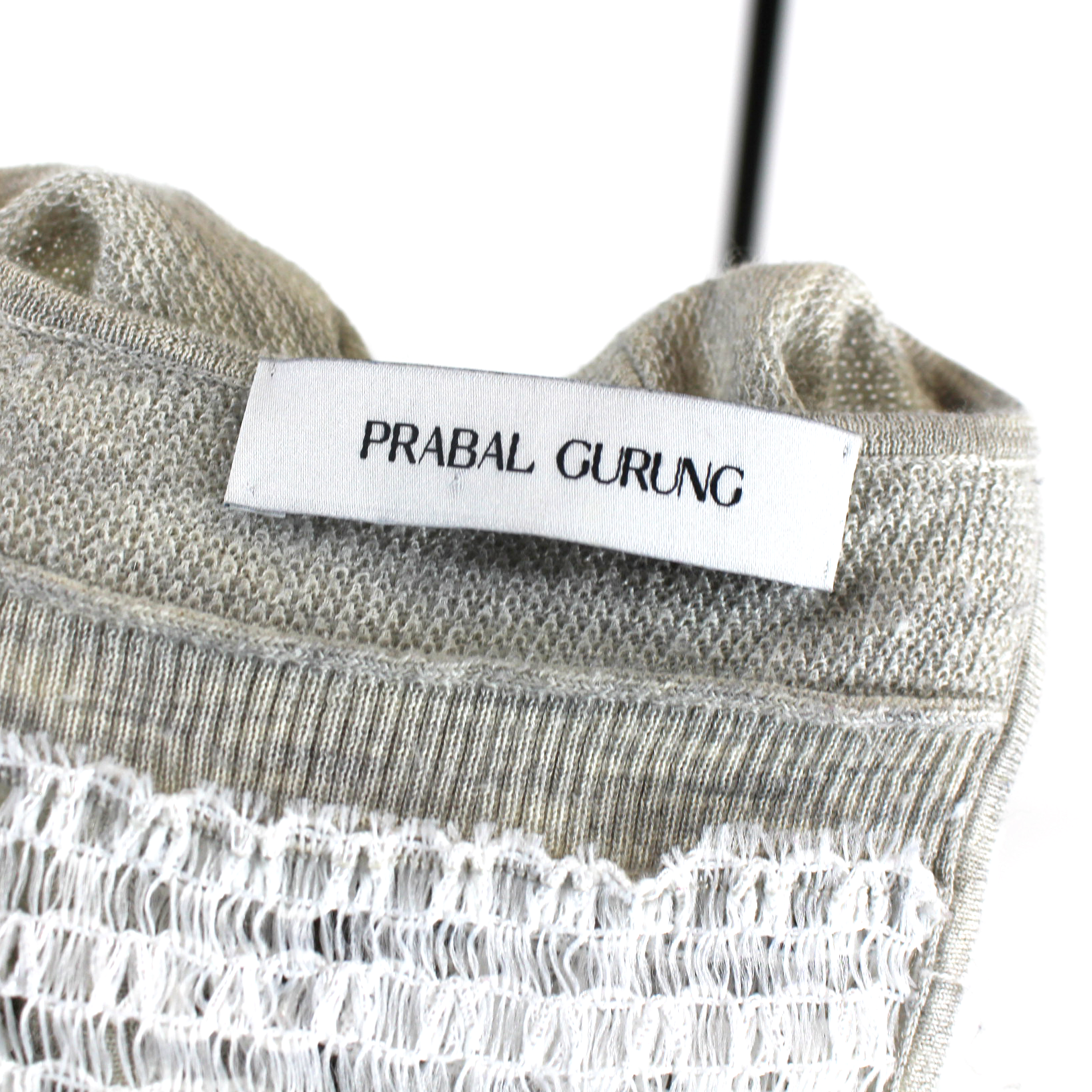 Prabal Gurung Tan Wool Silk White Sheer Stitch Crossover Back Sweater