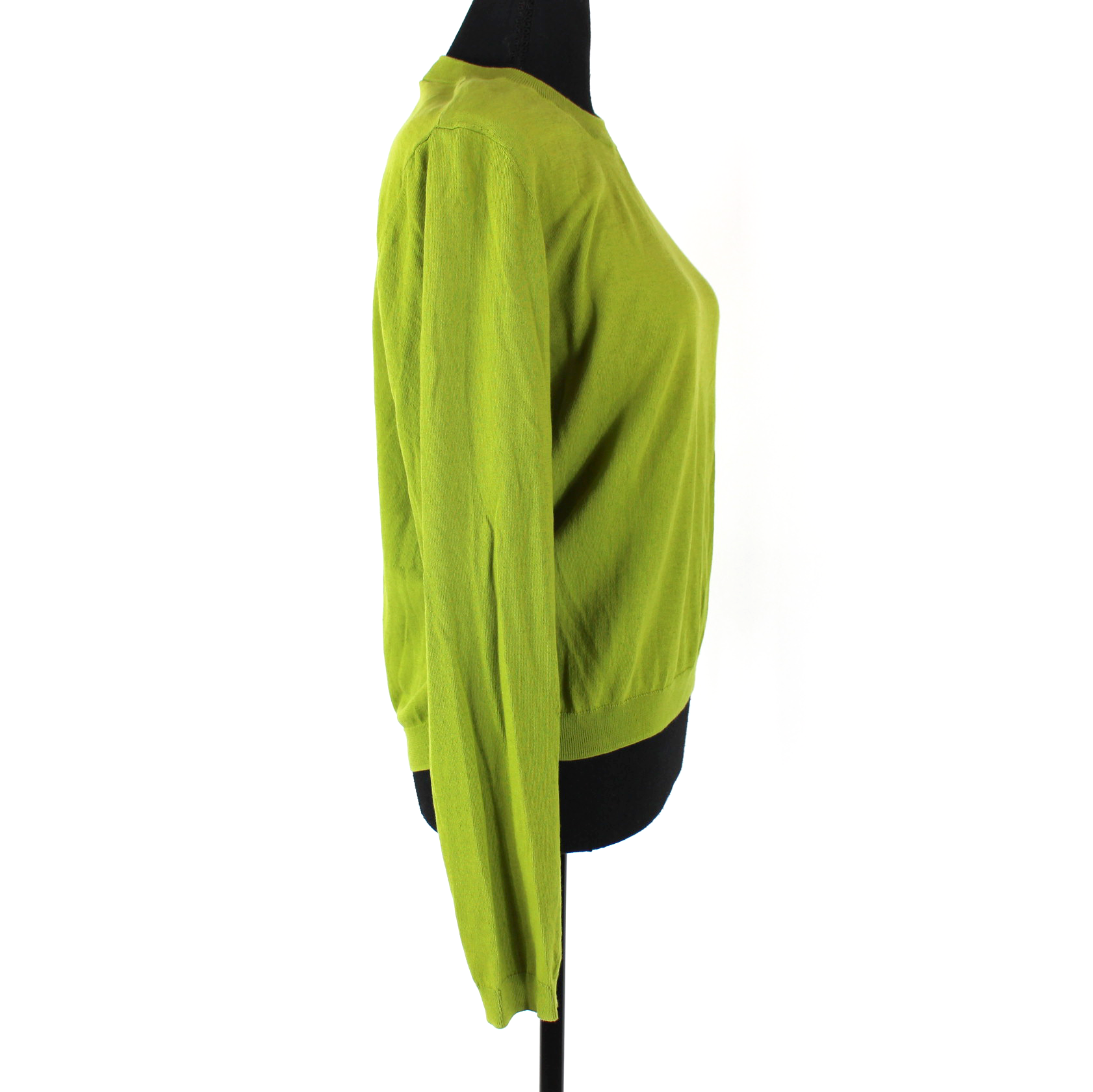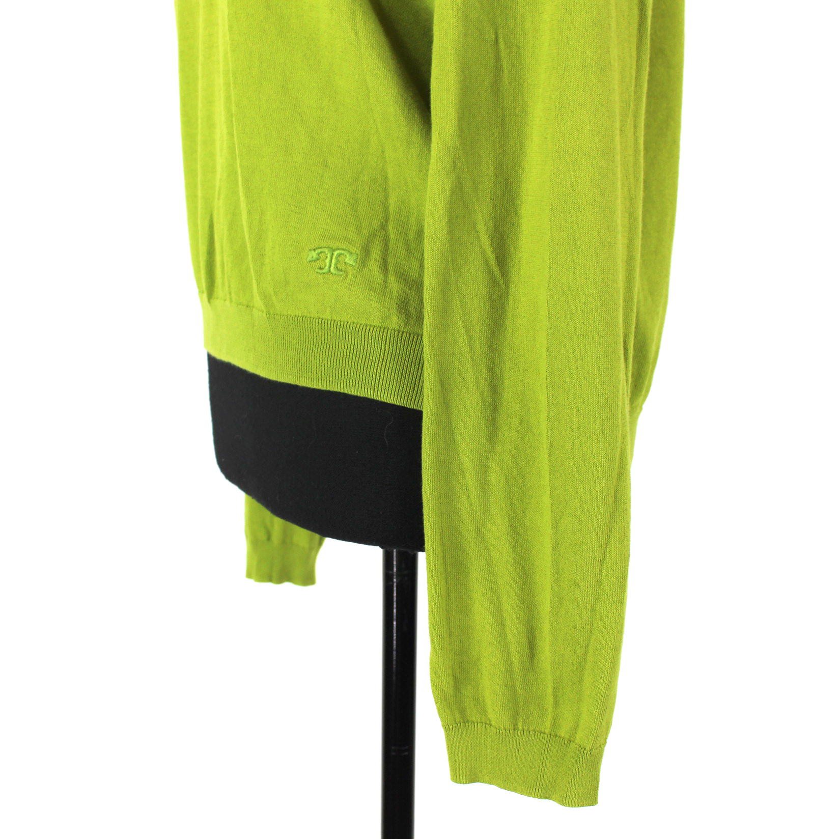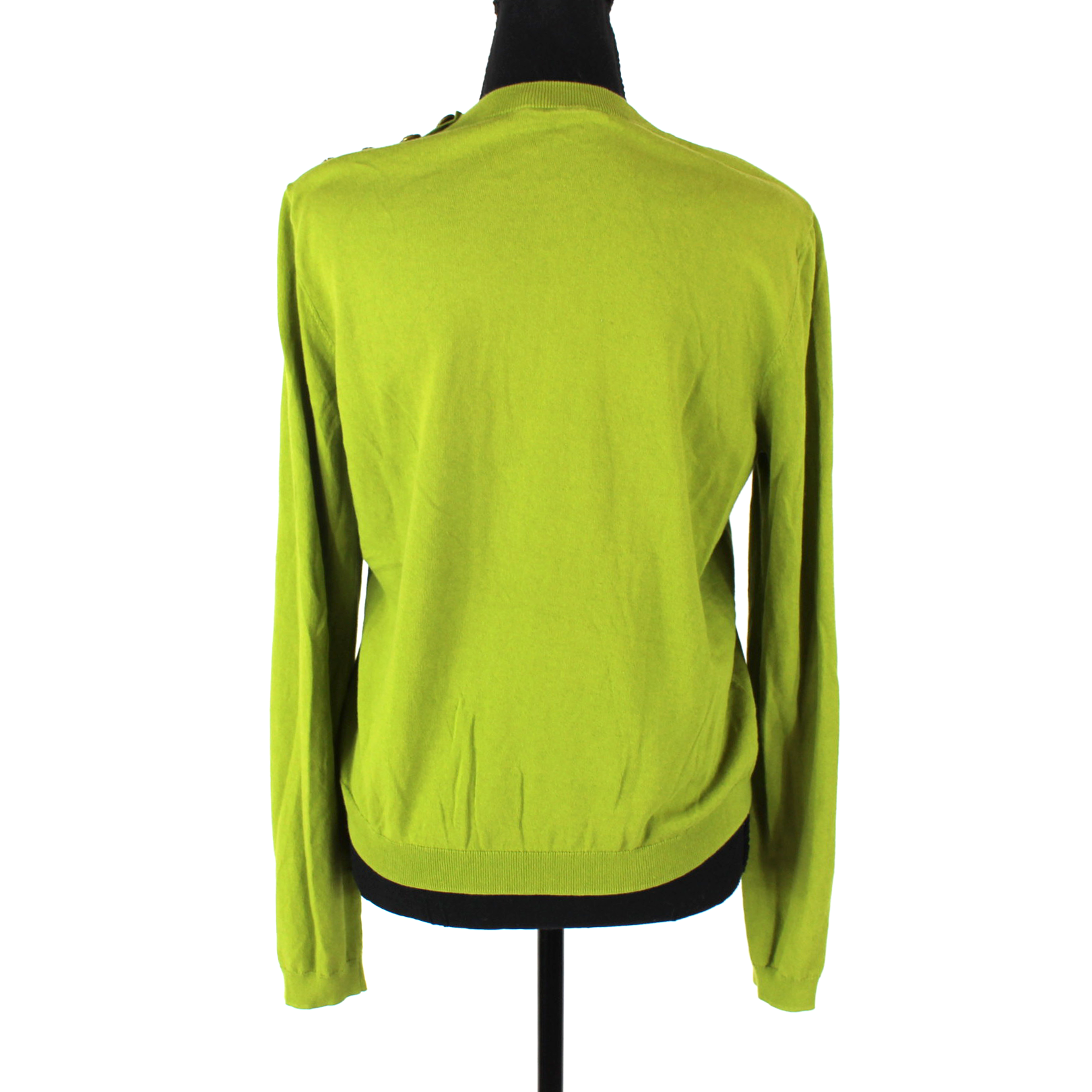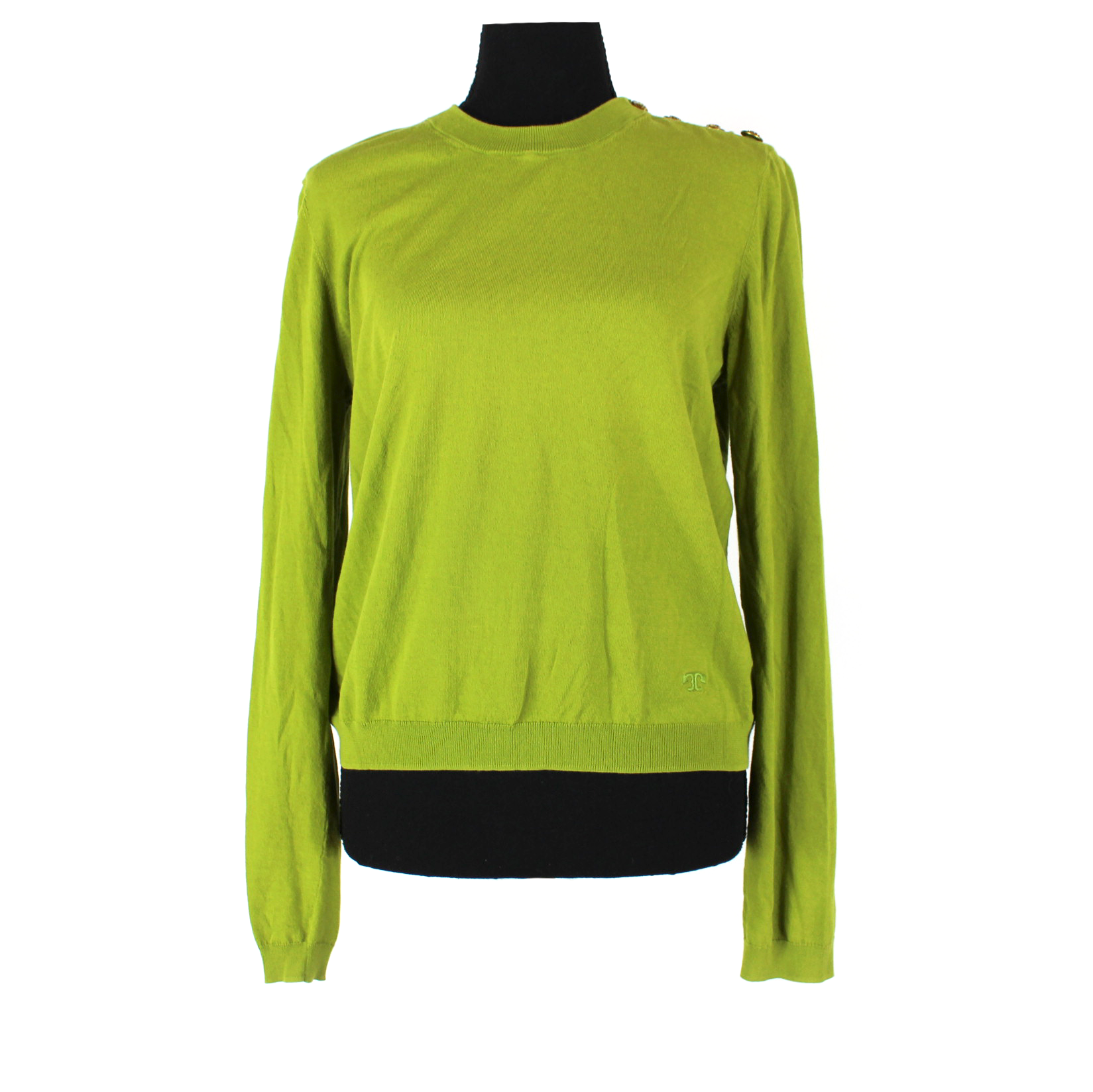 Tory Burch Green Knit Gold Button Shoulder Long Sleeve Crewneck Sweater