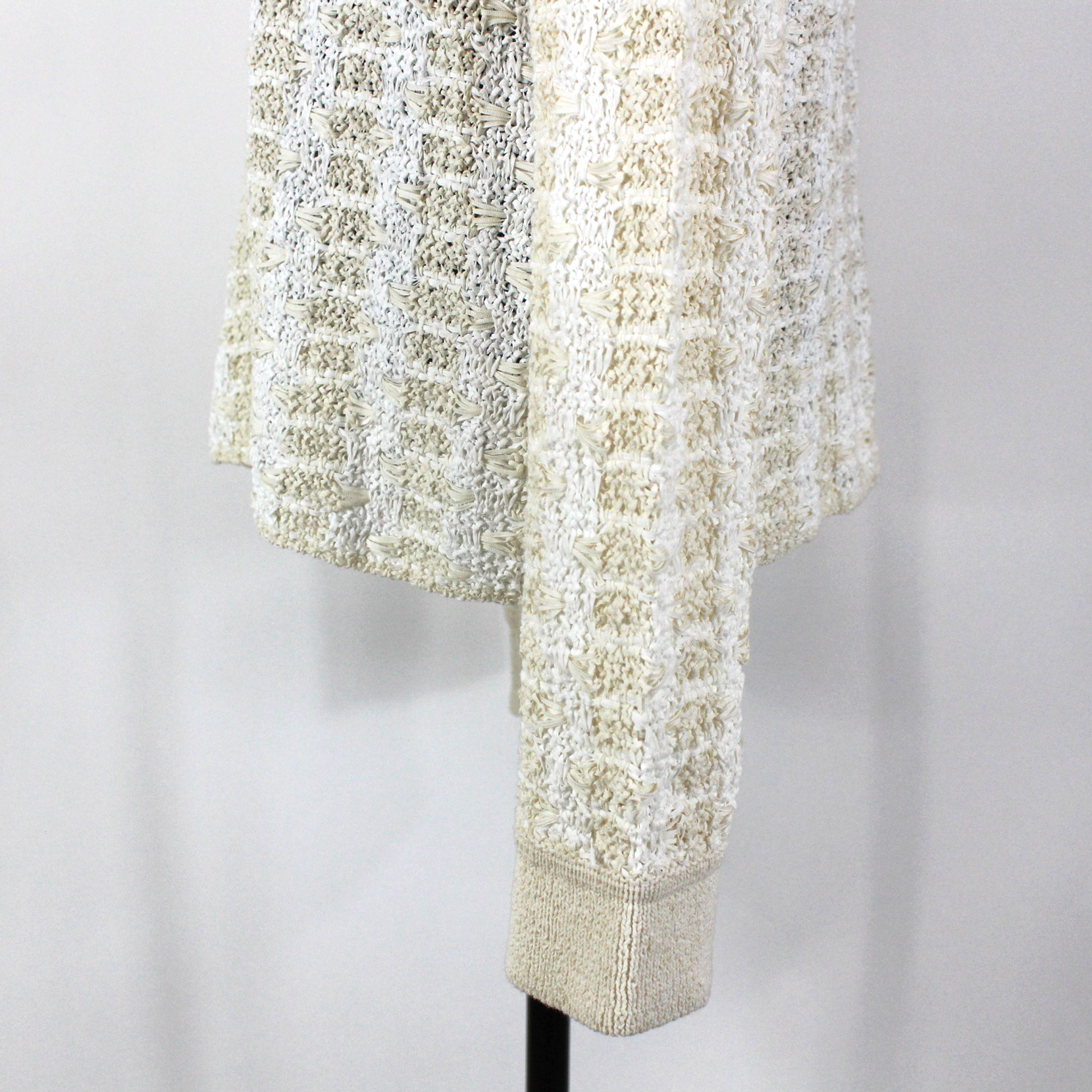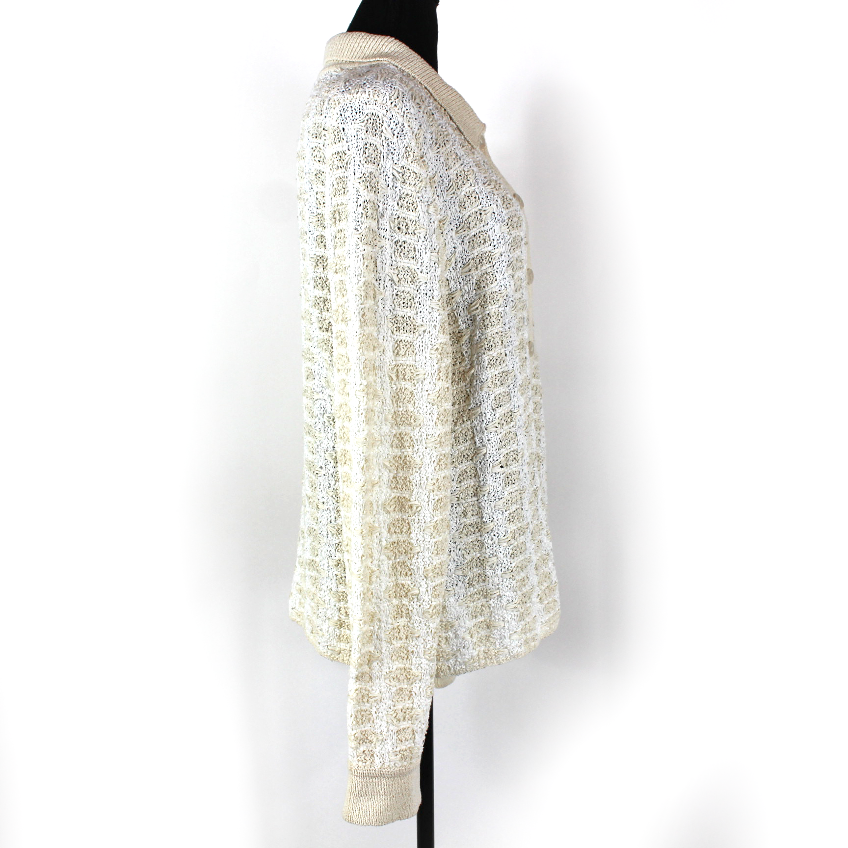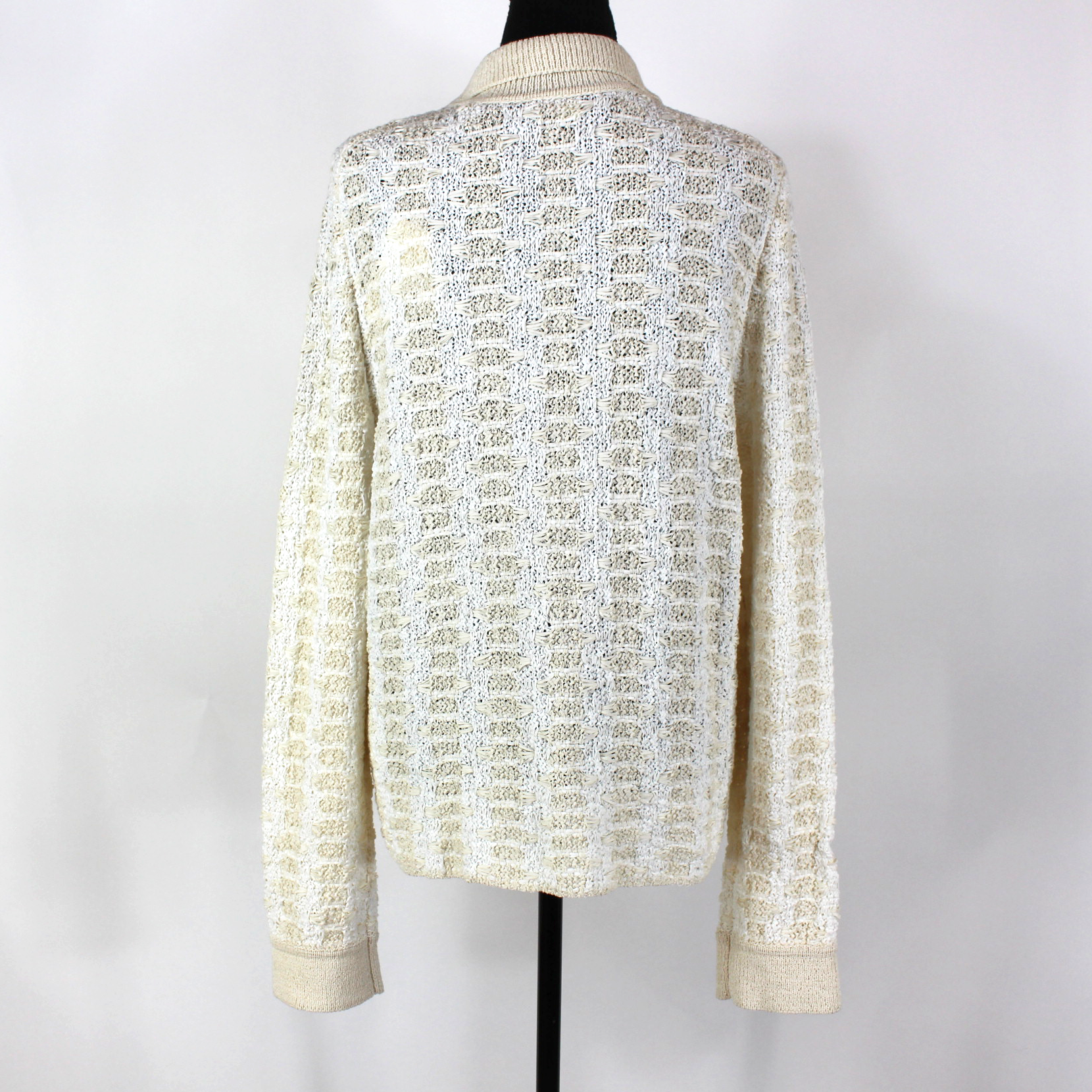VINCE. White Beige Woven Geometric Button Up Polo Sweater Cardigan