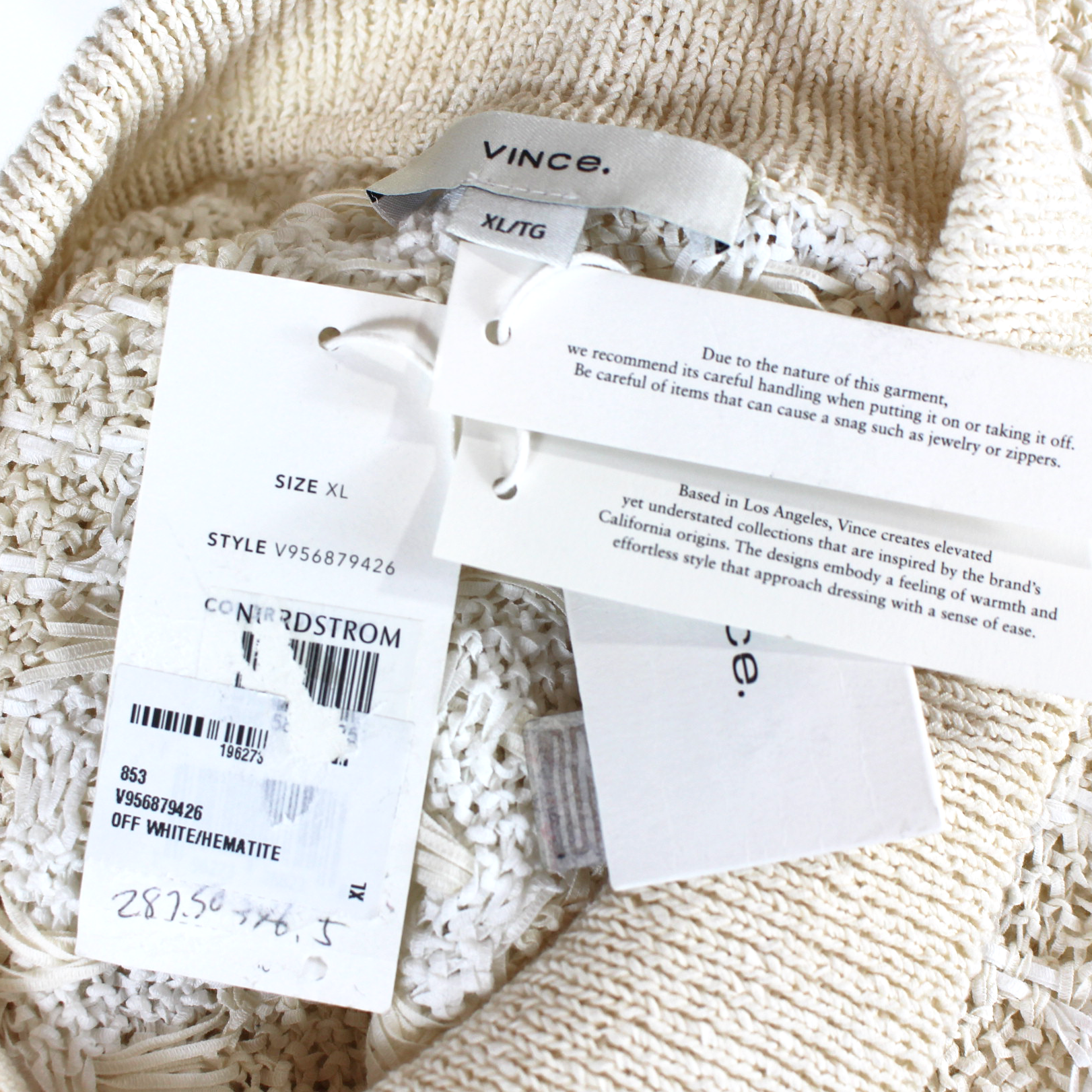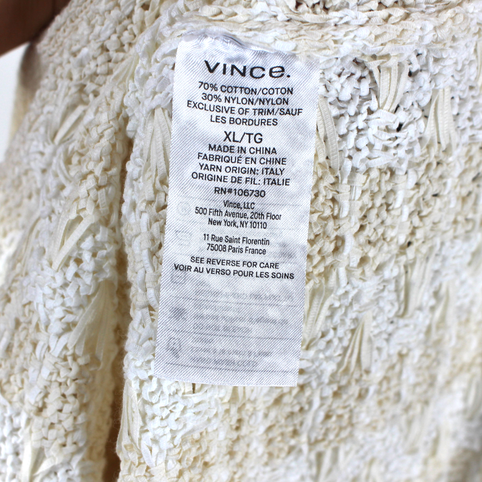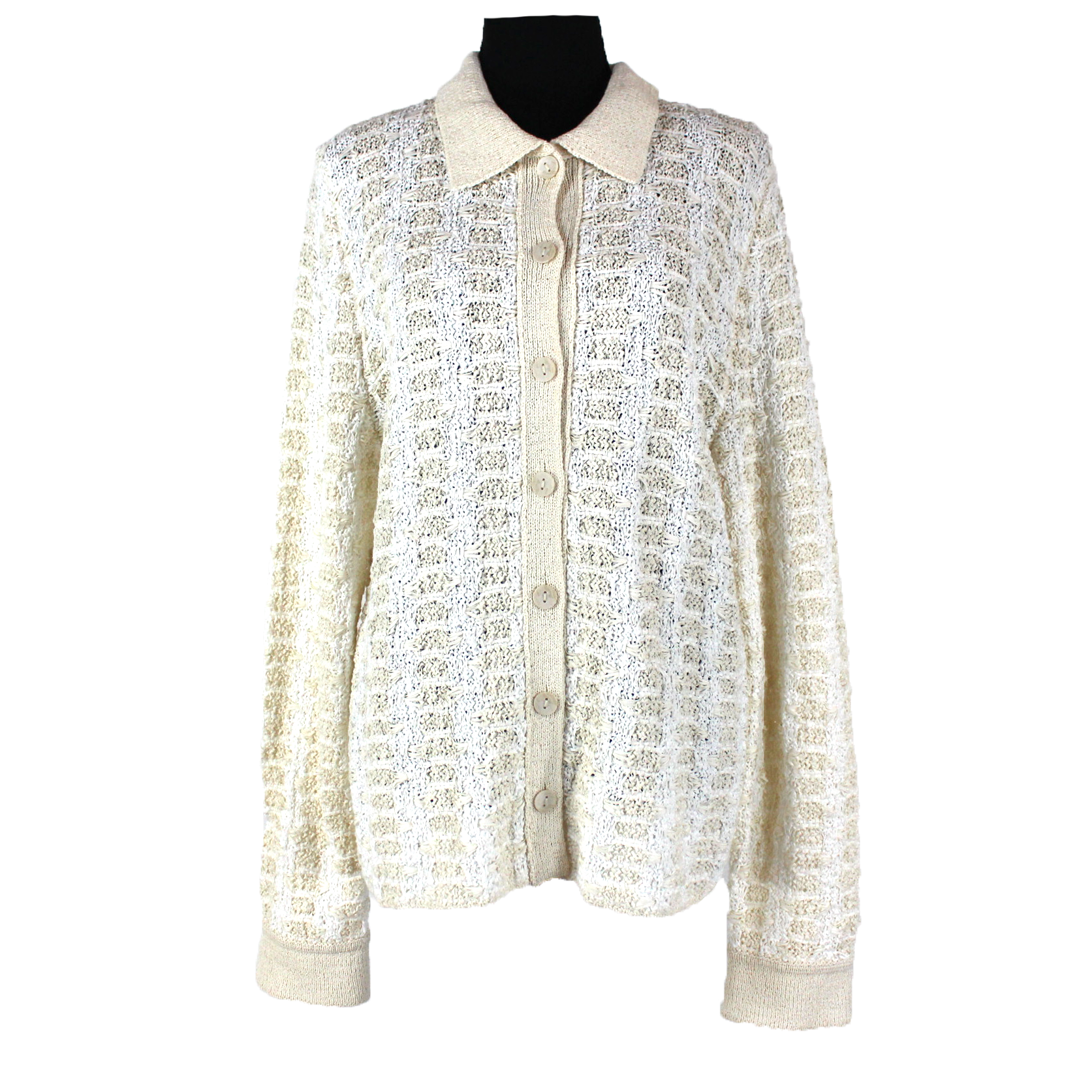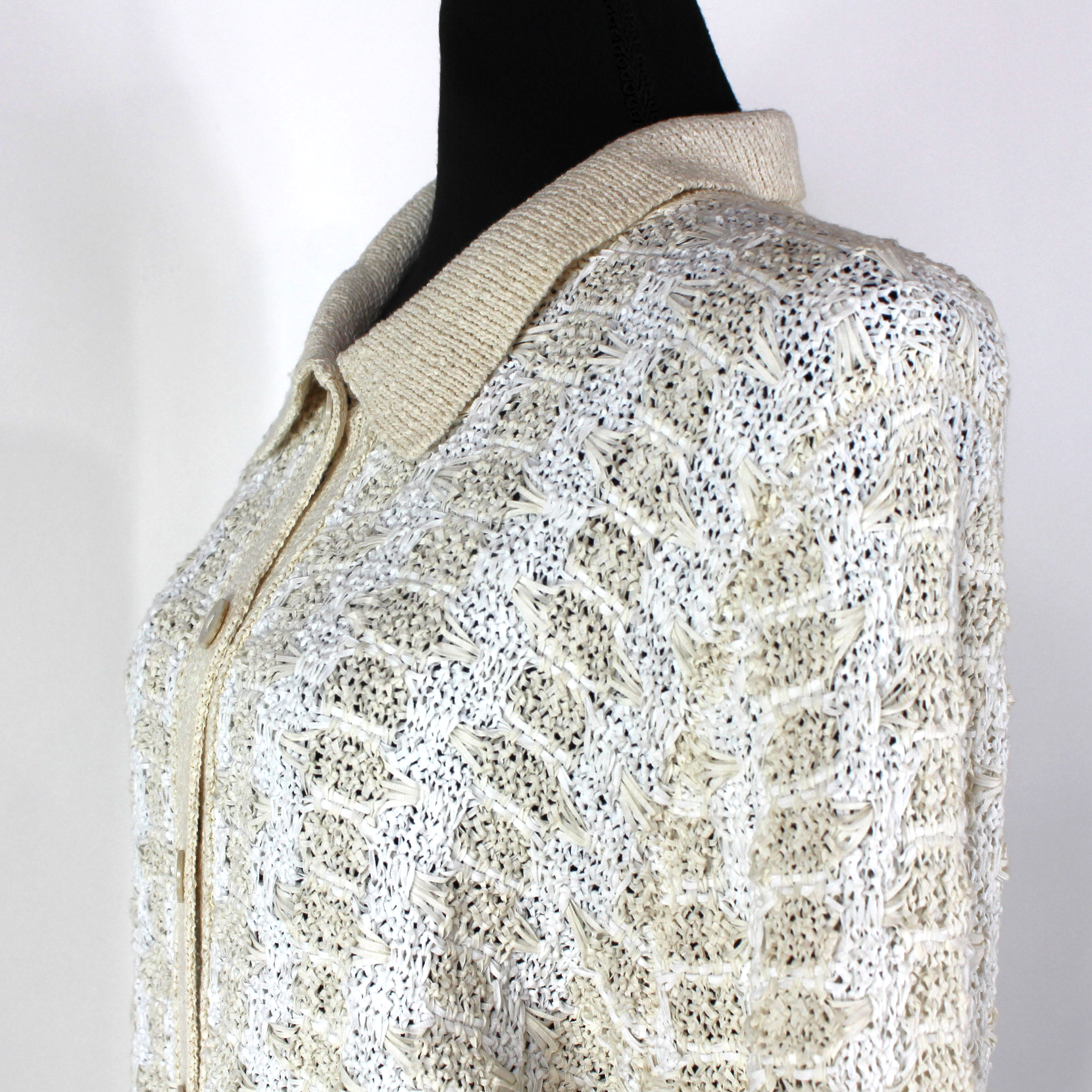 VINCE. White Beige Woven Geometric Button Up Polo Sweater Cardigan