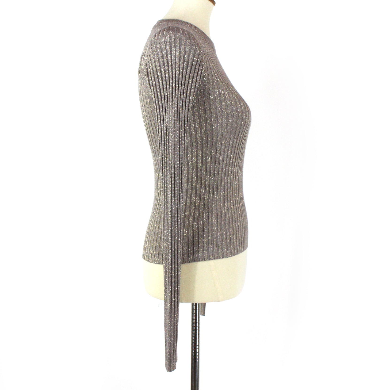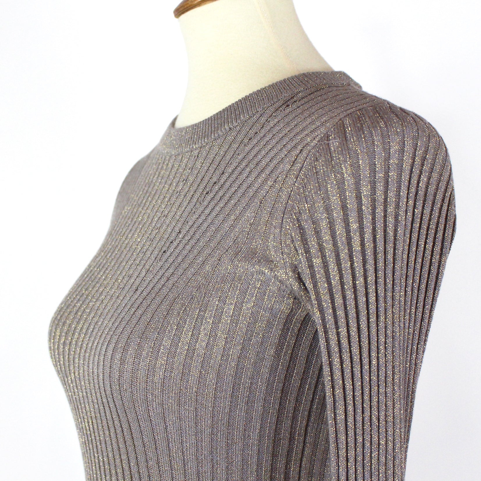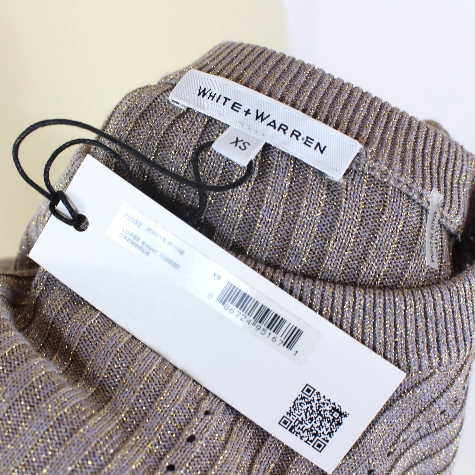 White + Warren Lurex Gold Shine Ribbed Mauve Crewneck Sweater
