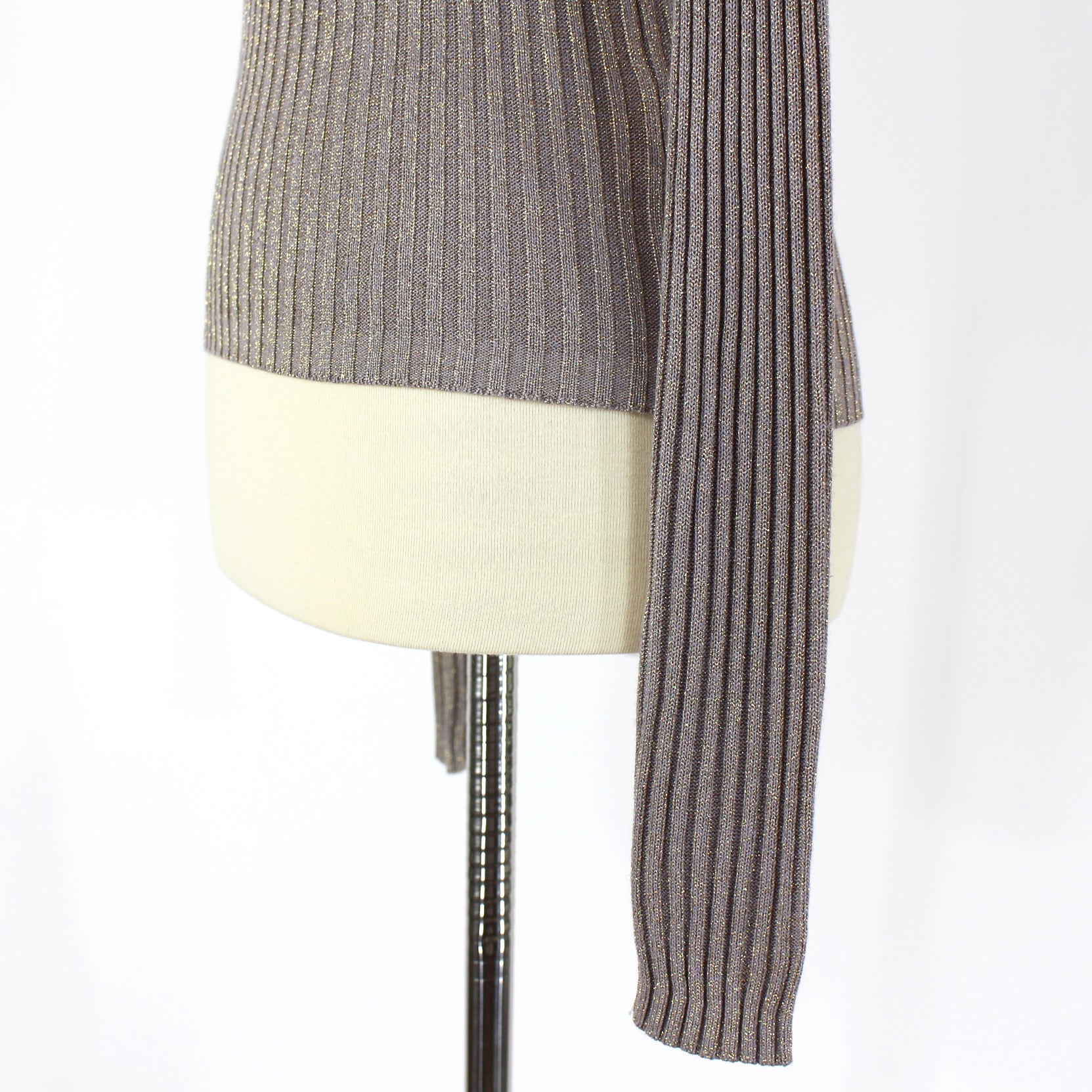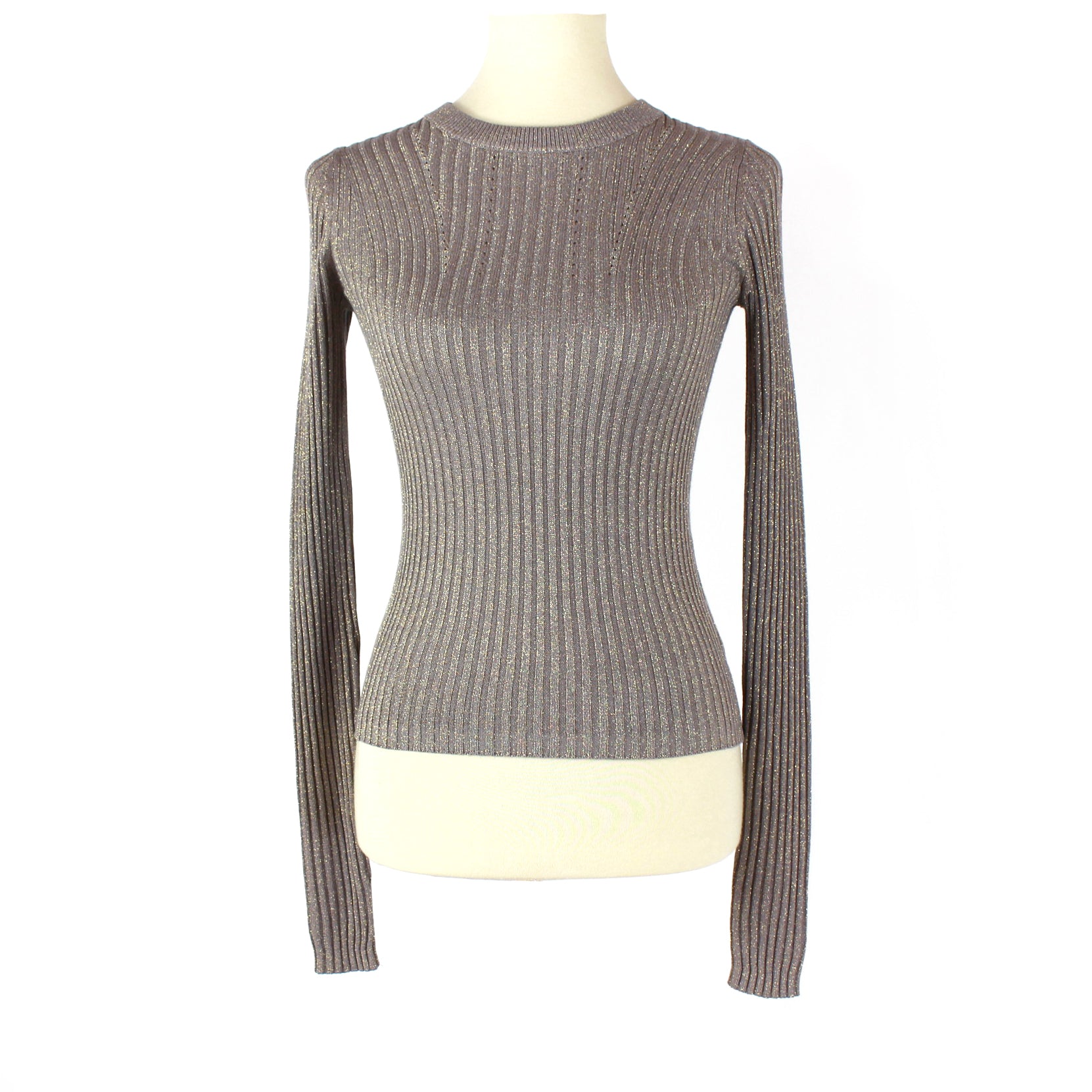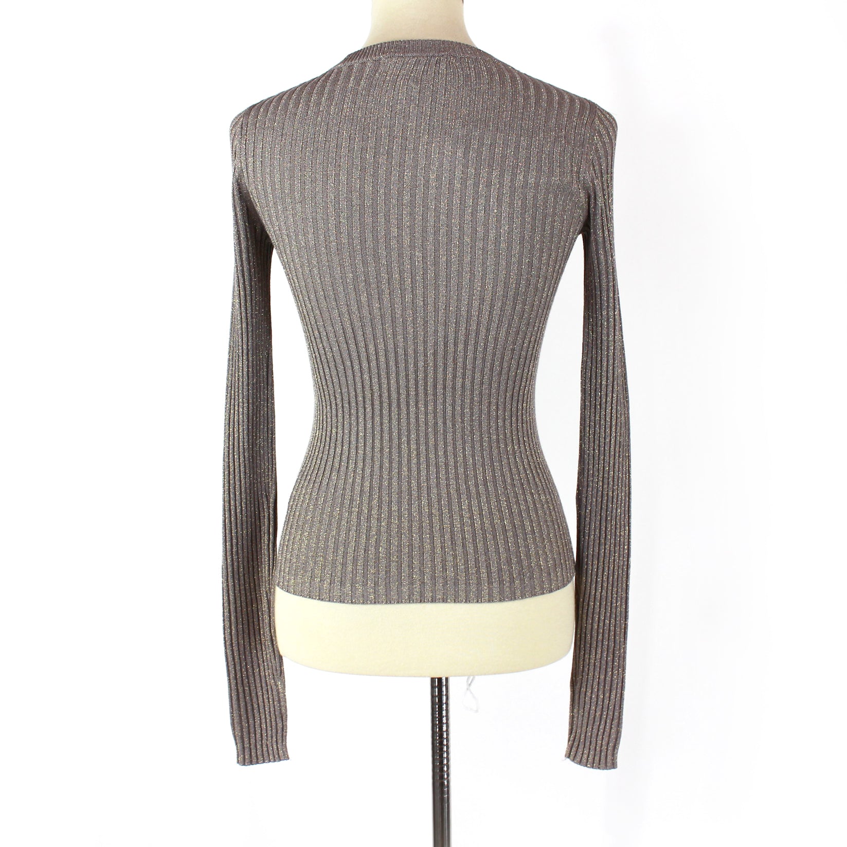 White + Warren Lurex Gold Shine Ribbed Mauve Crewneck Sweater